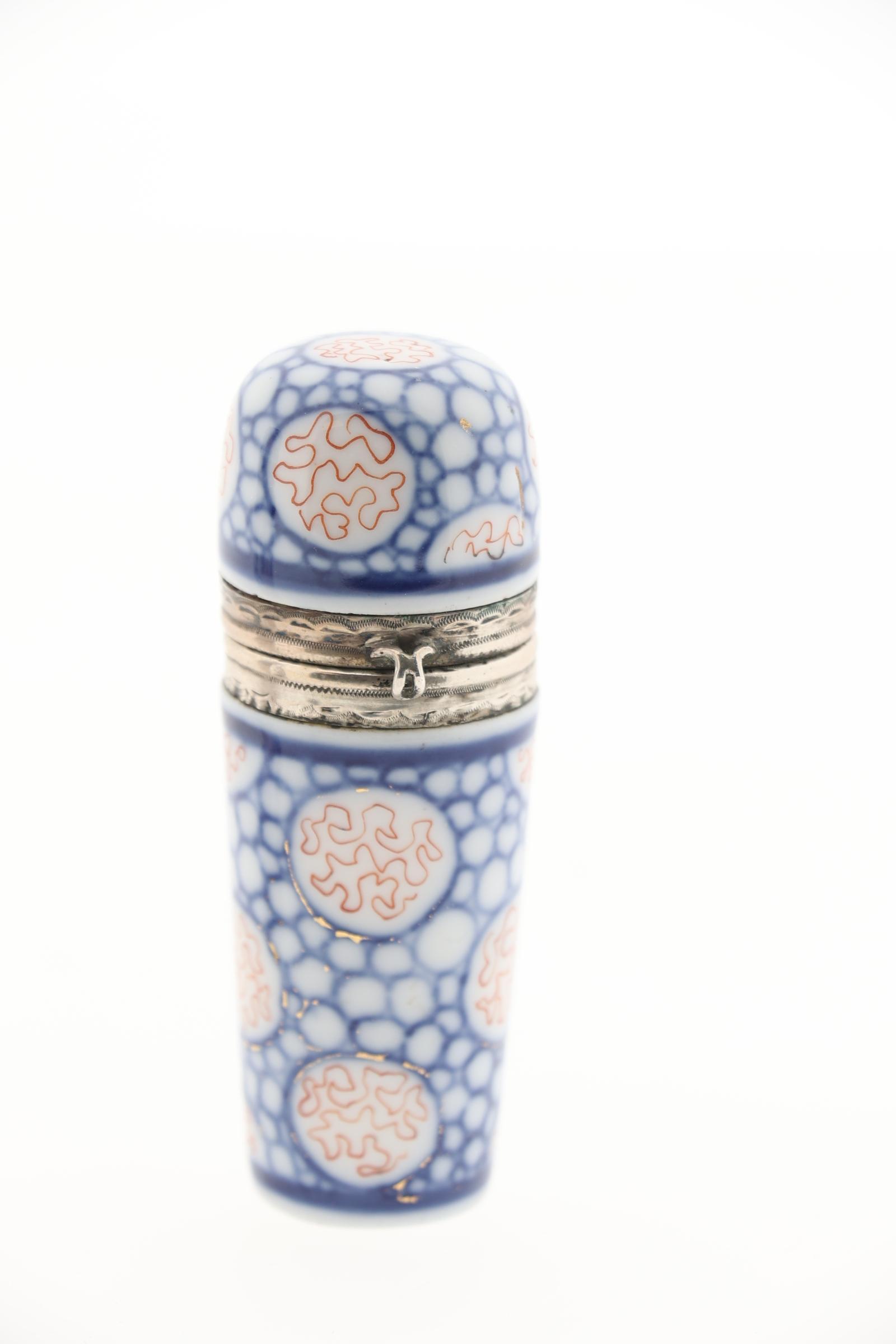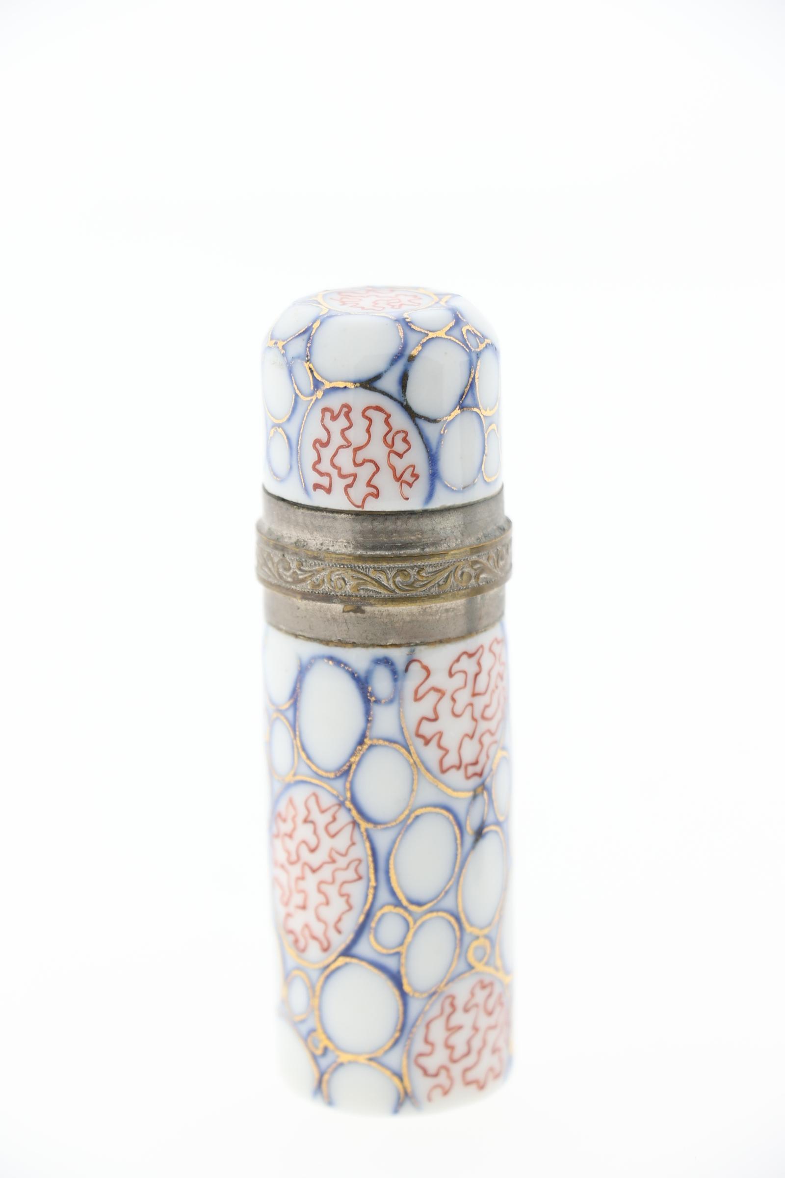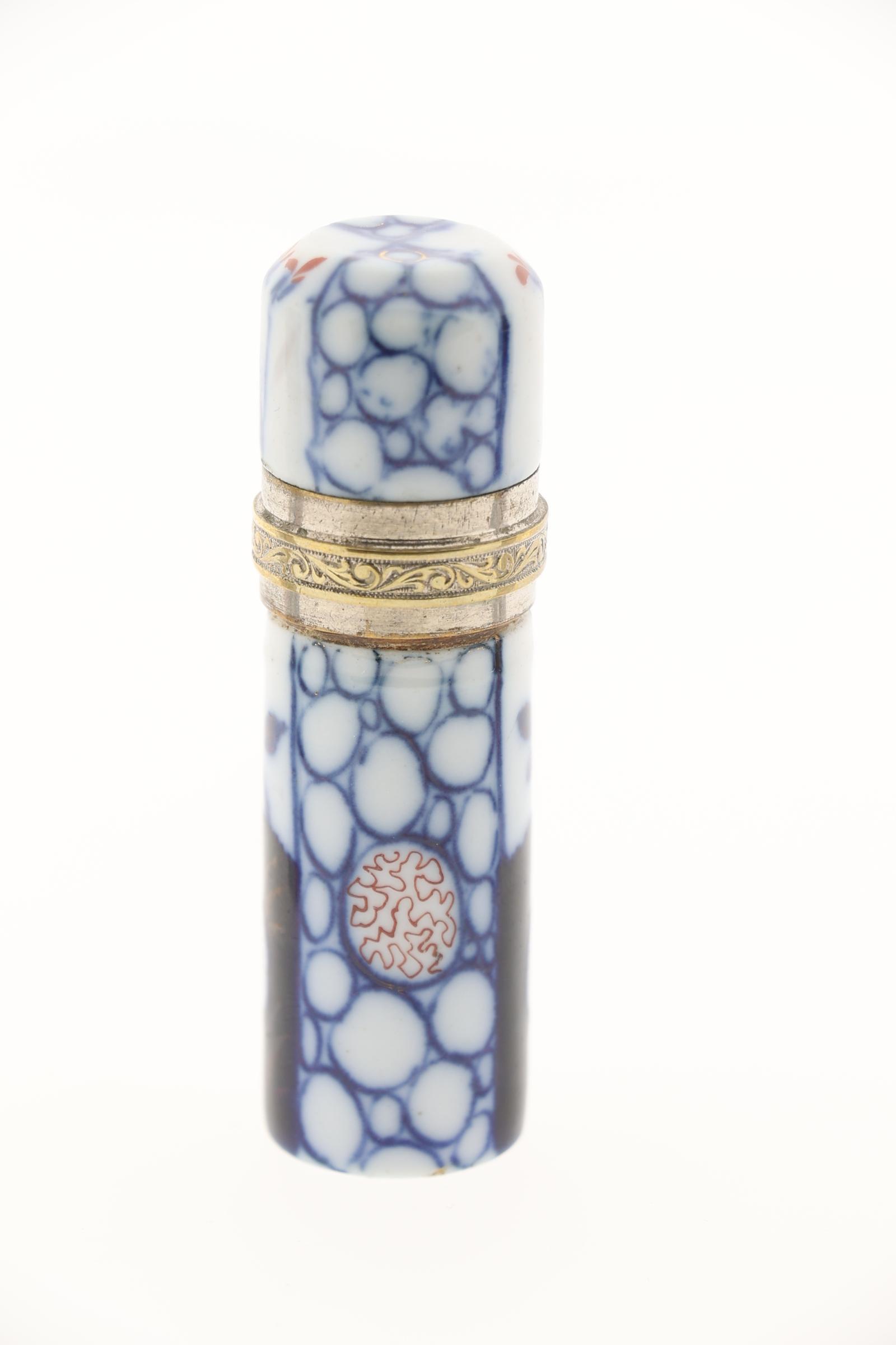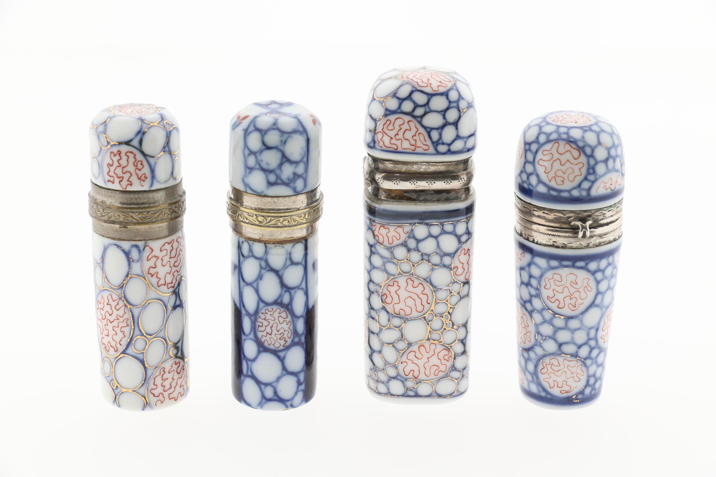 4 Meissen porseleinen odeurflacons deels met zilveren en deels met verzilverde monturen, 19e eeuw, h.9 en 8 cm.