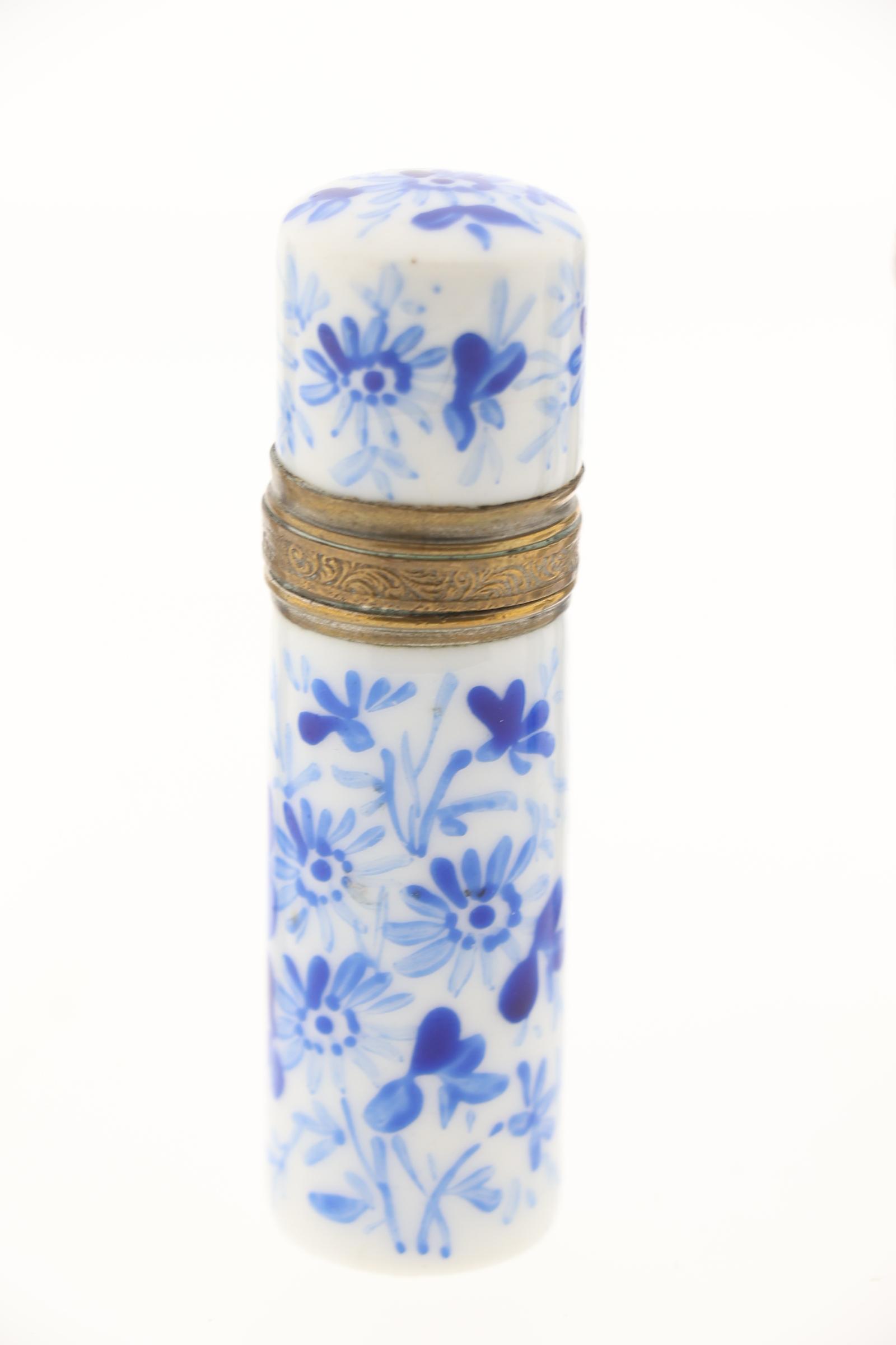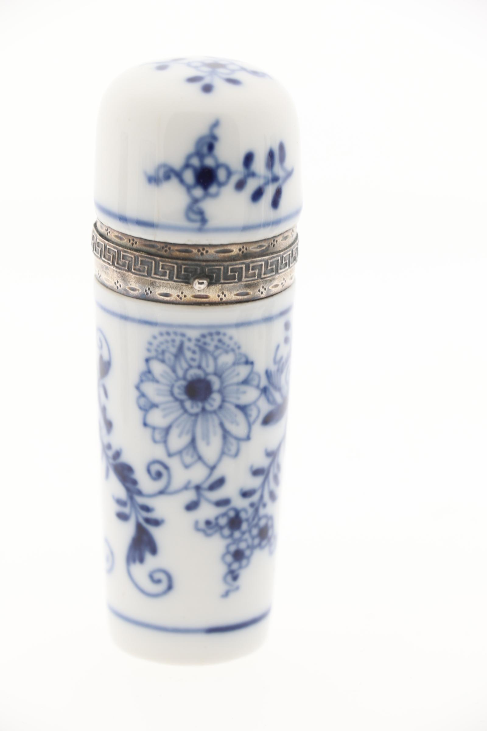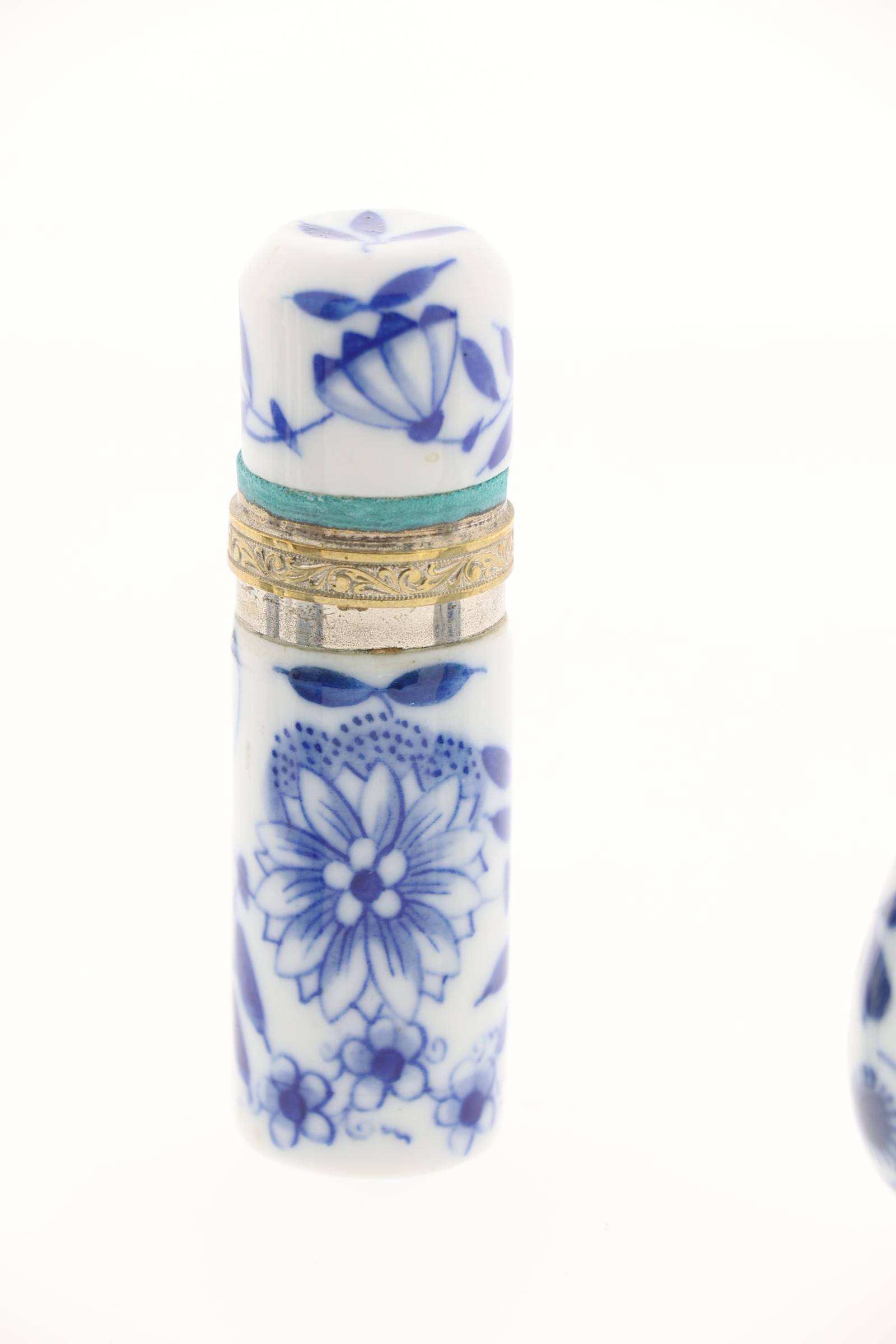 Koop van 6 blauw/wit gedecoreerde Europese en Chinese odeurflacons w.o. met zilver, 19e eeuw, ca.h.8.5 cm.