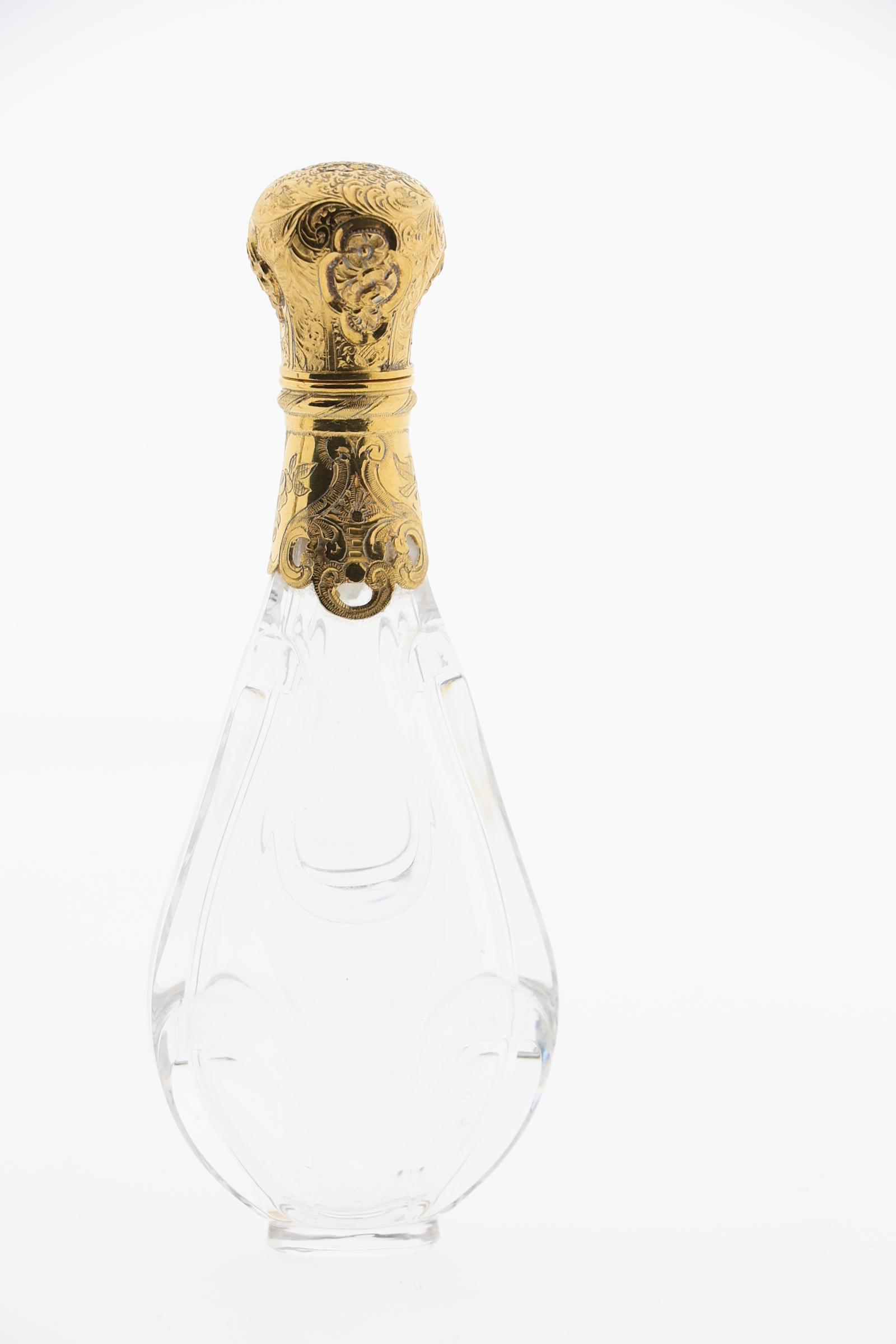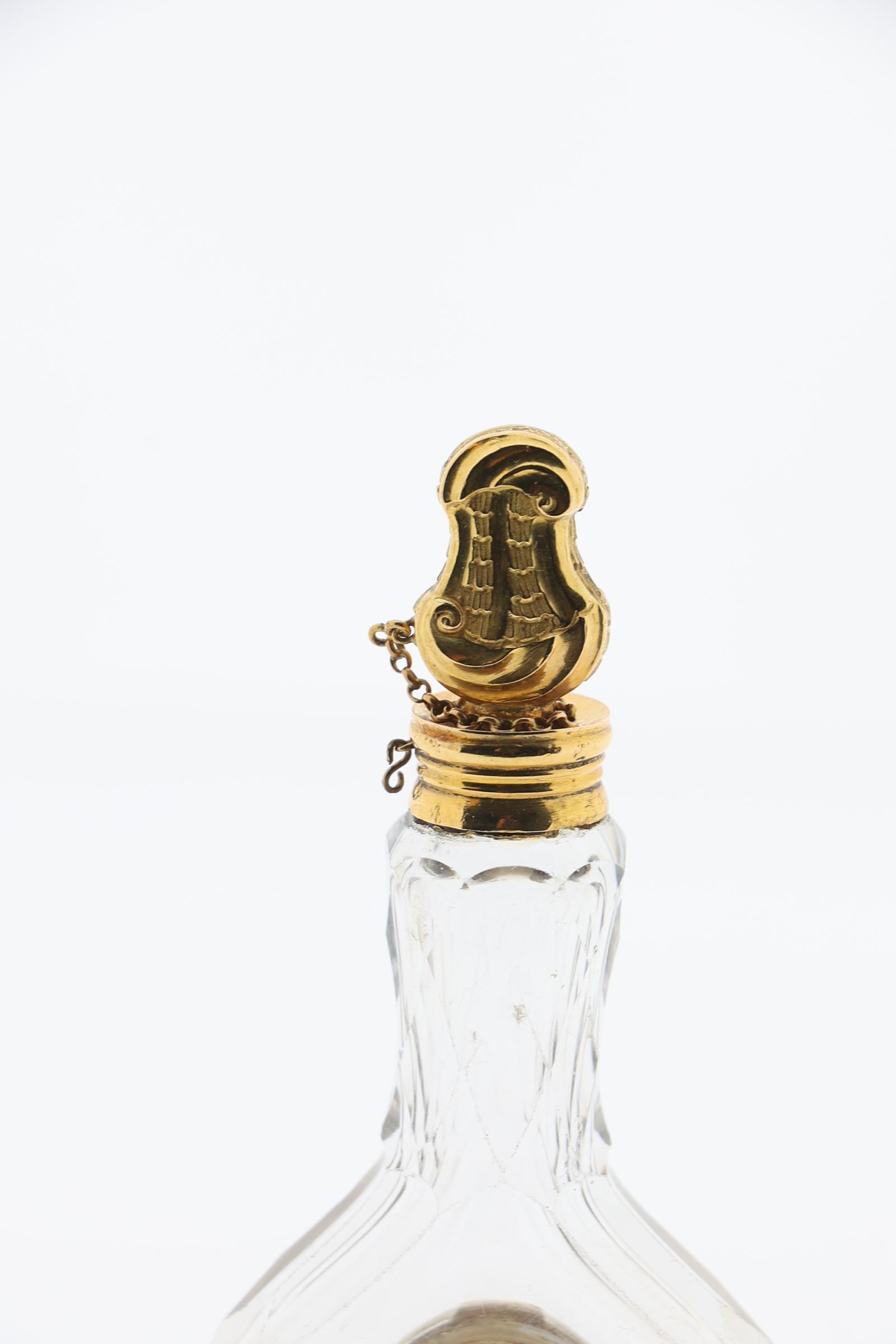 Koop van 3 kristallen met gouden odeurflacons, 19e eeuw, h.11 cm.