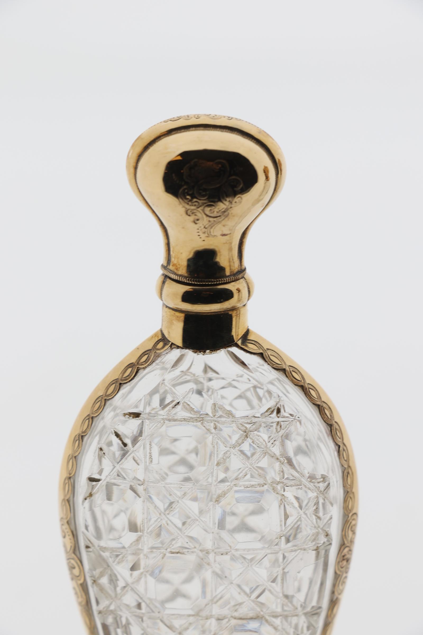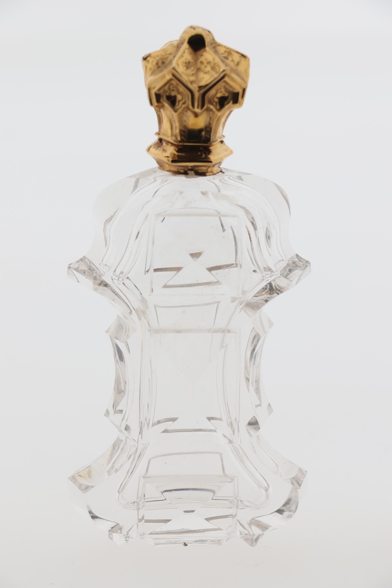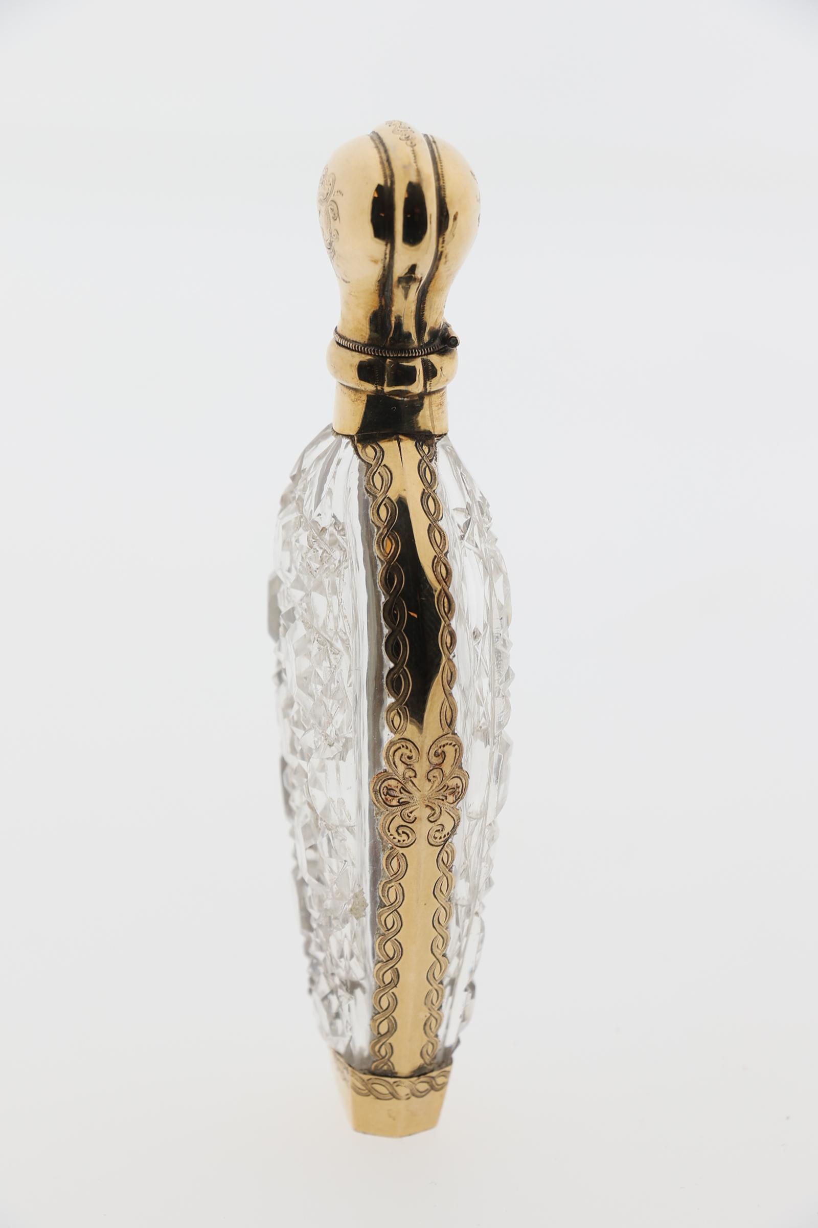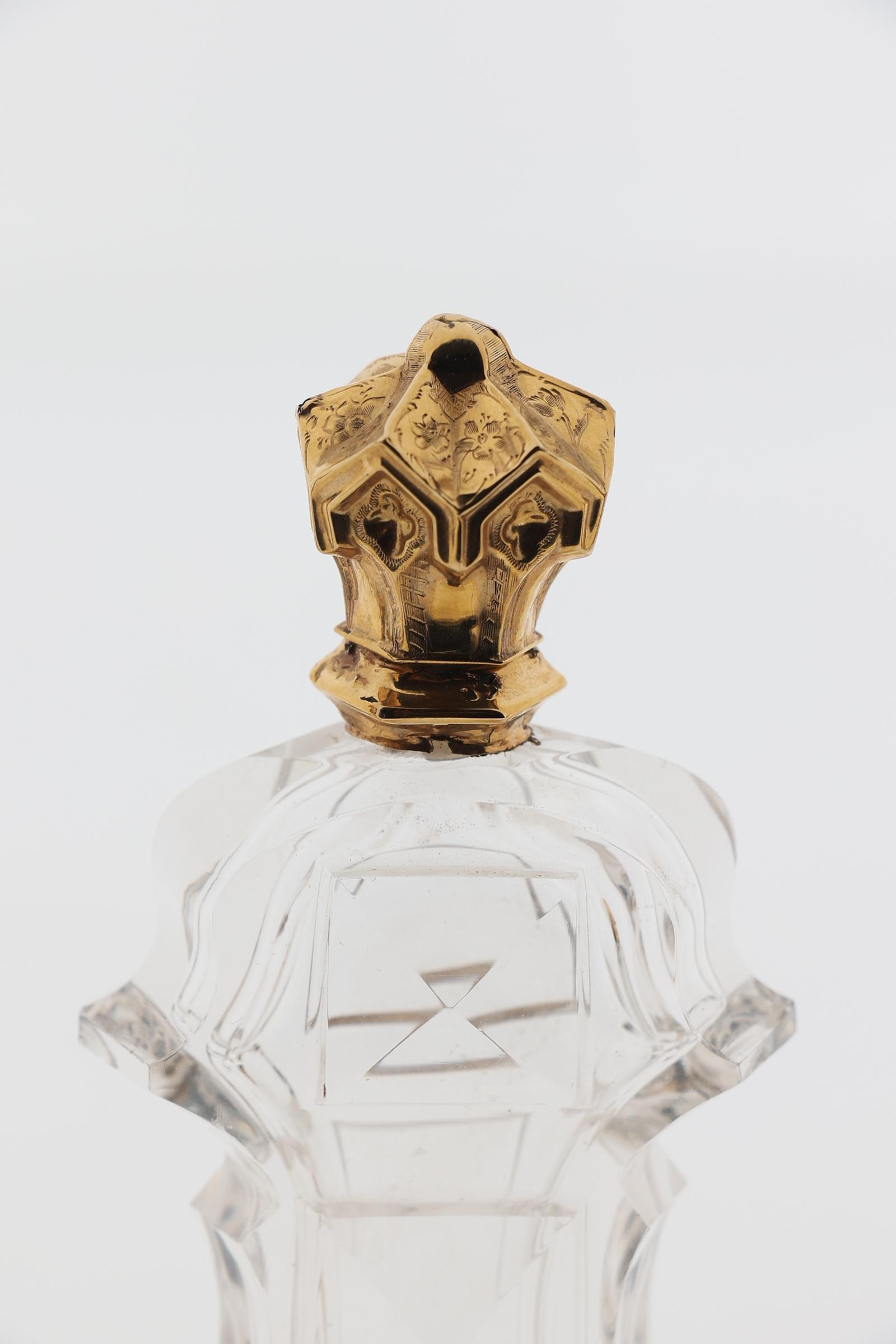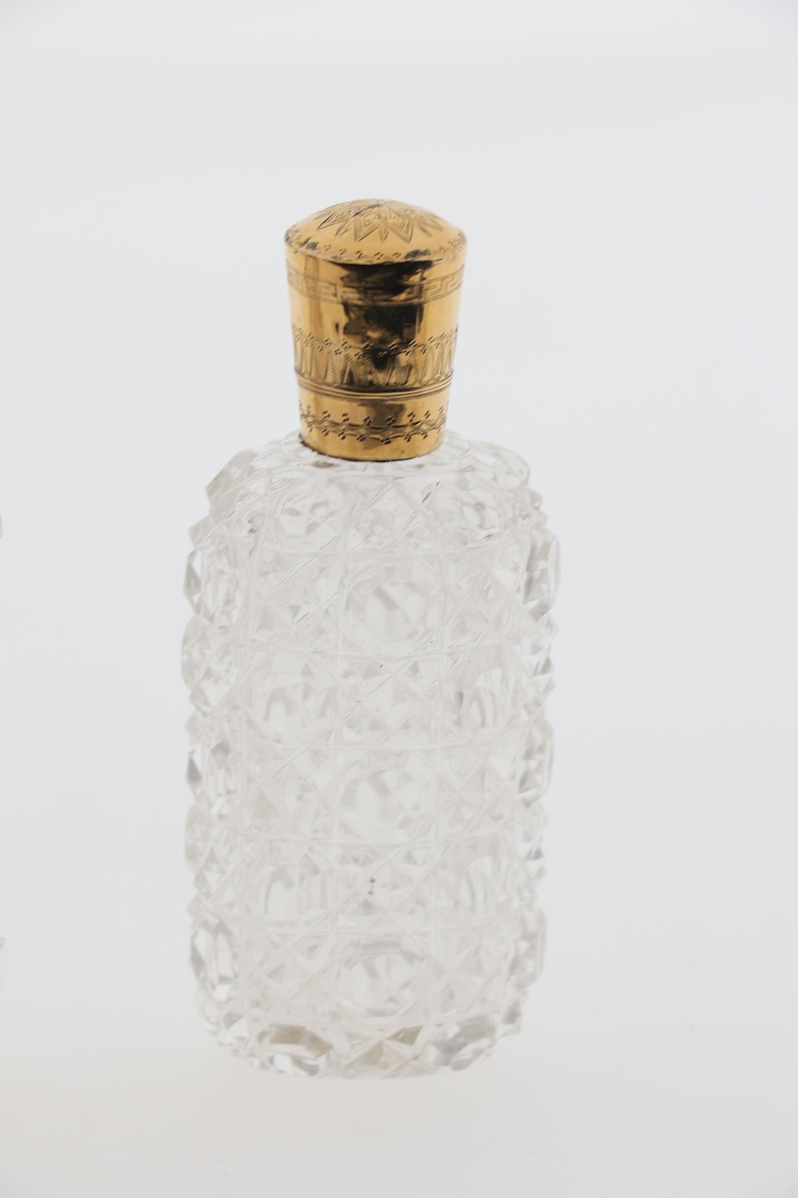 Koop van 3 kristallen met gouden odeurflacons, 19e eeuw, h.11, 11 en 9,5 cm.