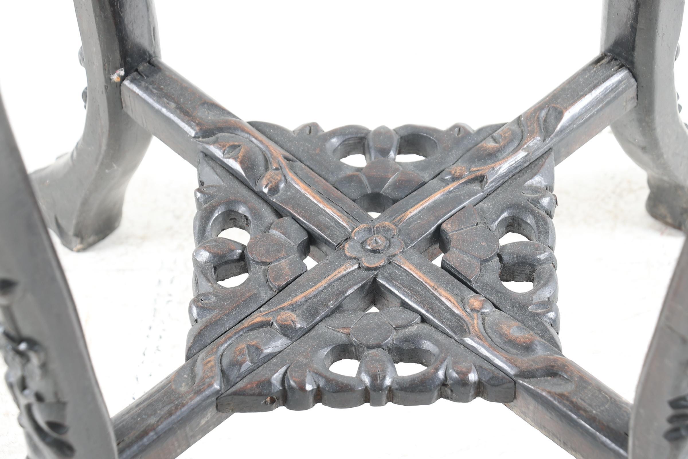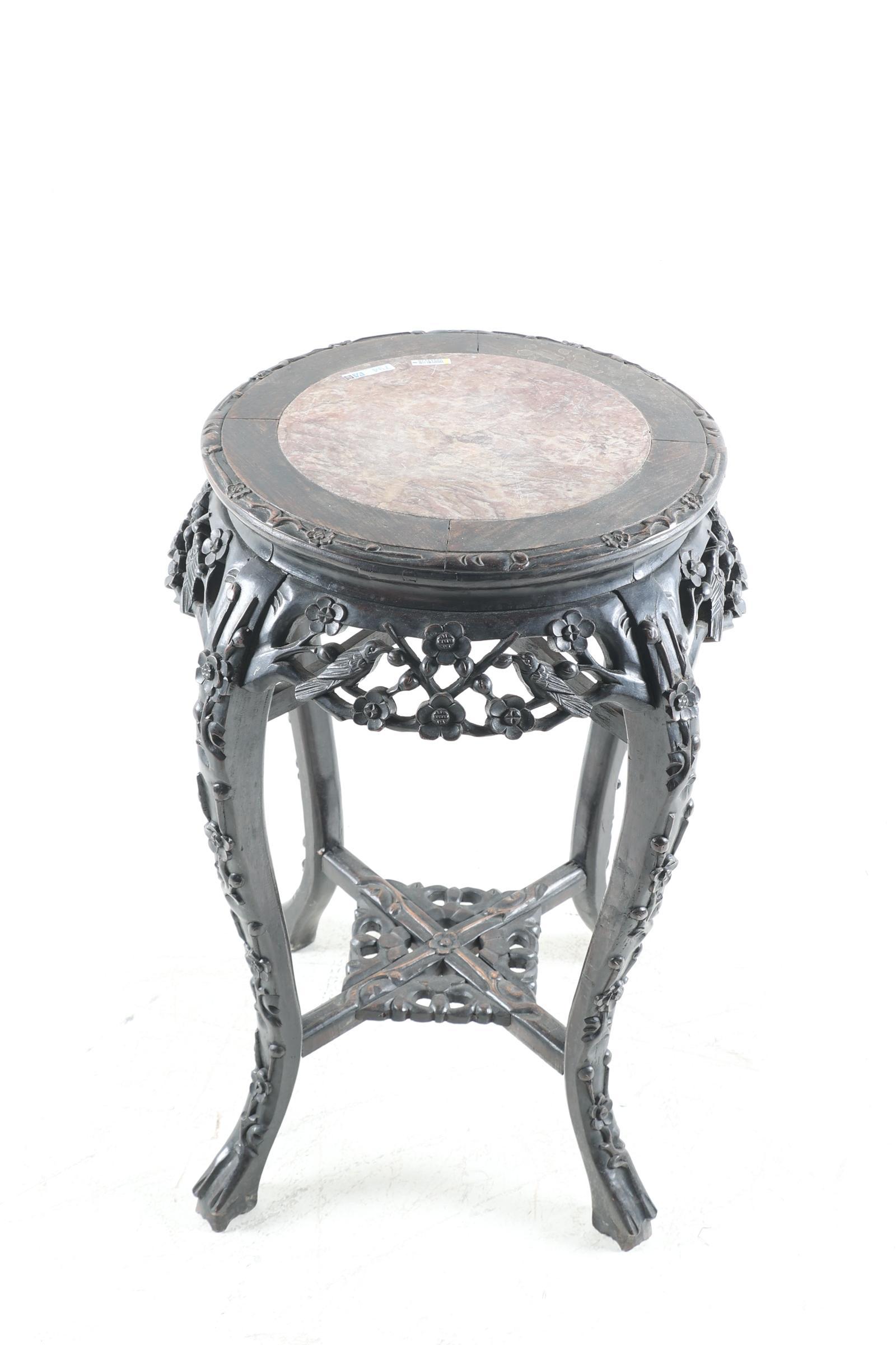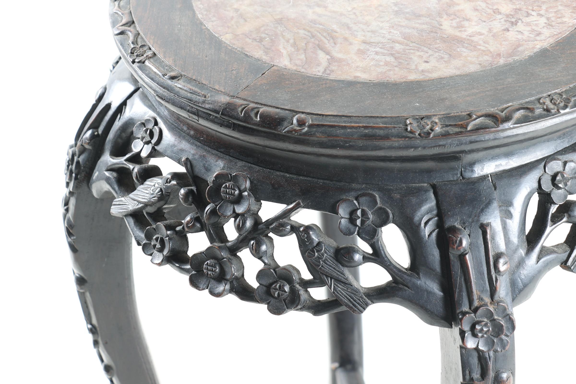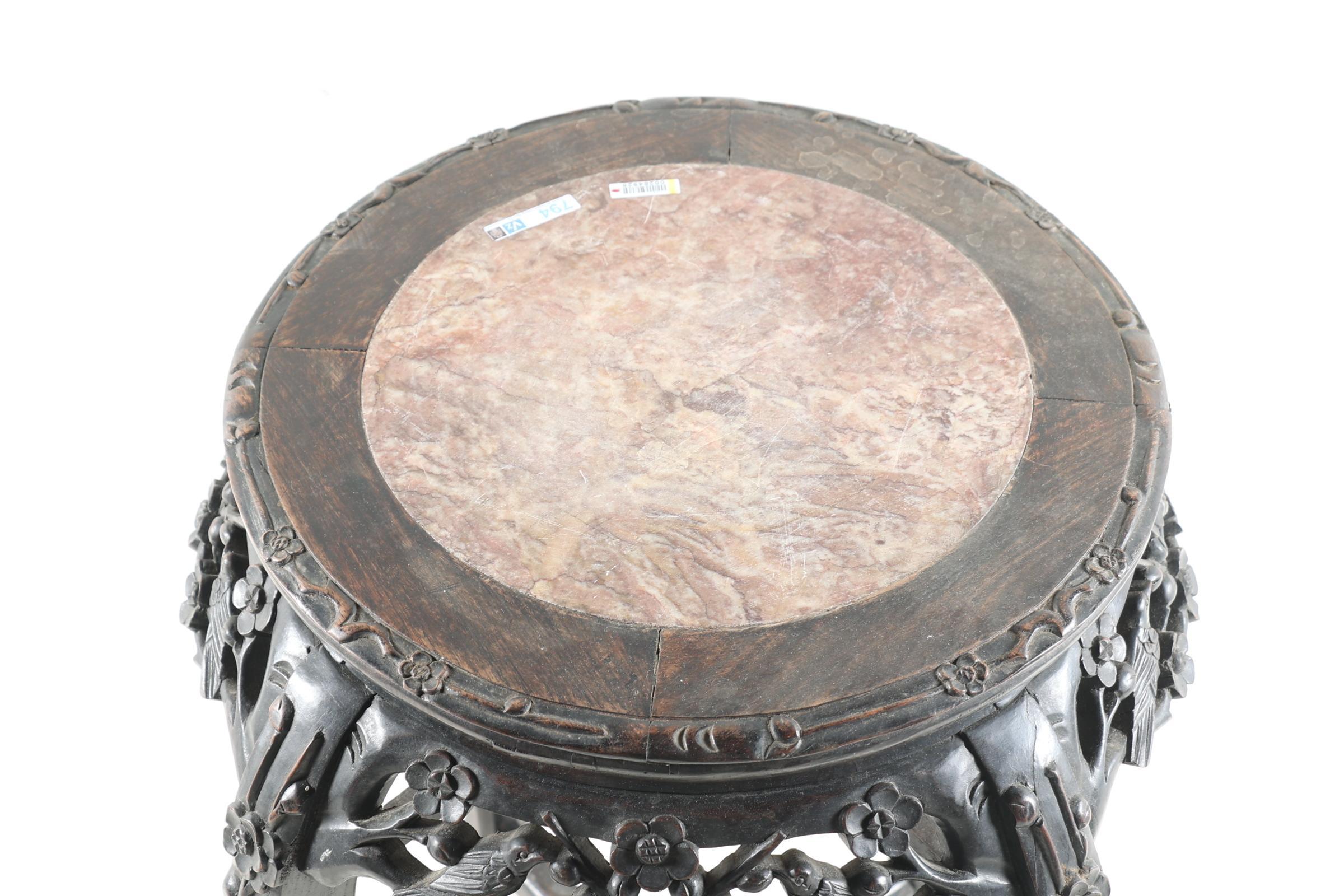 Antieke opengewerkte Chinese hokker afgedekt met marmeren blad, h.70 x diam.45 cm.