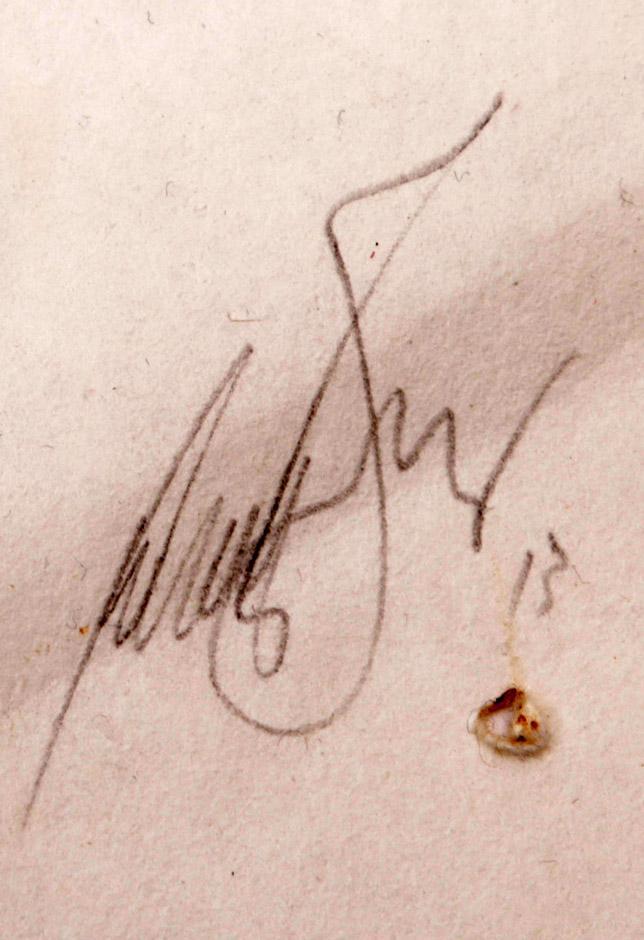 Wim Botha (1974), Zonder titel, handgesigneerde inkttekening op Japans papier, gedateerd 2013, 65 x 50 cm.