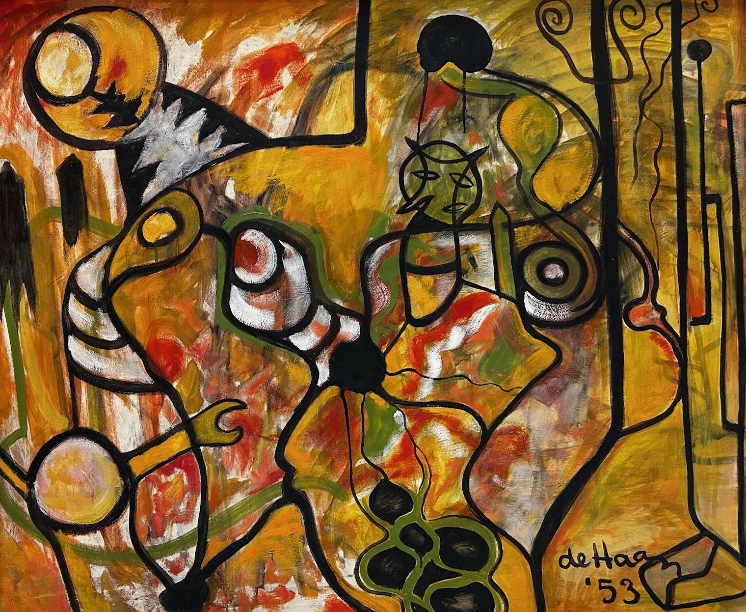 Wim de Haan (1913-1967), Zonder titel, olieverf op board, 98 x 120 cm., gedateerd 1953, provenance particuliere collectie, met een echtheidsverklaring van mr. H.J. de Haan van der Chijs gedateerd 1989.