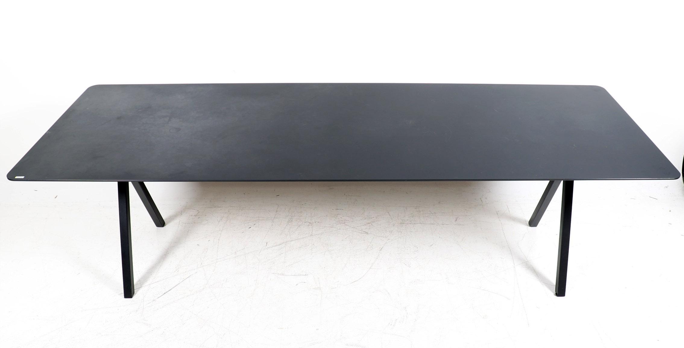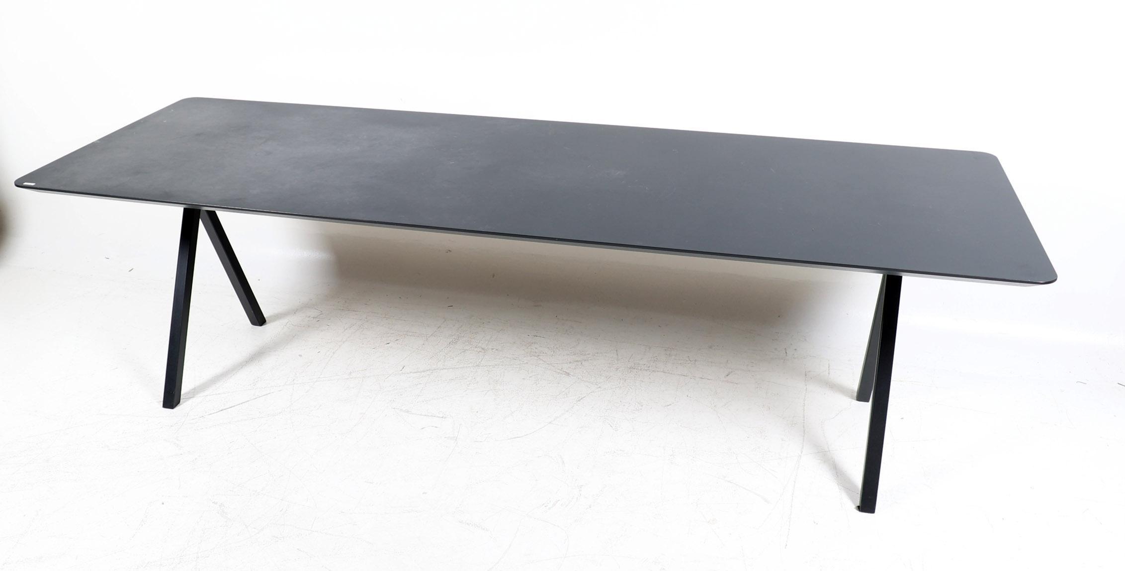 Moderne zwarte design eetkamertafel op metalen onderstel, h.76 x b.260 x d.90 cm.
