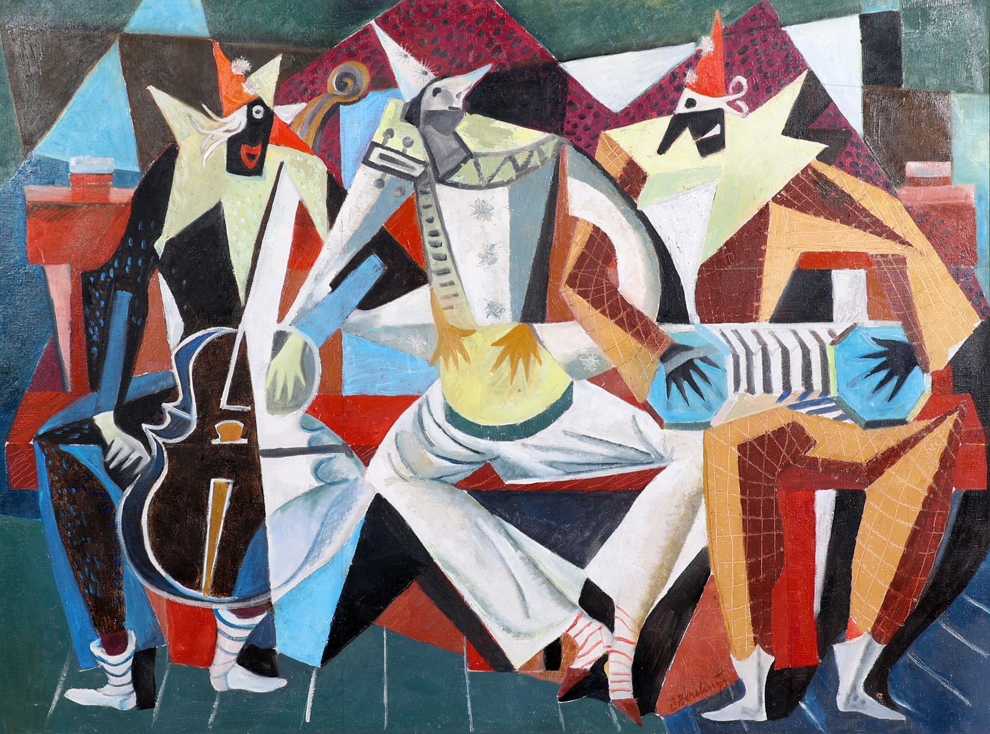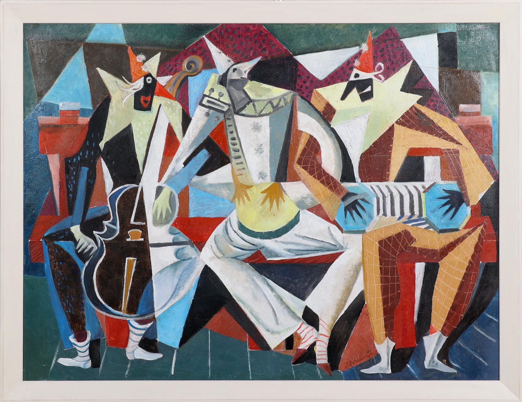 Jacob 'Jaap' Bouhuys, Arnhem 1902-1983 Haarlem, Musicerende clowns, olieverf op doek, 120 x 90 cm., provenance: collectie erven Bouhuys-Klaassen