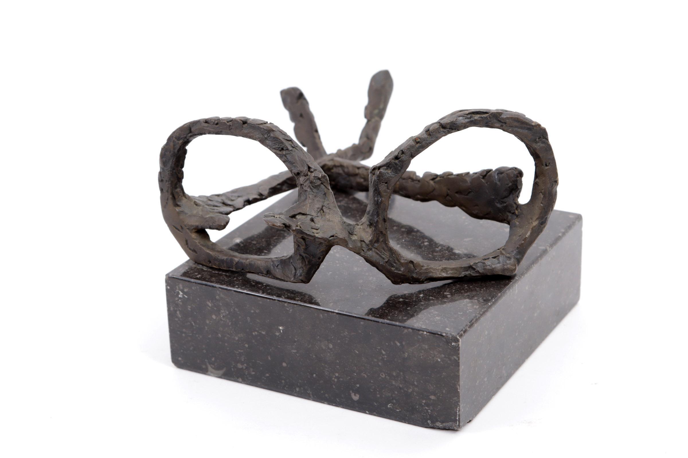 Onb. meester, bronzen sculptuur van een leesbril, h.10,5 x d.21 x b.17 cm.