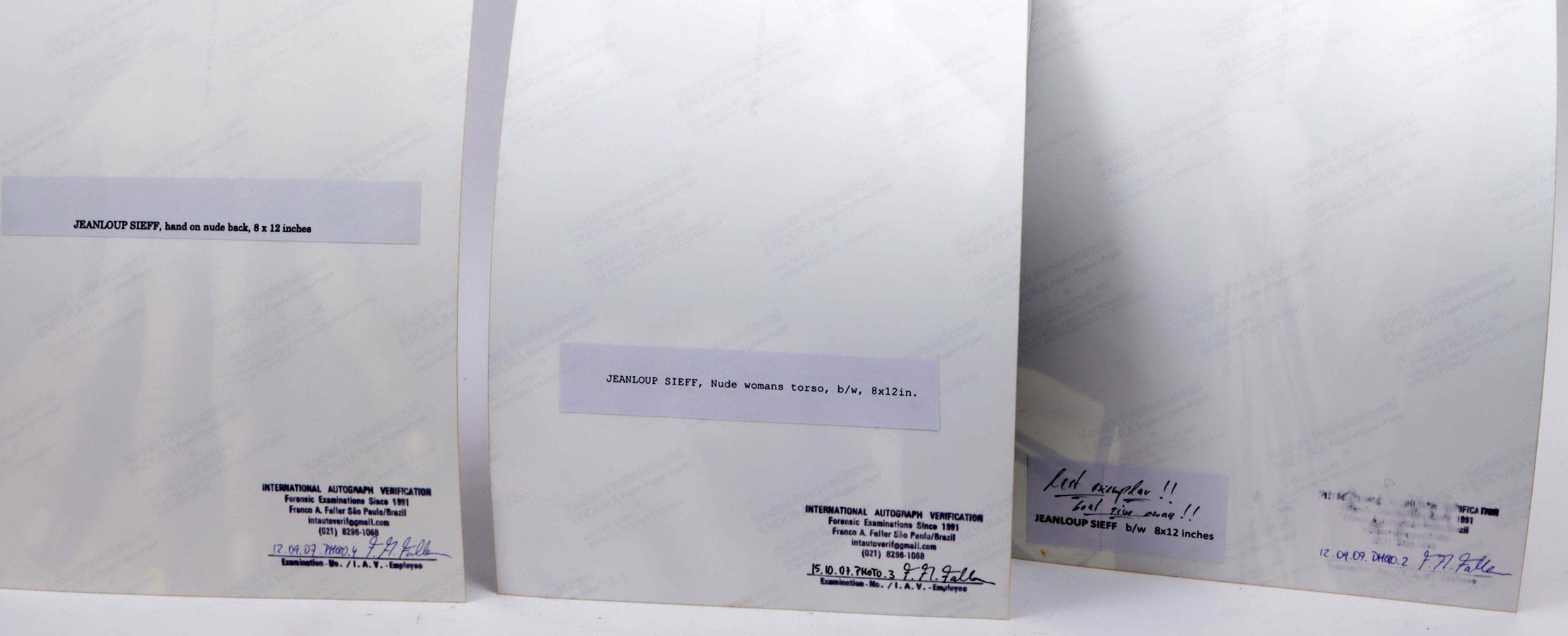 Jeanloup Sieff (1933 - 2000), drie handgesigneerde C-prints, Nude woman torso, Hand on back en Zonder titel, 30,5 x 20,3 cm.