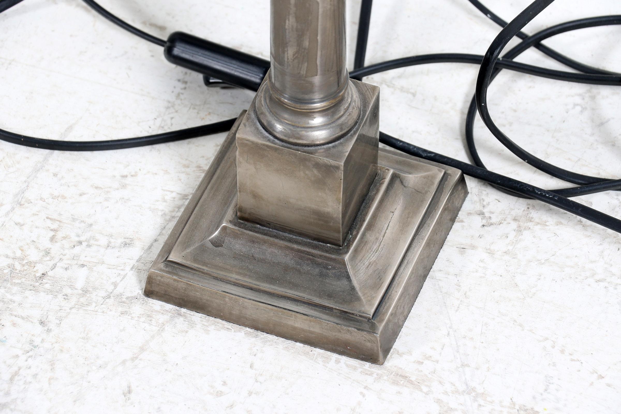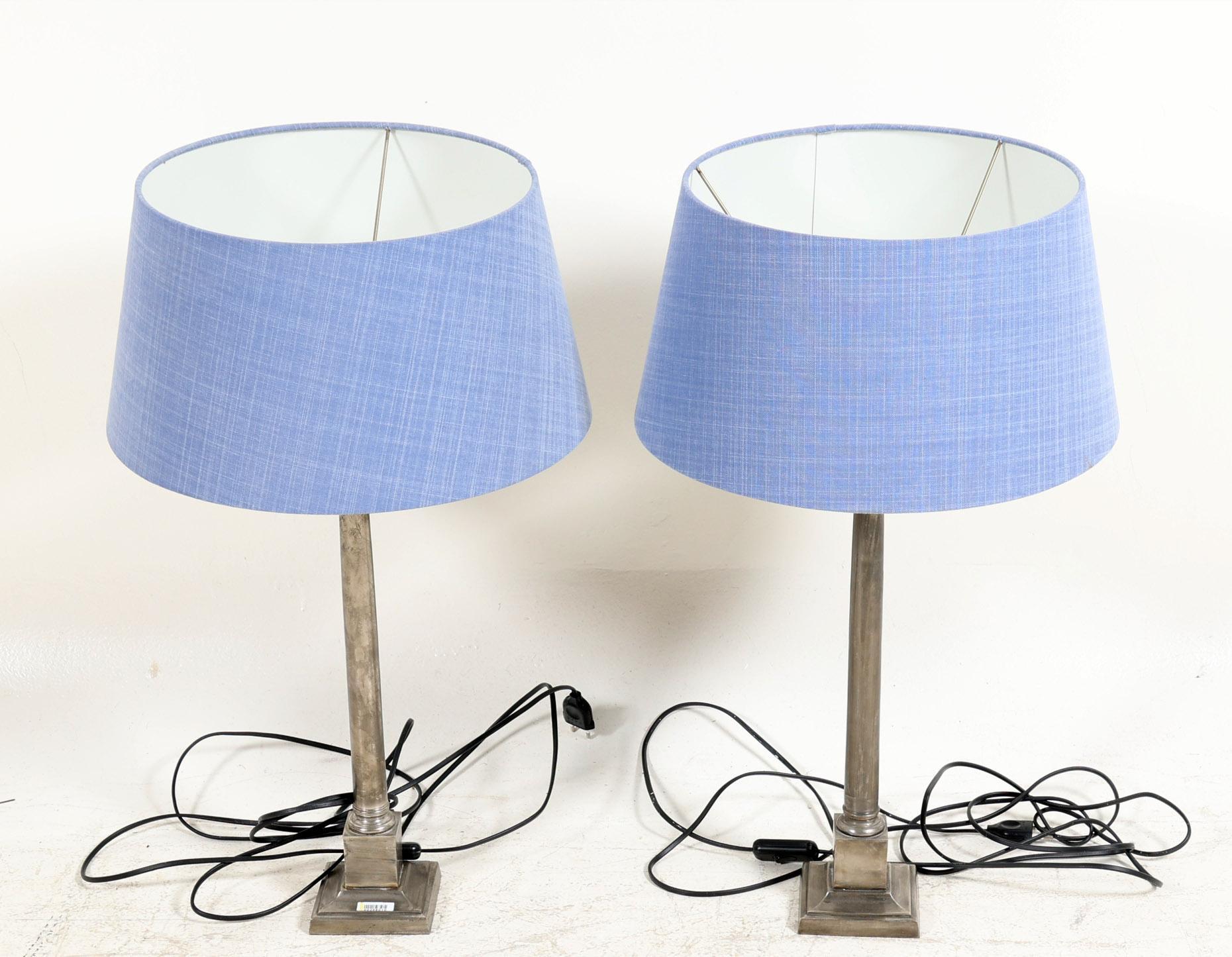 2 Pleet lampvoeten met blauwe kappen, h.70 cm.