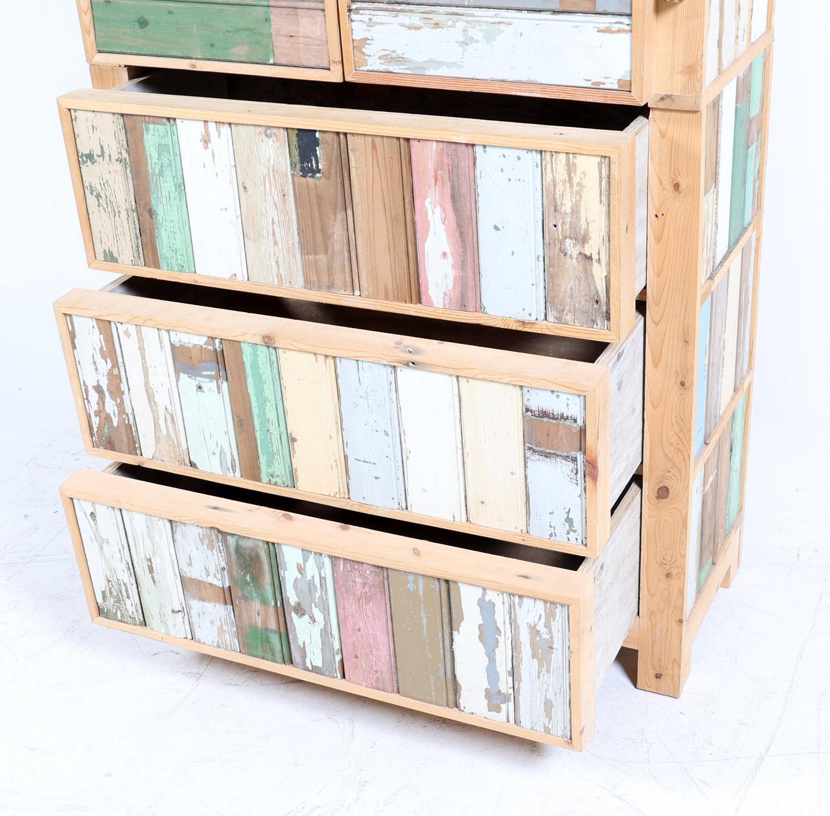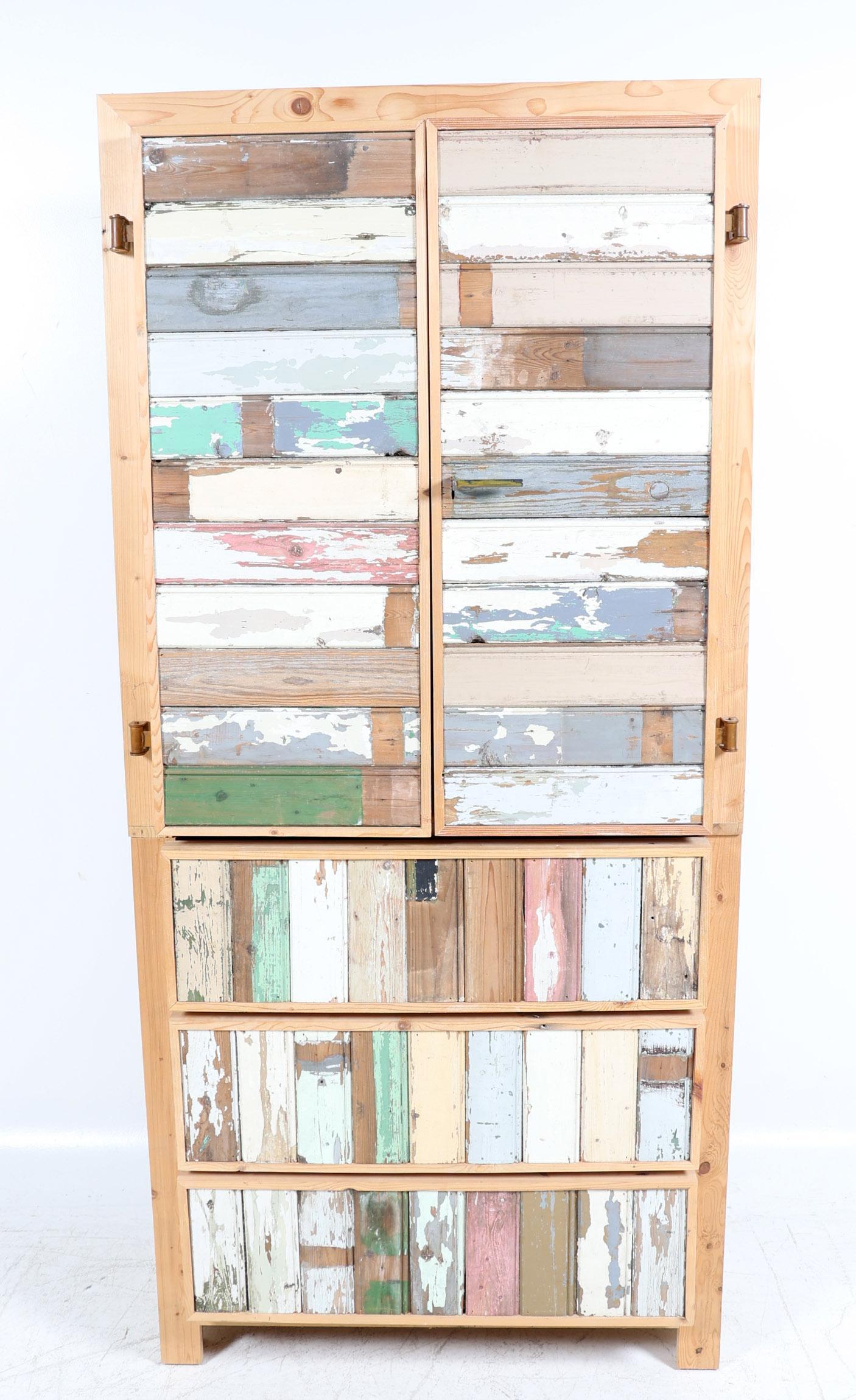 Piet Hein Eek, uit sloophout vervaardigde kast met 2 deuren en 3 laden, h.218 x b.100 x d.47 cm.