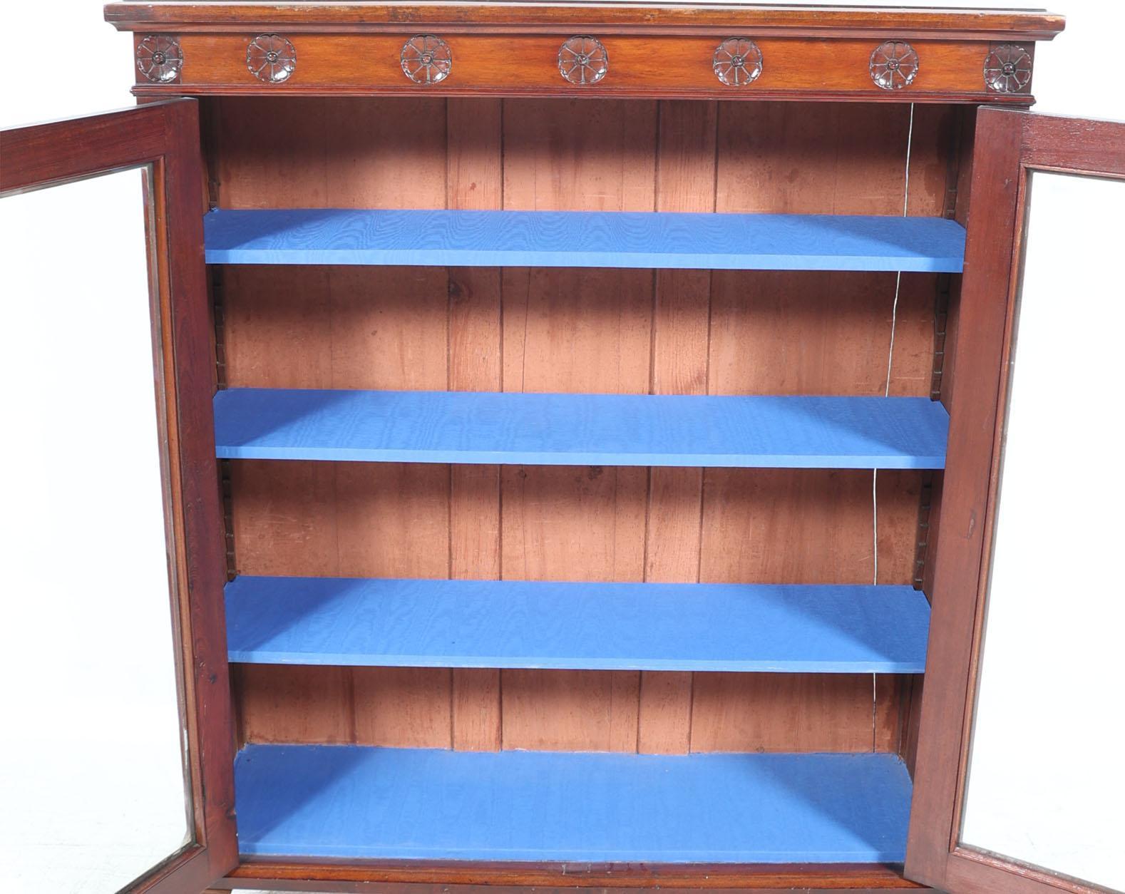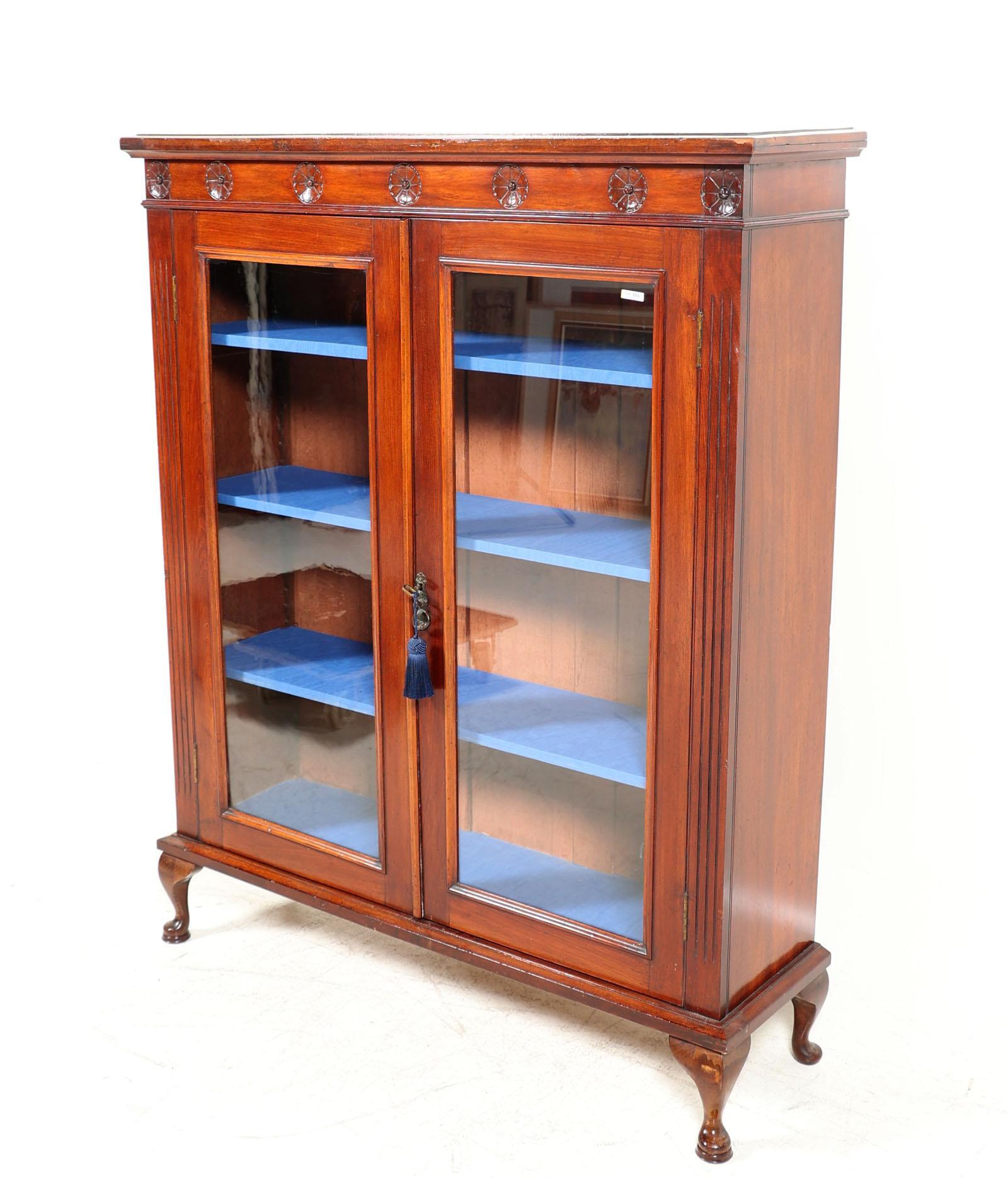 Antieke mahoniehouten 2-deurs vitrinekast rustend op cabriole poten, h.131 x b.107 x d.31 cm.
