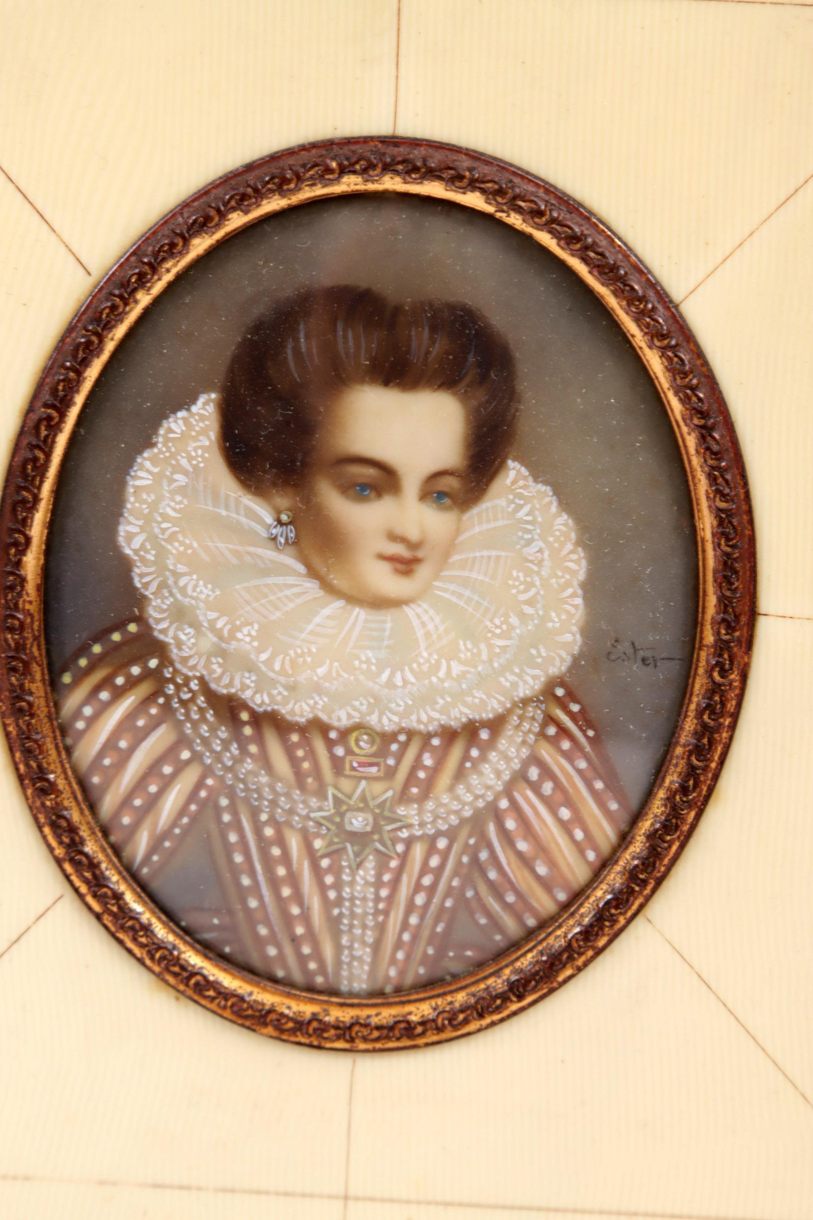 Handgeschilderde portretminiaturen van vrouwen, 15 x 14 cm.