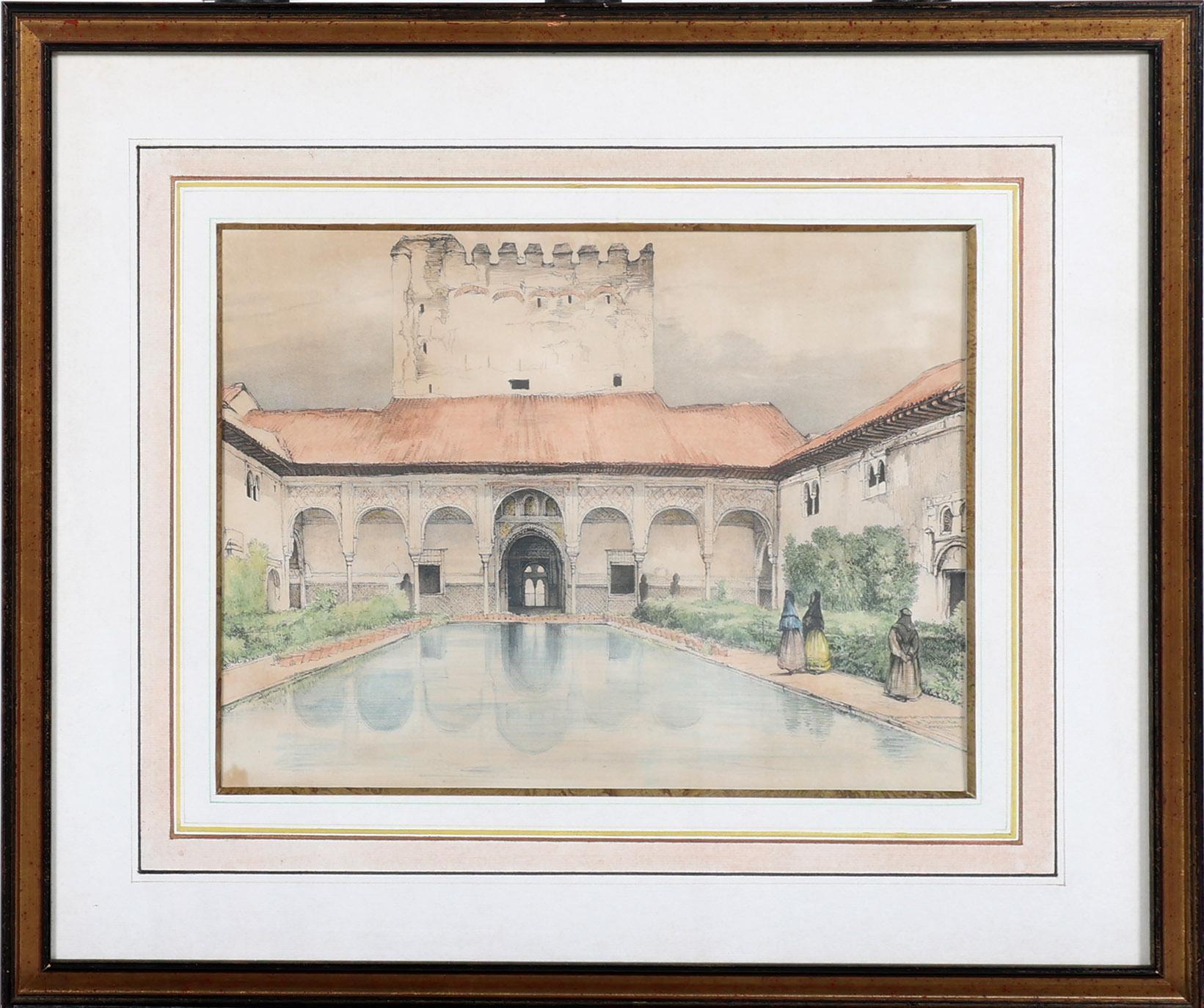 John F. Lewis (1805-1876), Patio de los arrayanes Y Torre de Comares, lithografie, 37 x 29 cm.