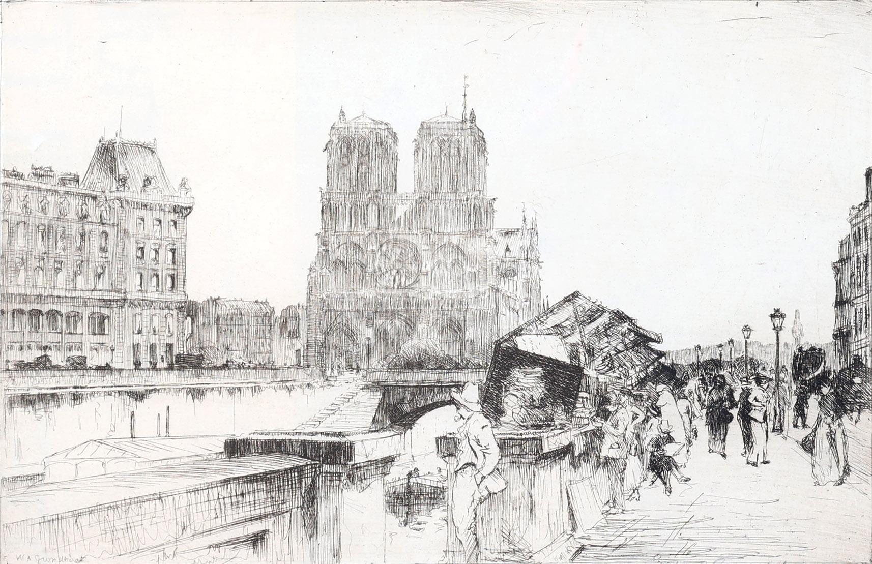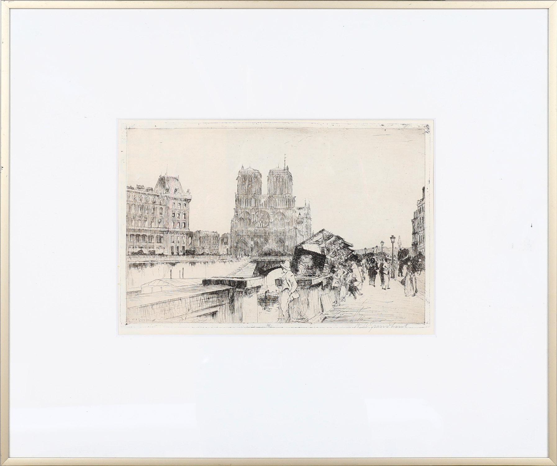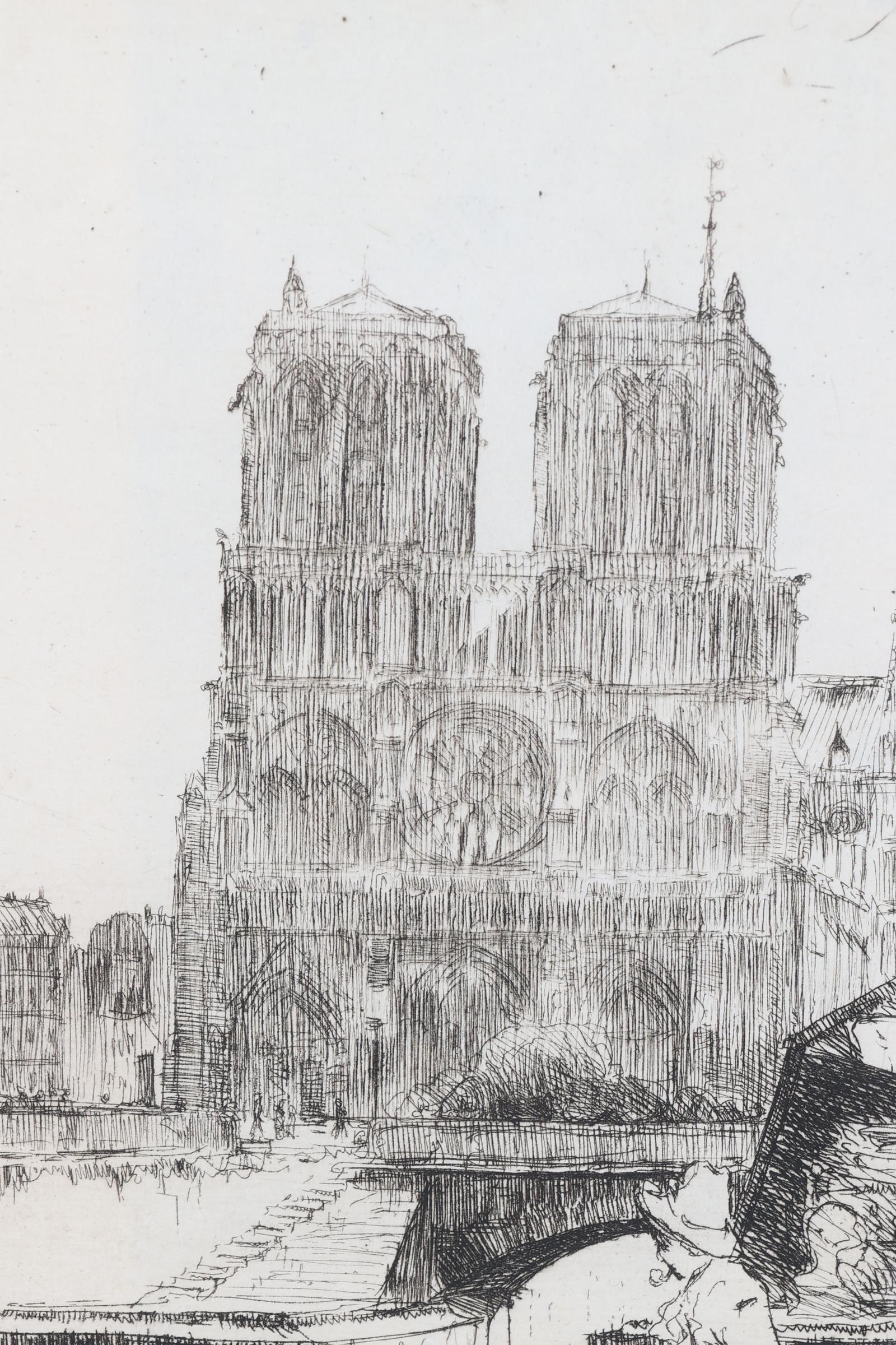 Willem Adrianus Grondhout (1878-1934), Zicht op de Notre Dame te Parijs, ets, 23 x 34 cm.