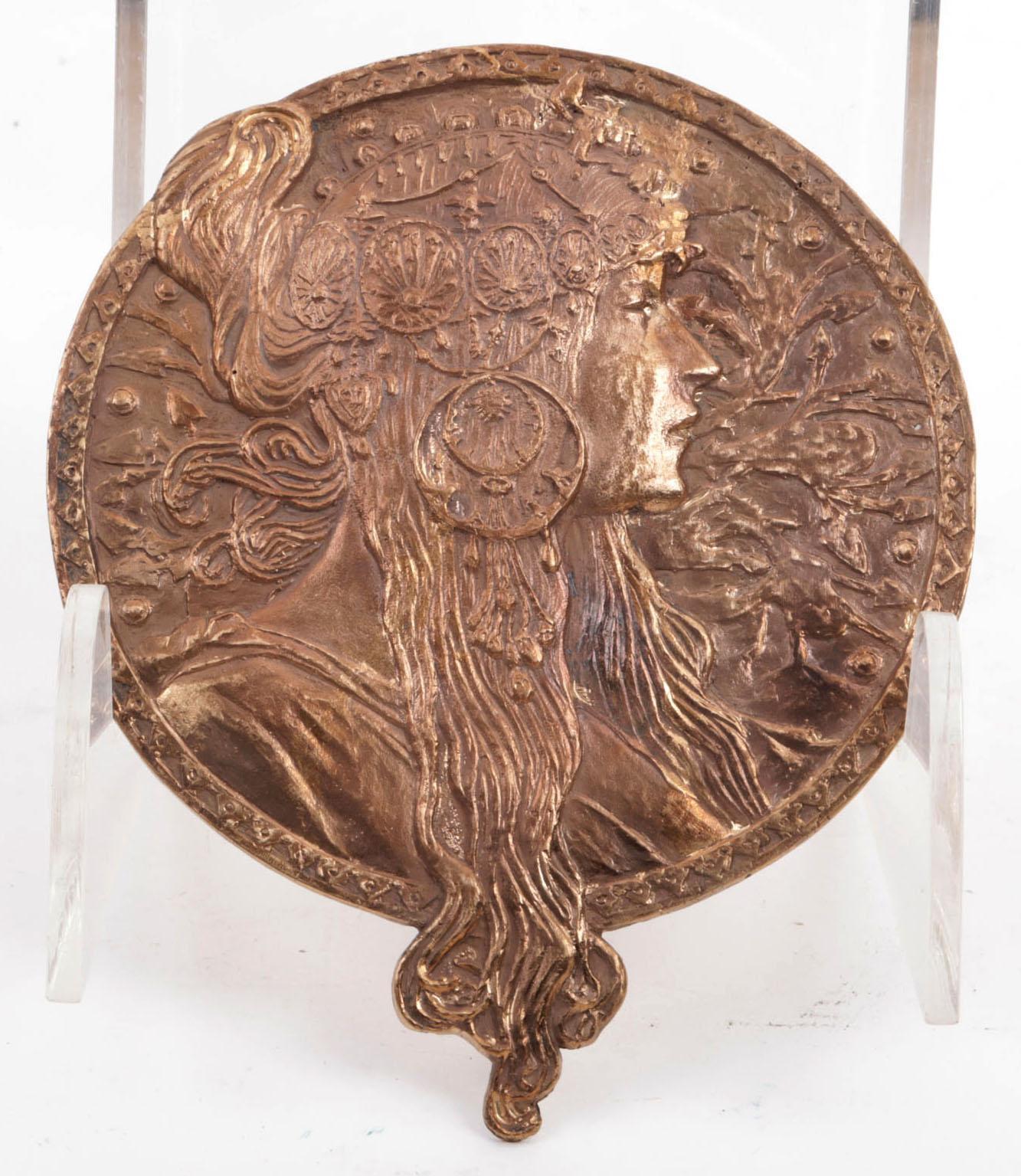 Bronzen Art Nouveau stijl plaquette