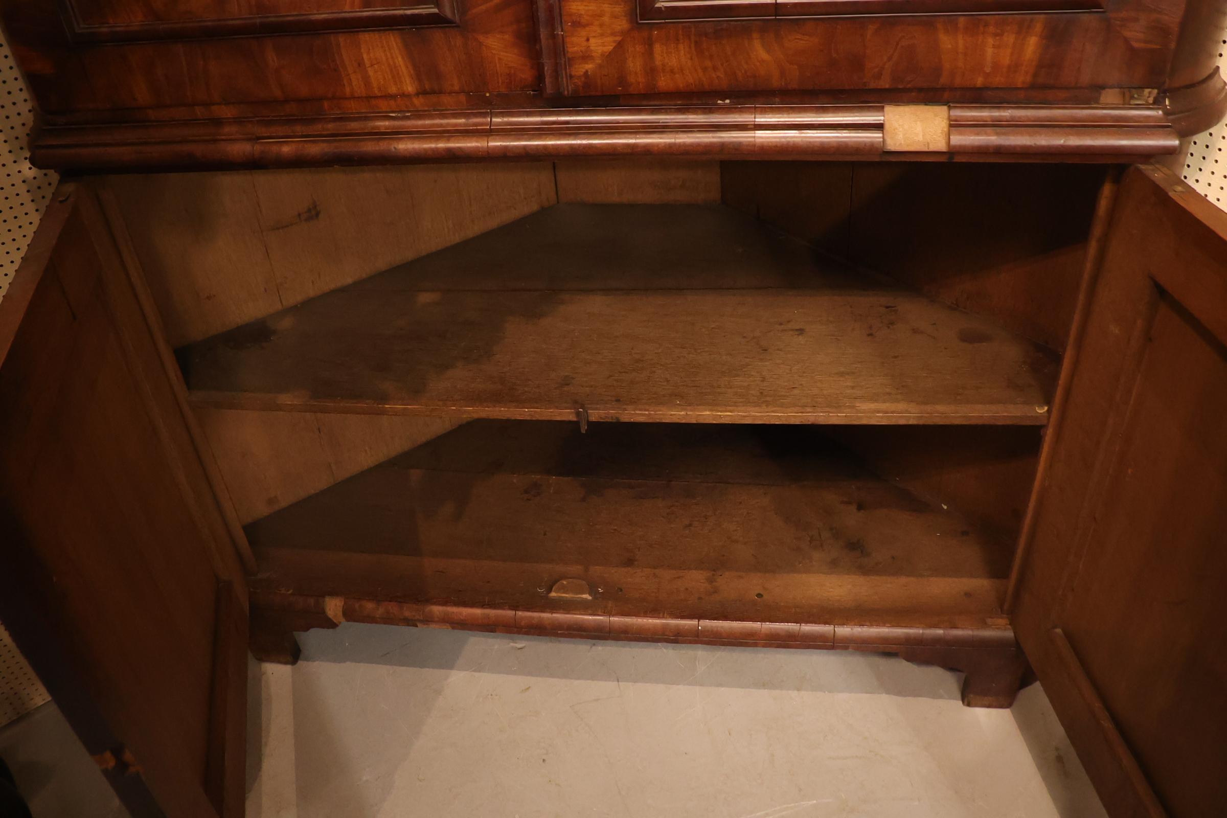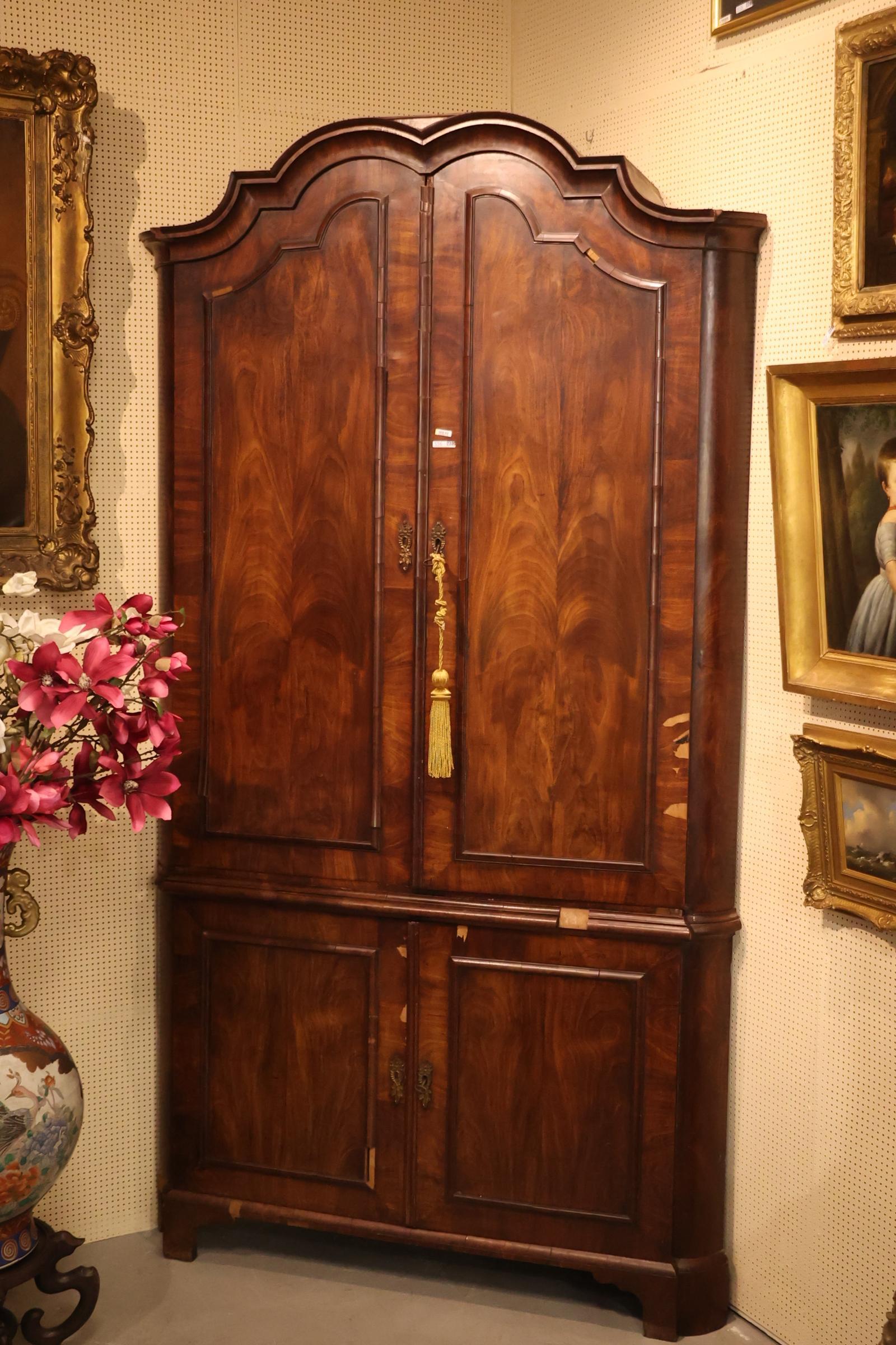 Antieke mahoniehouten 4-deurs hoekkast, h.243 x b.125 x d.67 cm. (defecten)