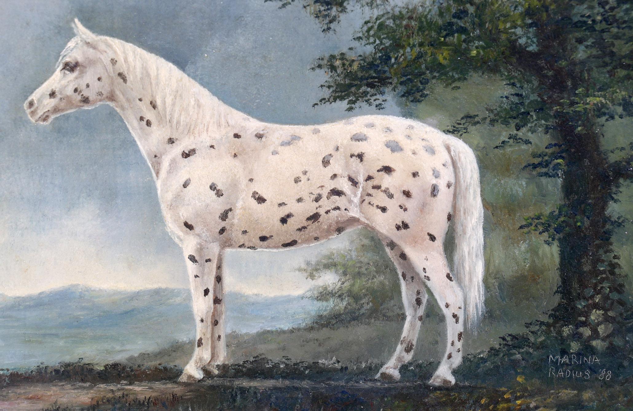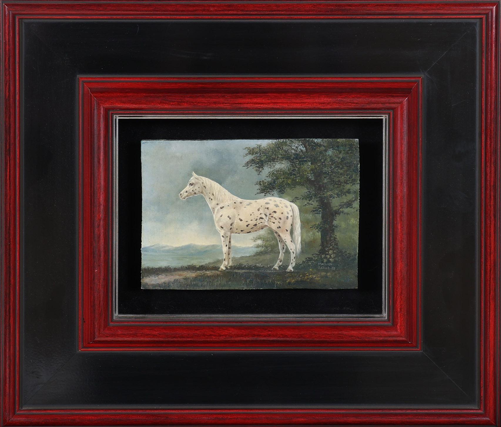 Marina Radius (1953), Gestippeld paard, olieverf op paneel, gedateerd 1988, 10,5 x 15 cm.