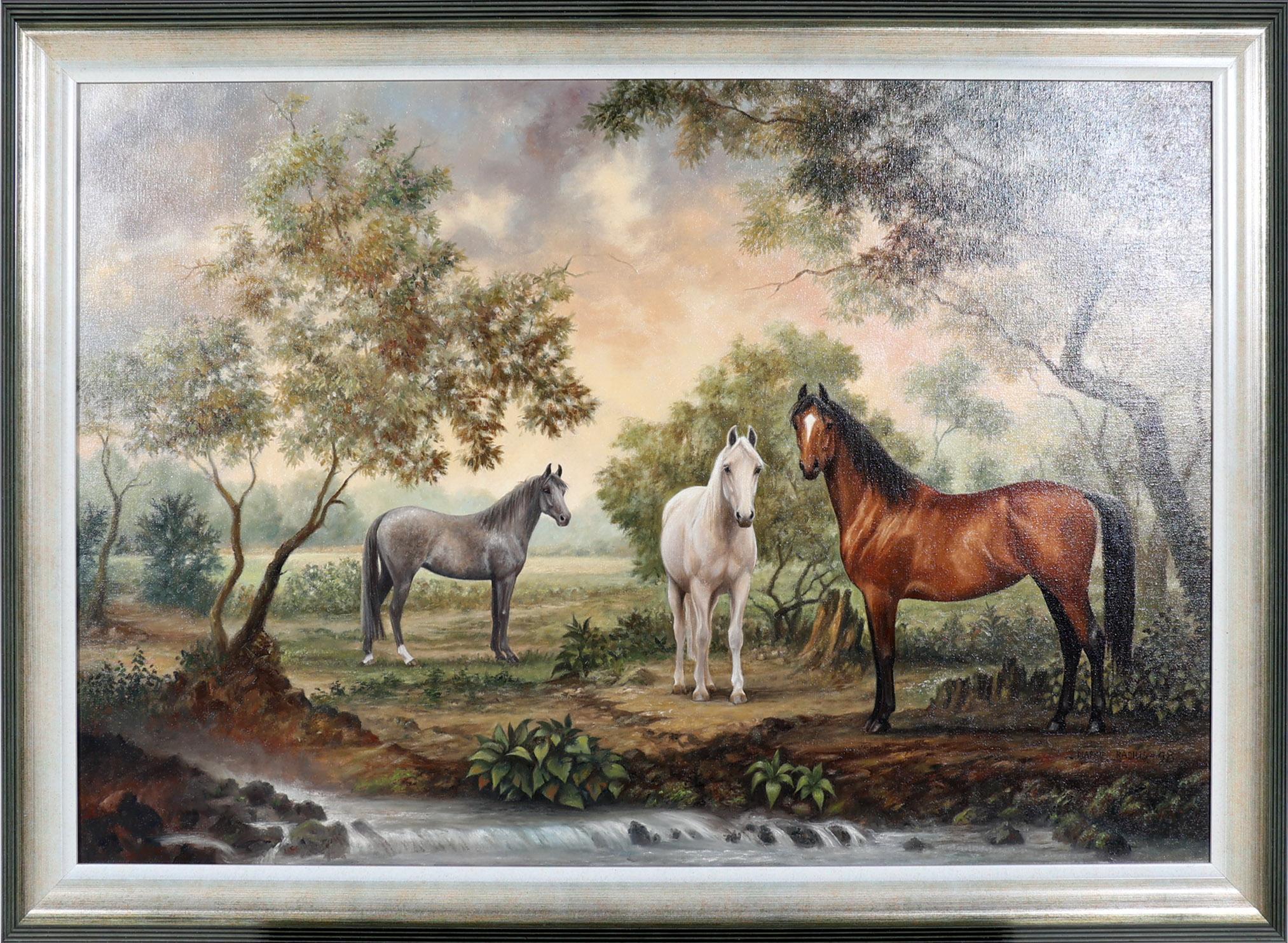 Marina Radius (1953), 'Bij de beek', olieverf op doek, gedateerd 1998, 60 x 90 cm.