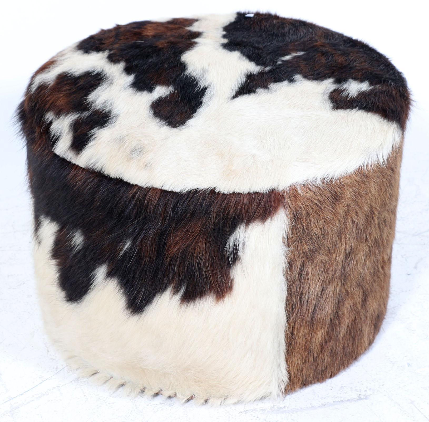 Poef van koeienhuid, h.36 x diam.51 cm.