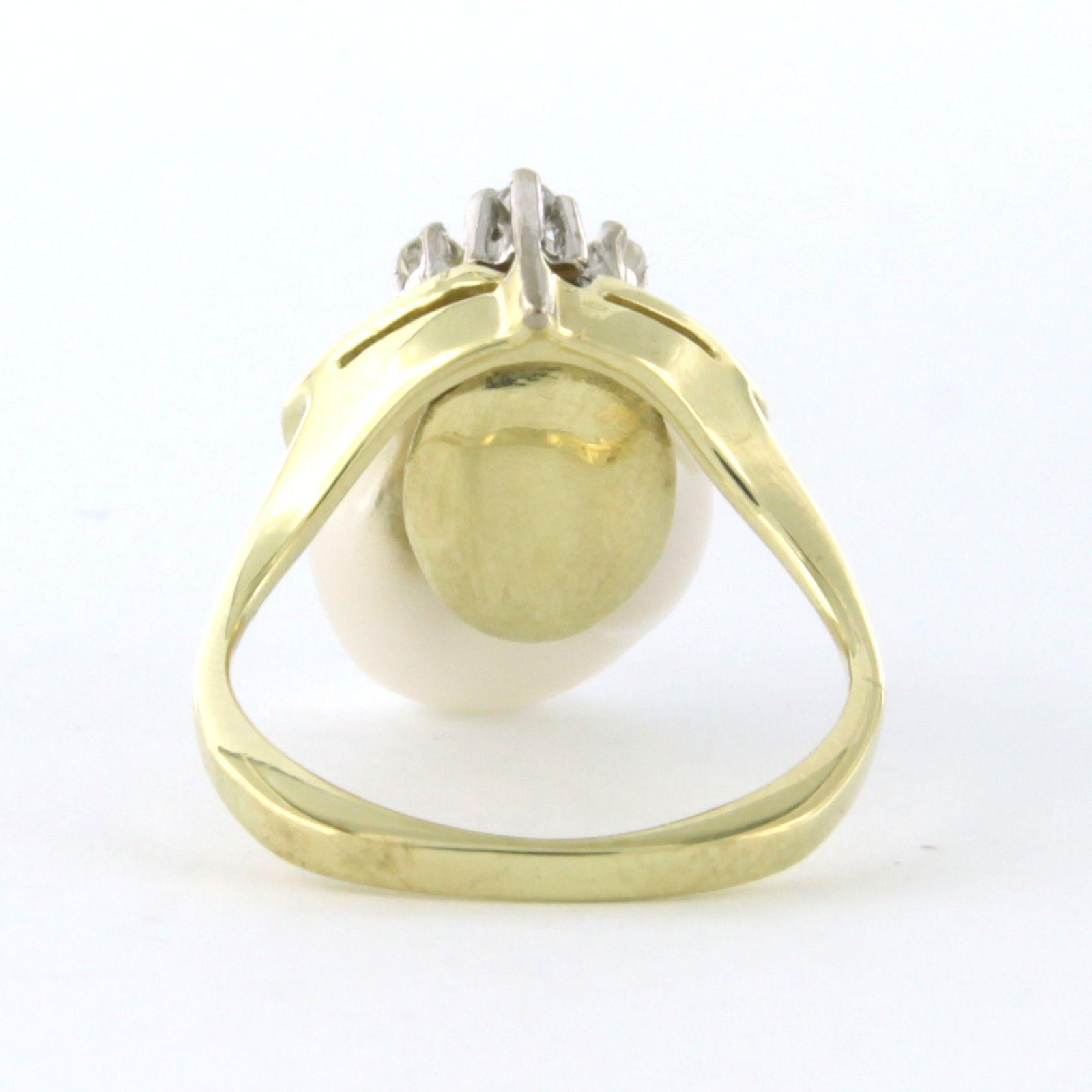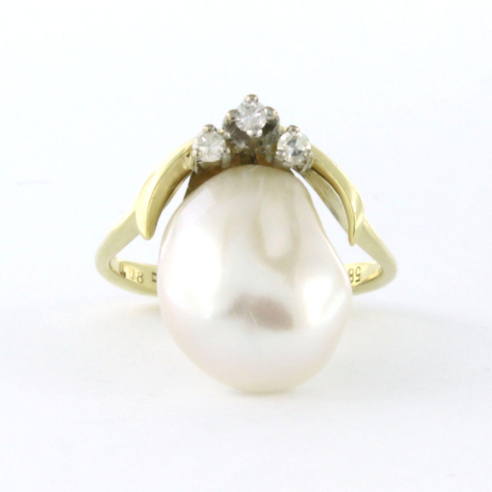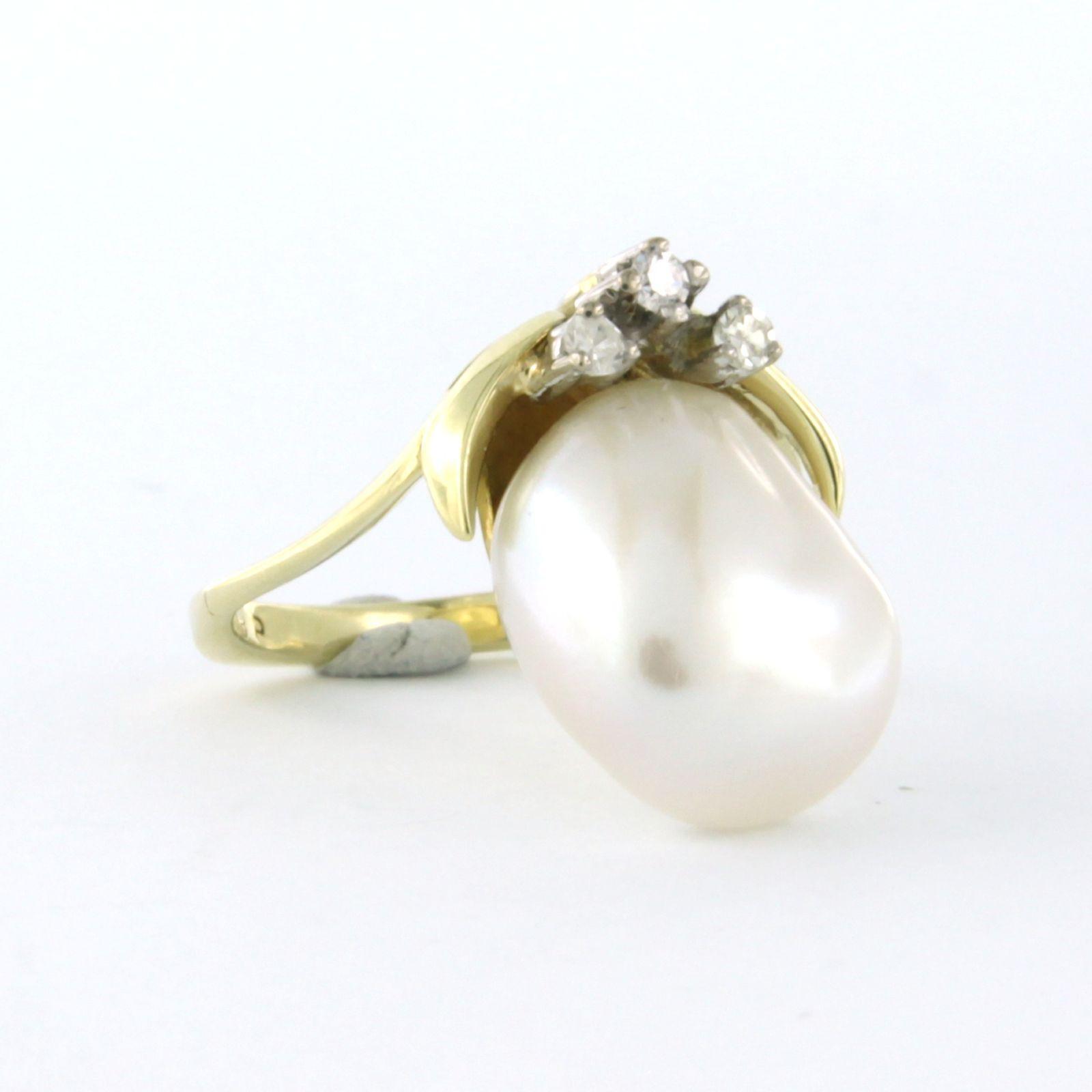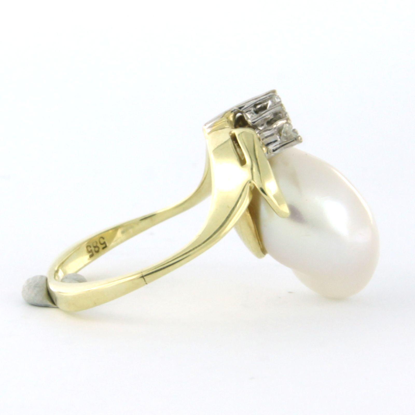14 Kt. bicolour gouden ring bezet met parel en single cut geslepen diamant tot. 0.09 ct. - ringmaat 15(47)
