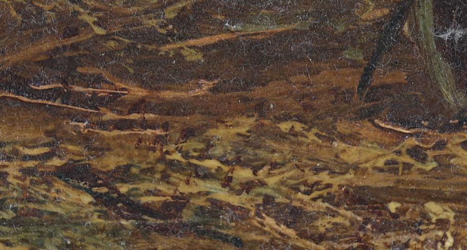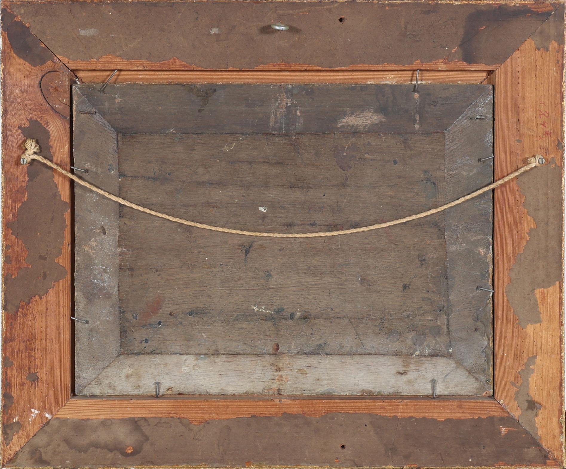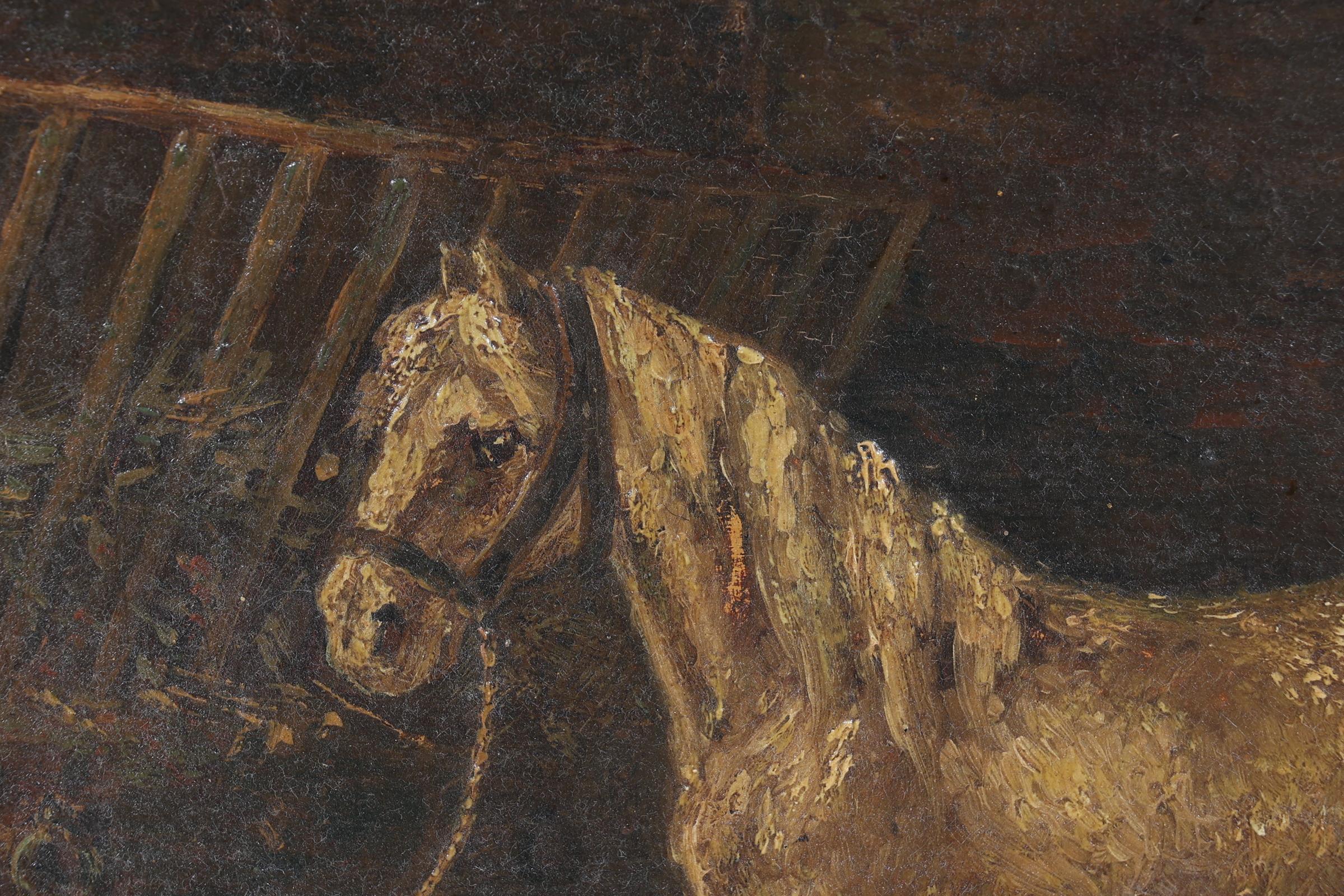 Onb. meester, Boer met paard in stal, olieverf op paneel, 25 x 34 cm.