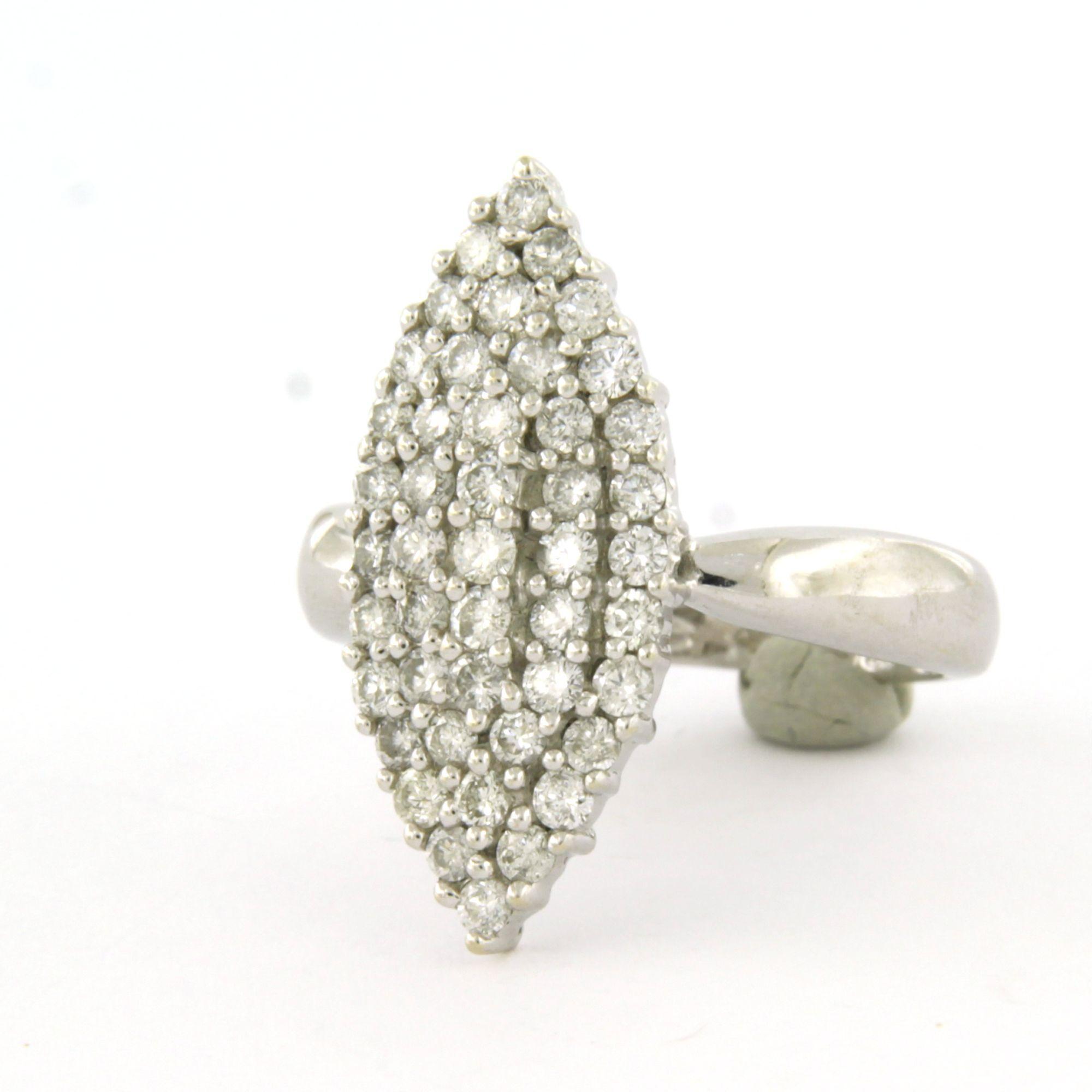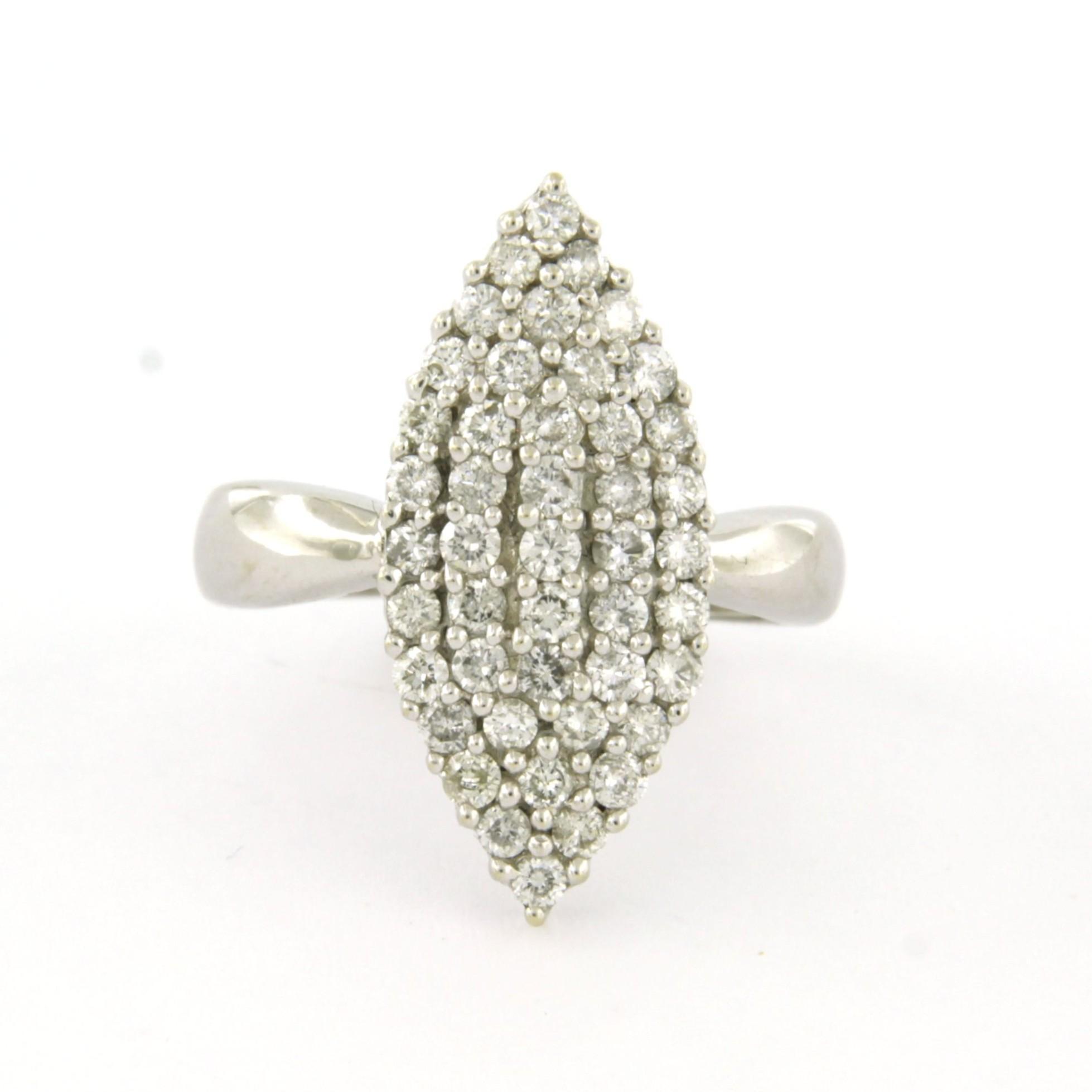 18 Kt. witgouden ring bezet met briljant geslepen diamanten tot. 1.12 ct. - ringmaat 16.5(52)