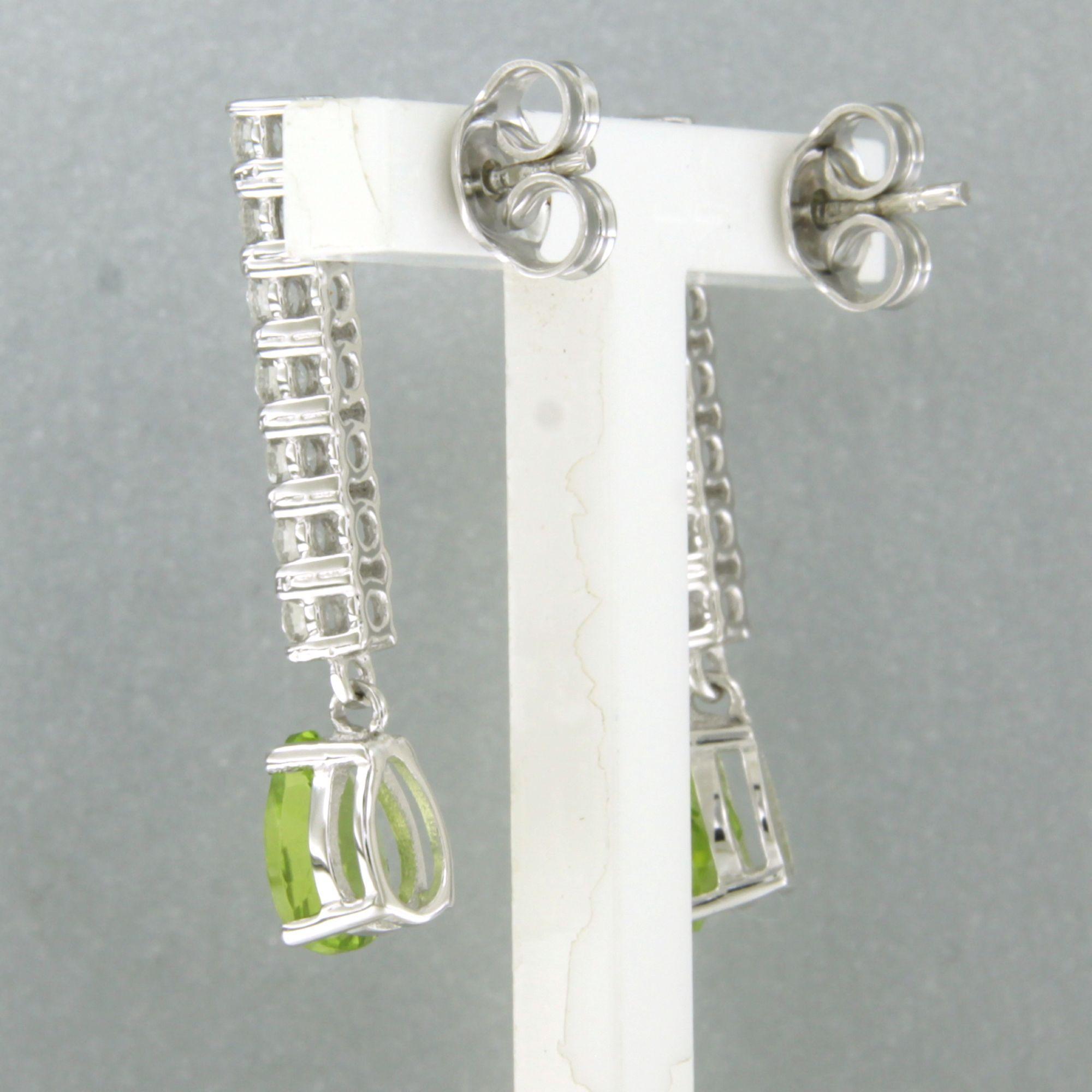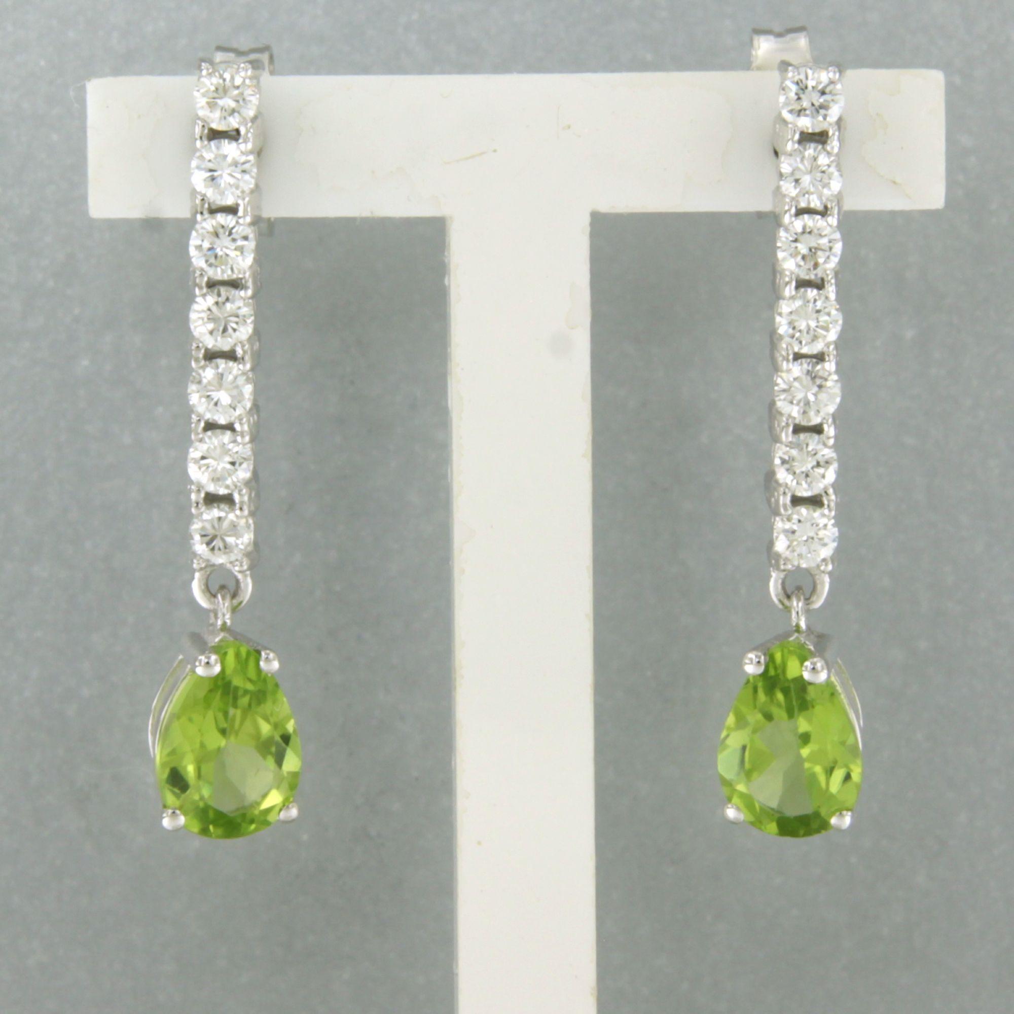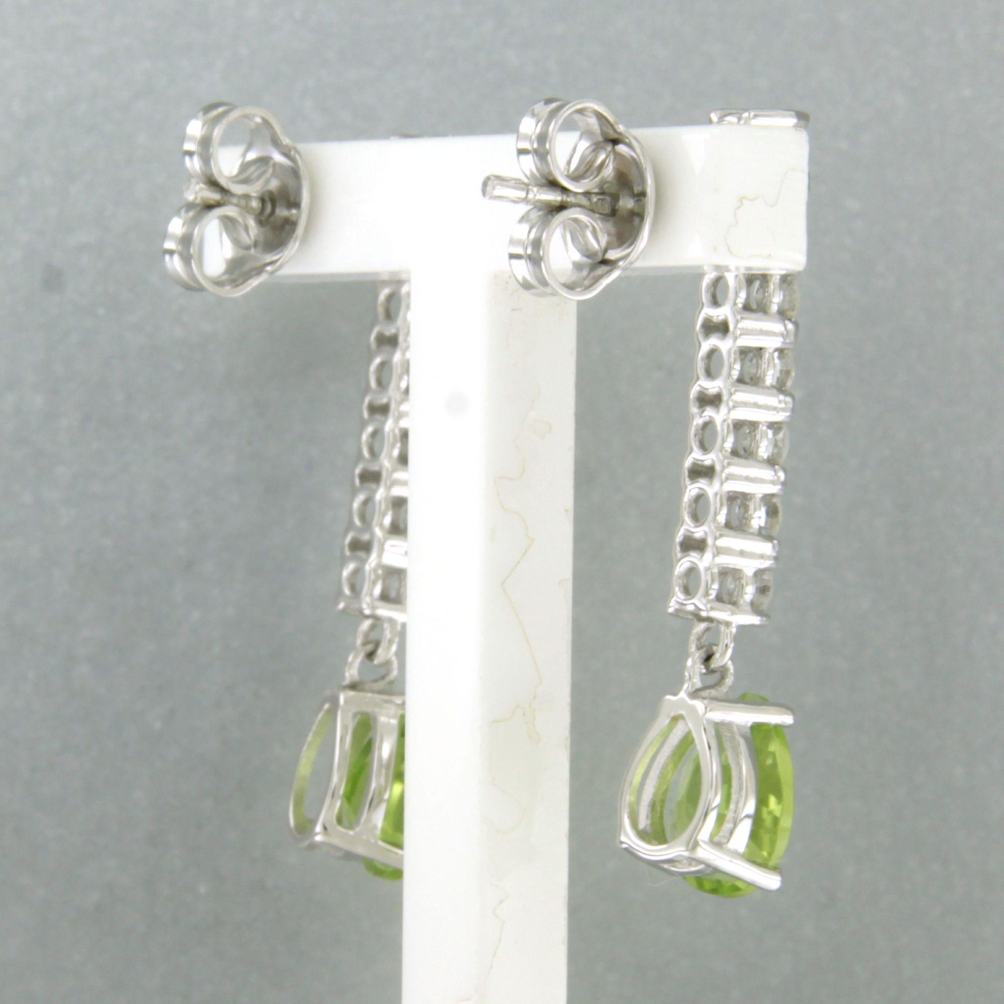 18 Kt. witgouden oorhangers bezet met peridot en briljant geslepen diamanten tot. 0.56 ct.