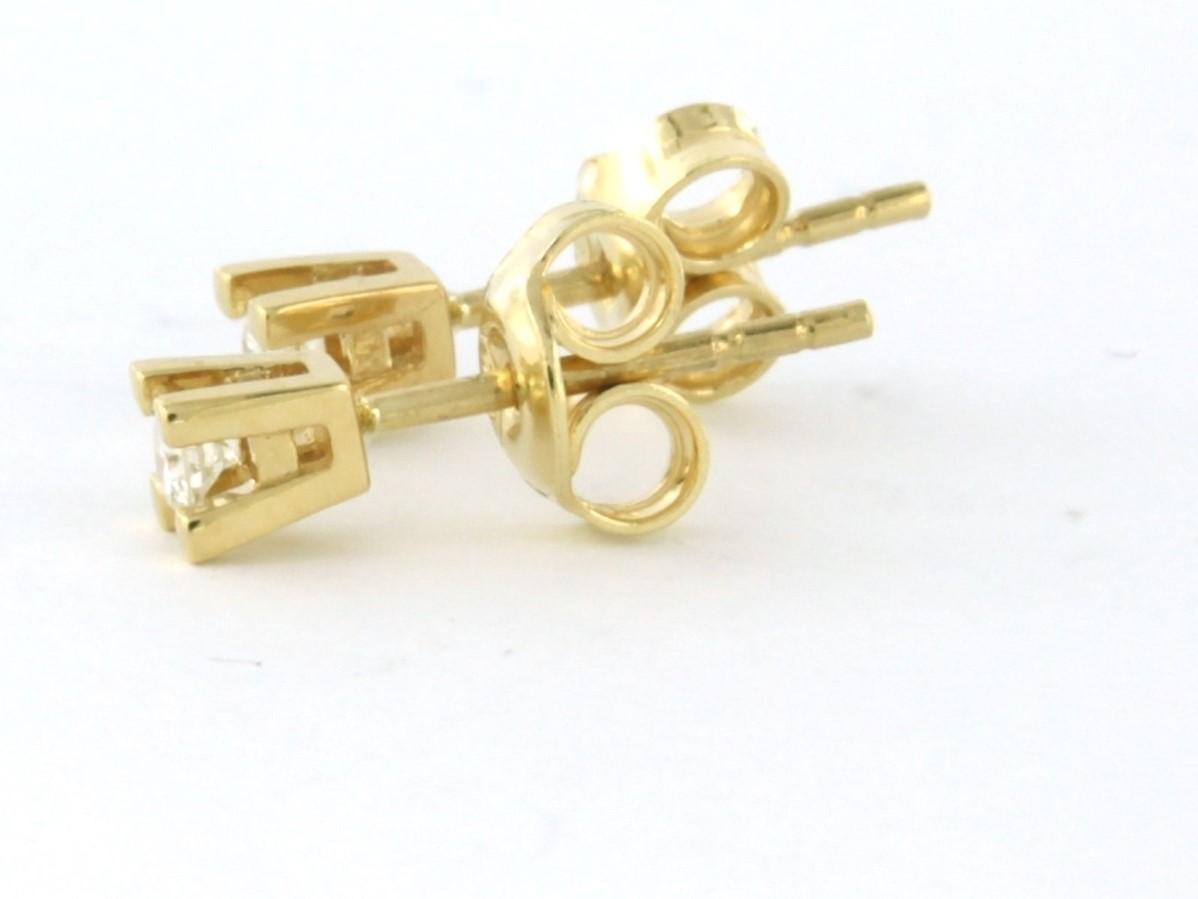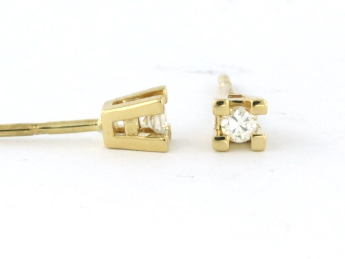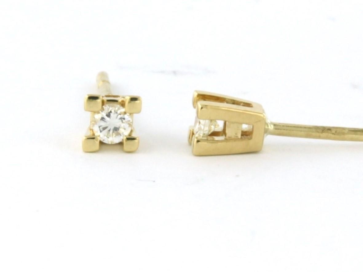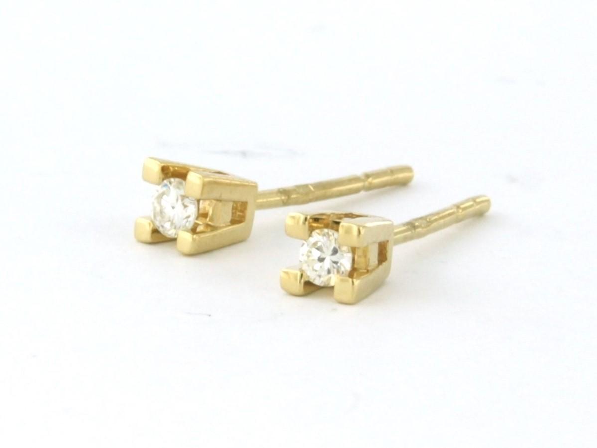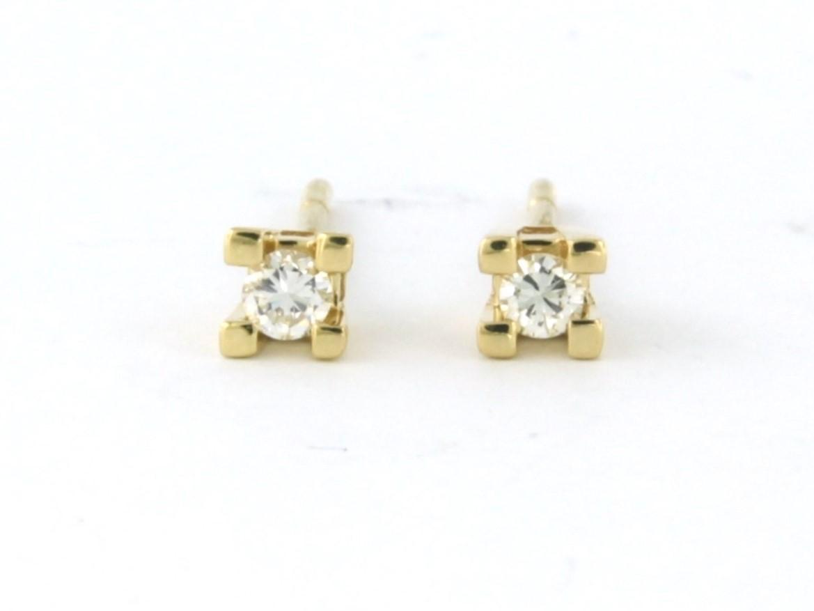 18 Kt. geelgouden solitair oorknoppen bezet met briljant geslepen diamant tot. 0.18 ct.