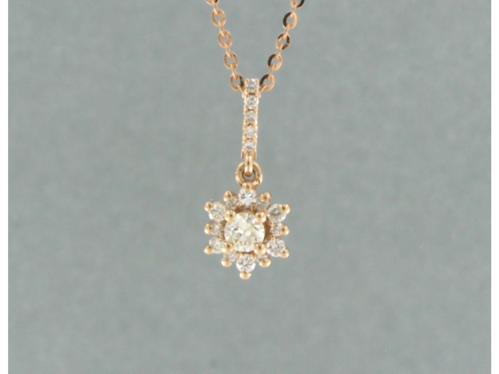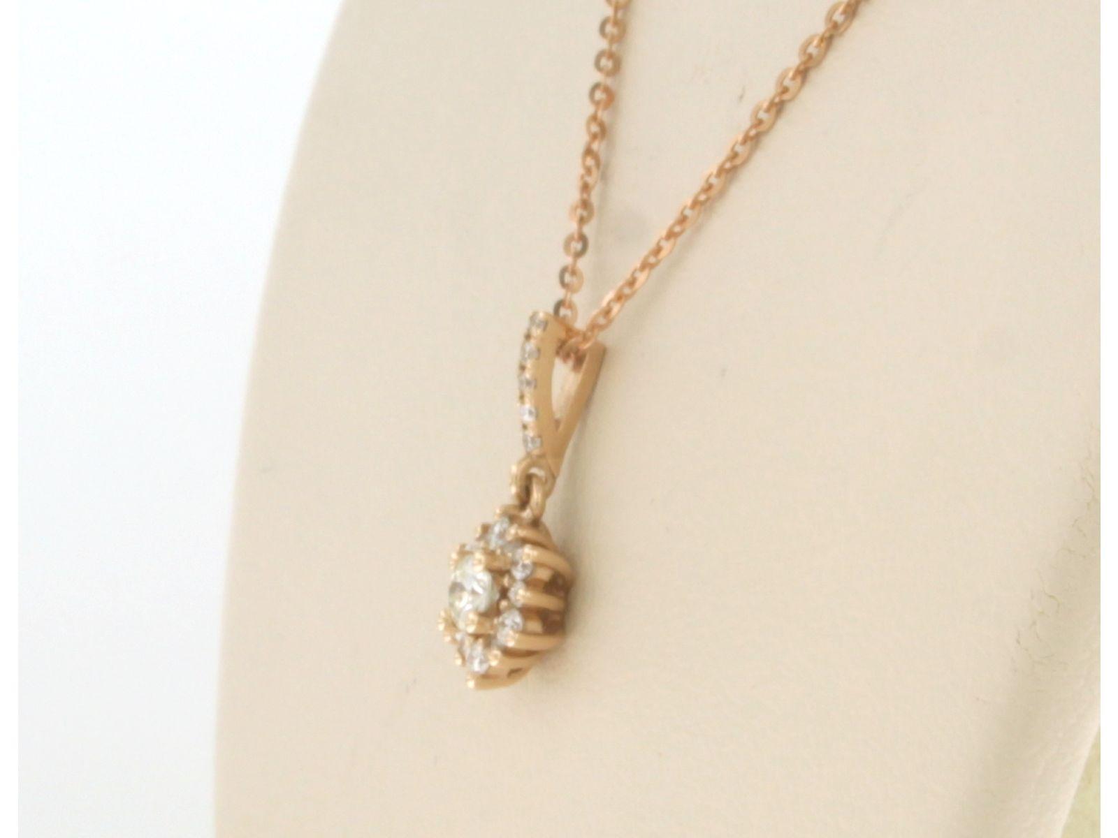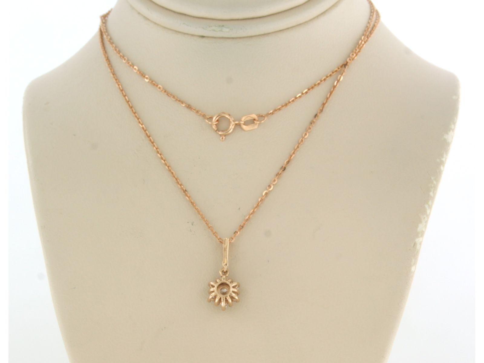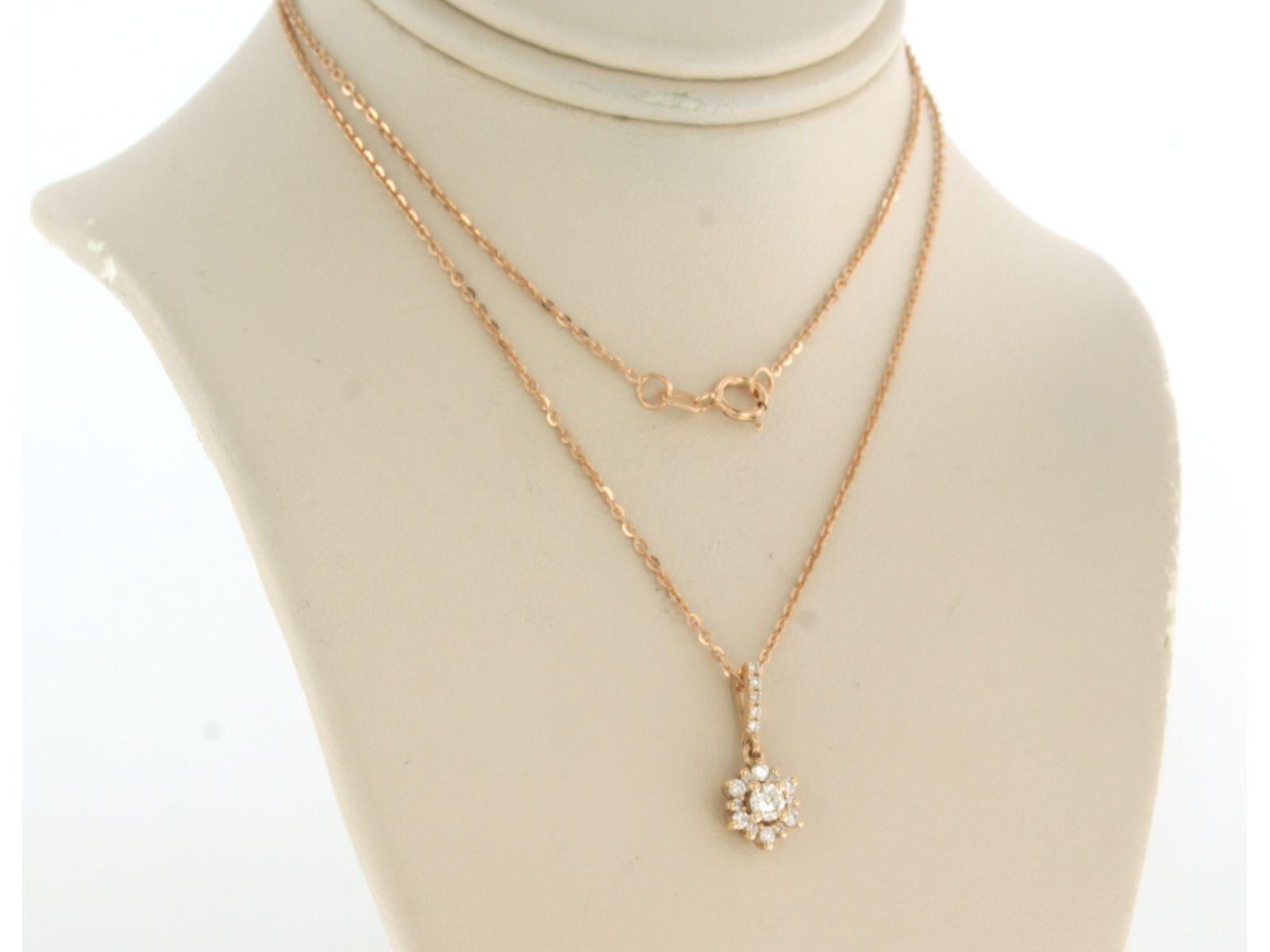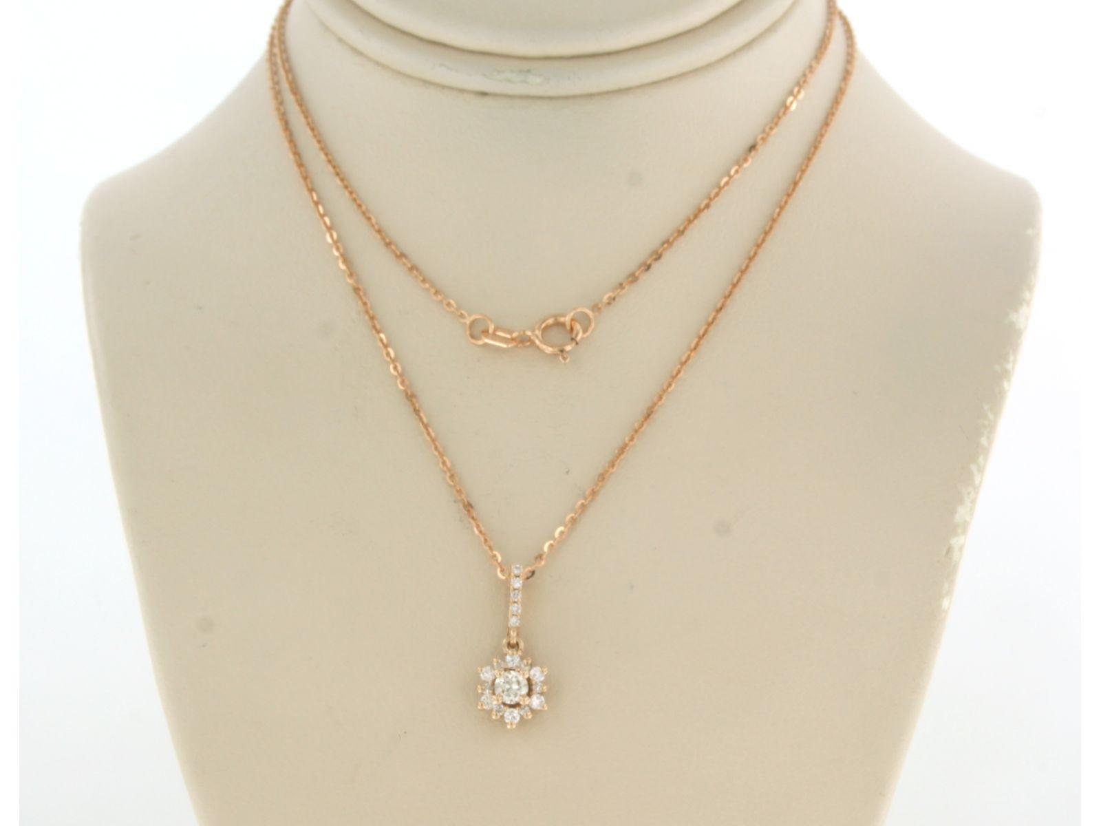 14 Kt. roségouden collier en hanger bezet met briljant geslepen diamanten tot. 0.30 ct. lengte 42 cm