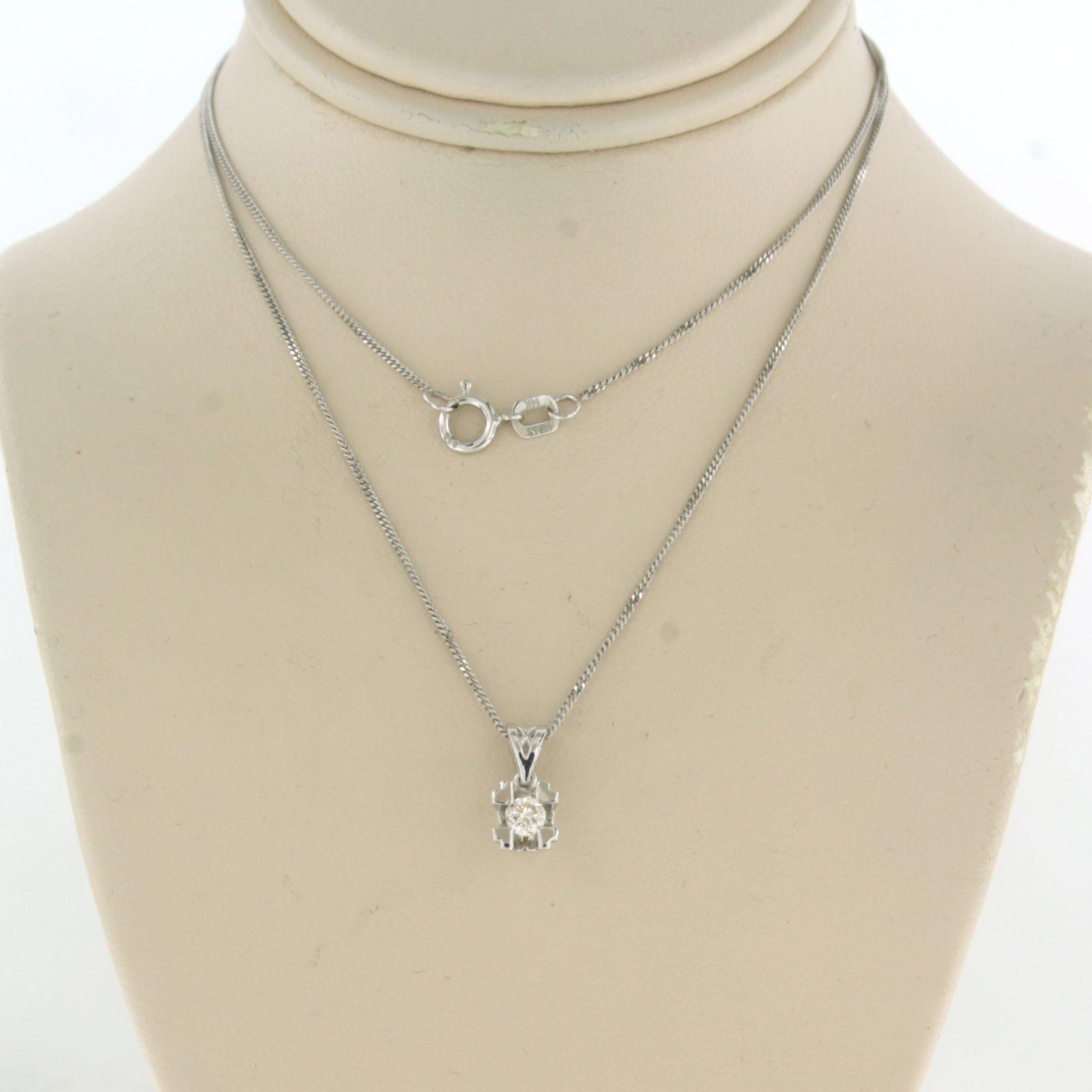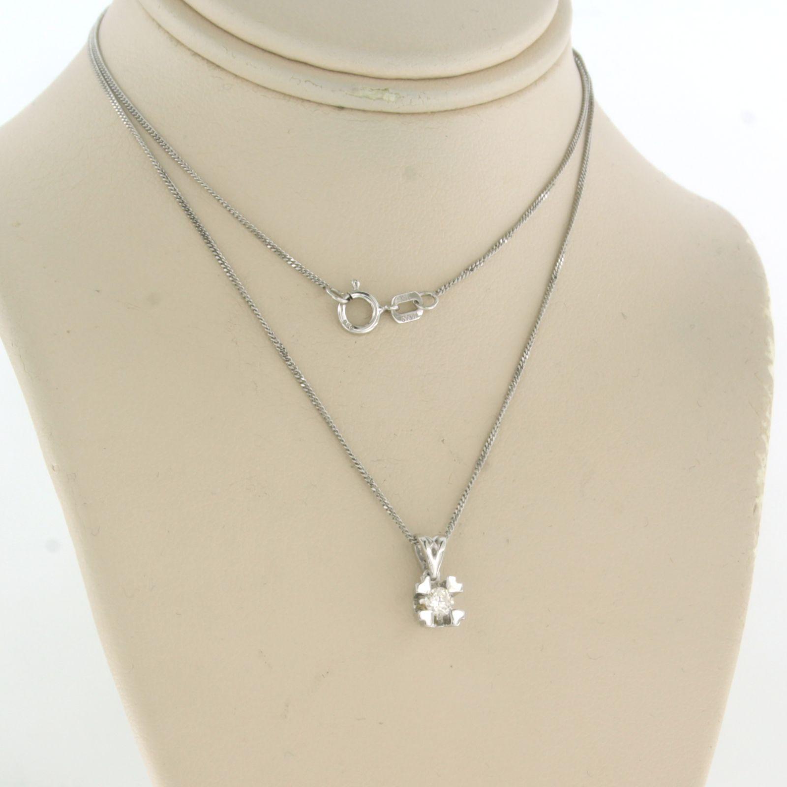 14 Kt. witgouden collier met hanger bezet met briljant geslepen diamant tot. 0.11 ct. Lengte 42 cm.