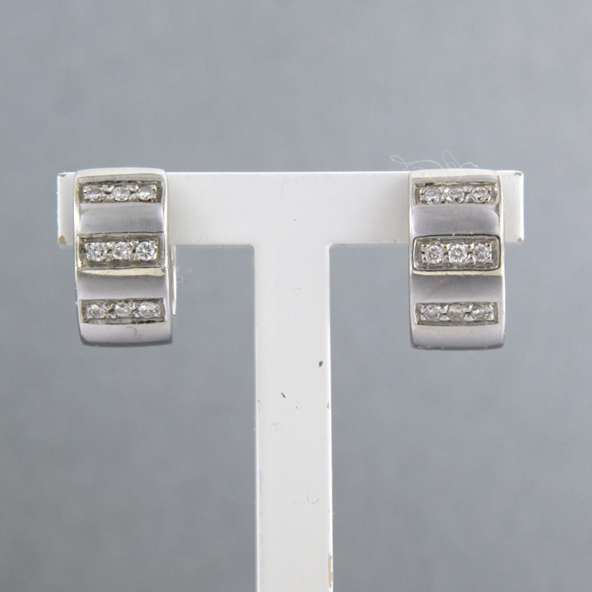 18 Kt. witgouden oorbellen bezet met briljant geslepen diamanten tot.0.15 ct.