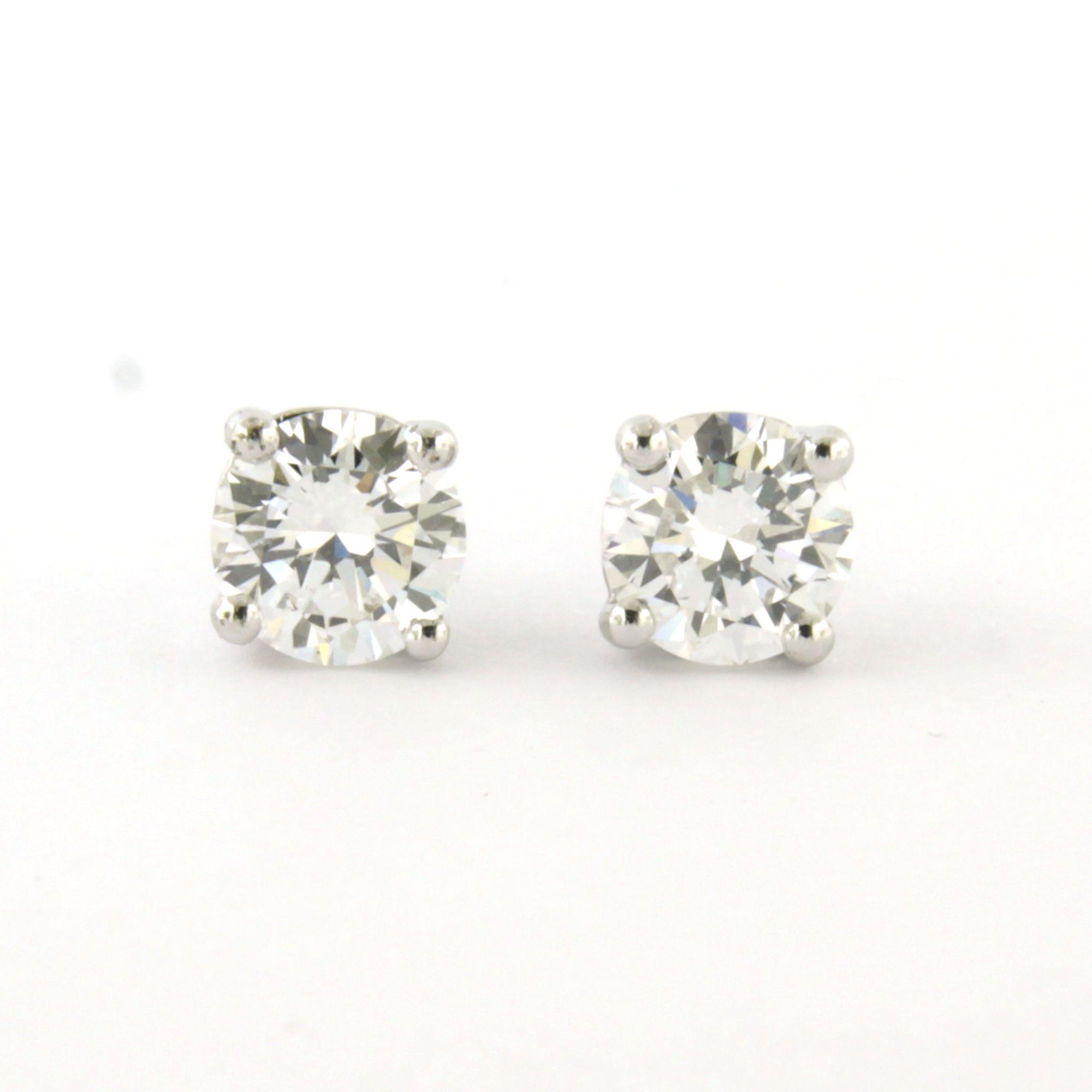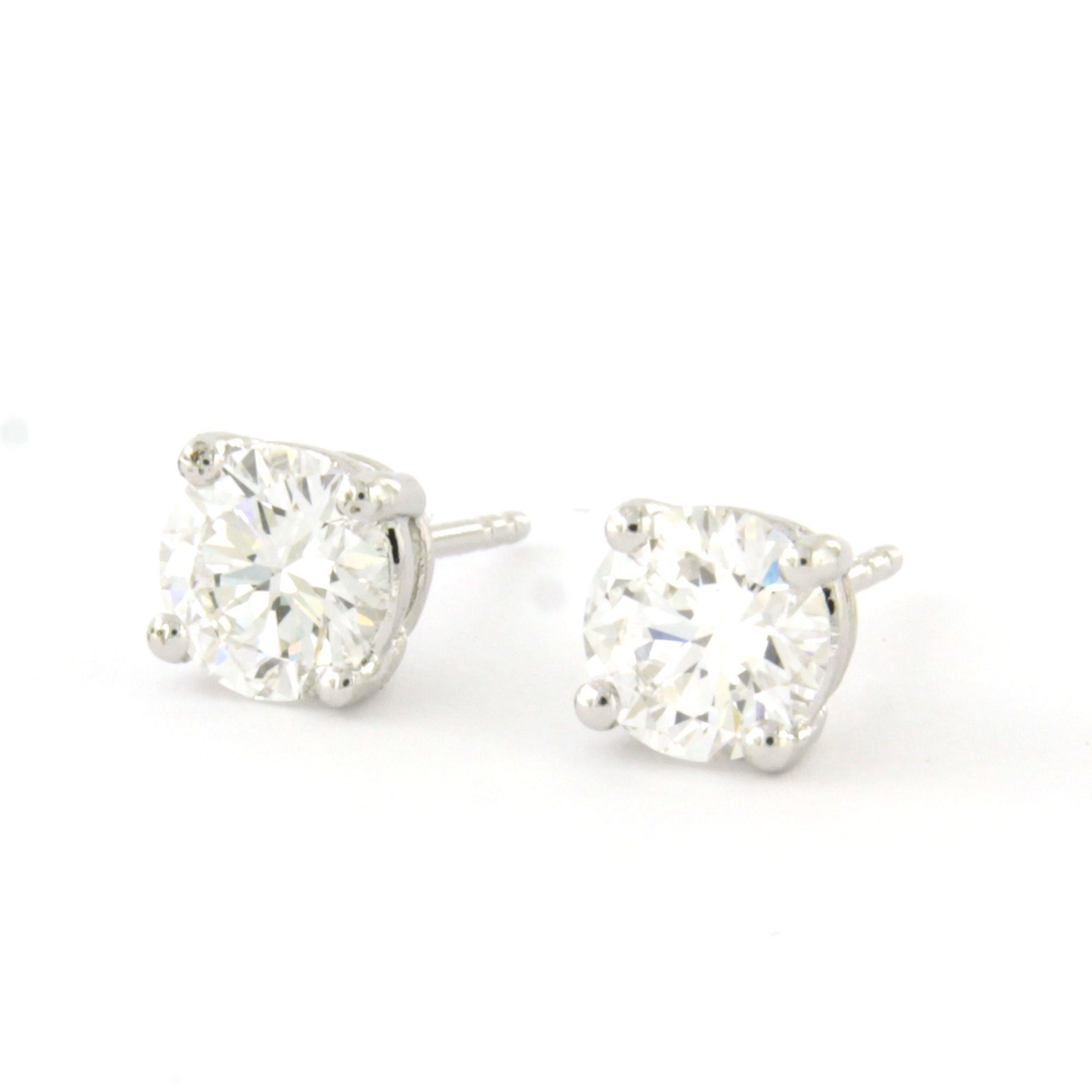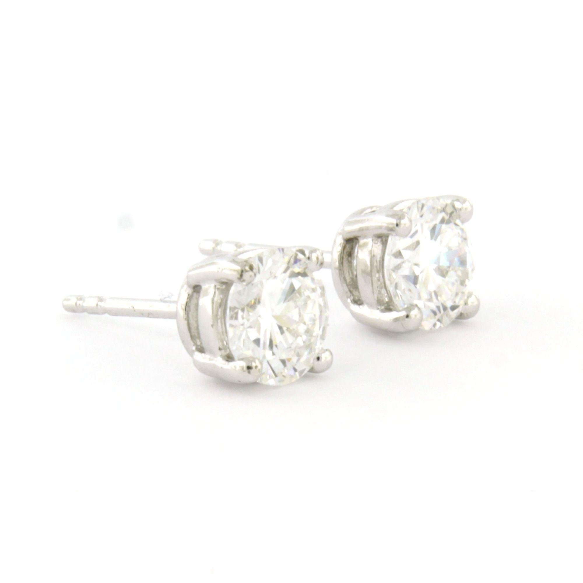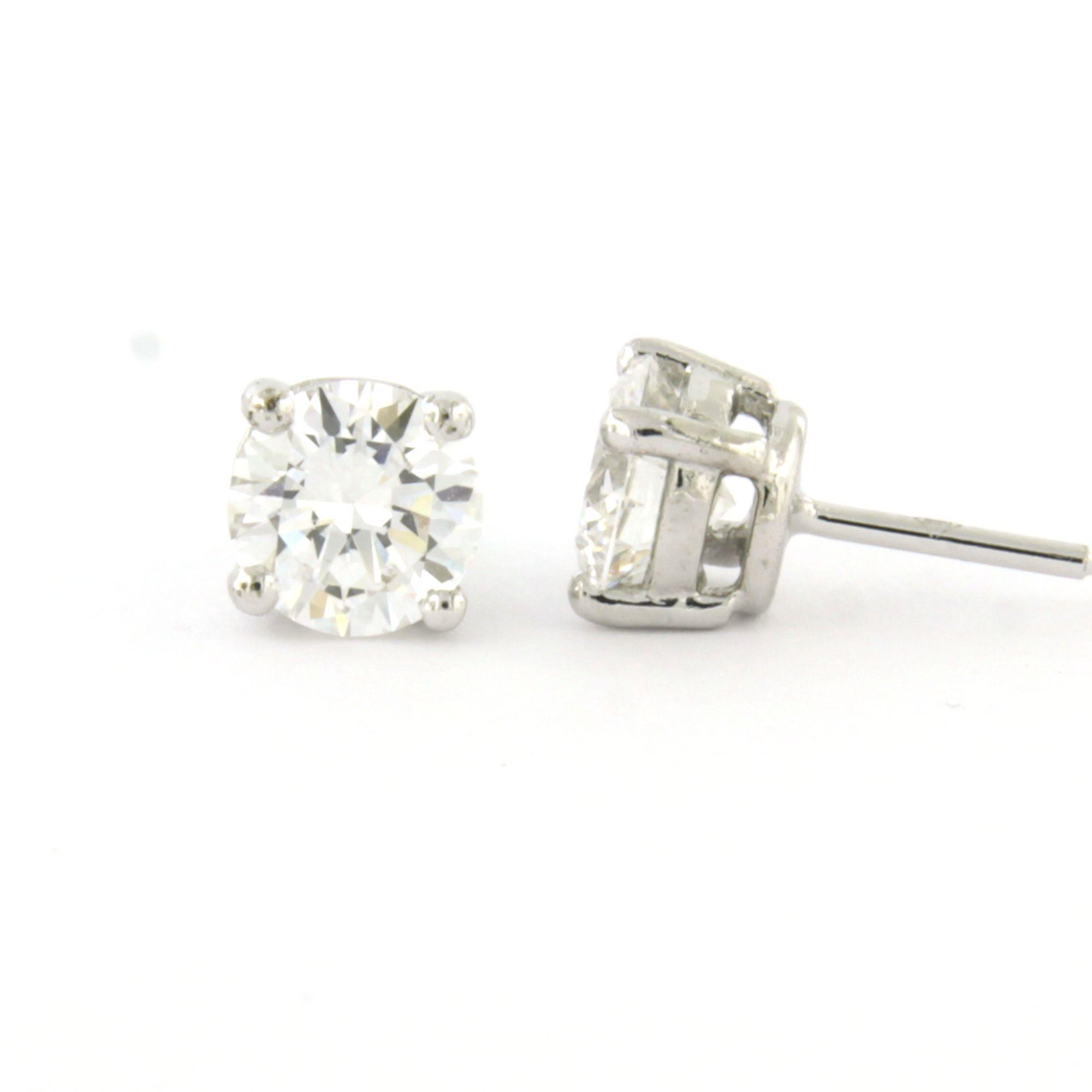 14 Kt. witgouden solitair oorknoppen bezet met briljant geslepen diamant tot 1.80 ct. - D - VVS2 en VS1 volgens IGI diamant certificaten