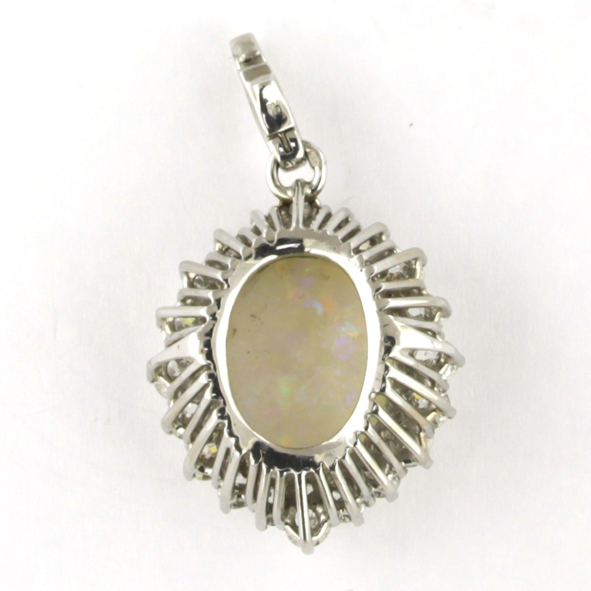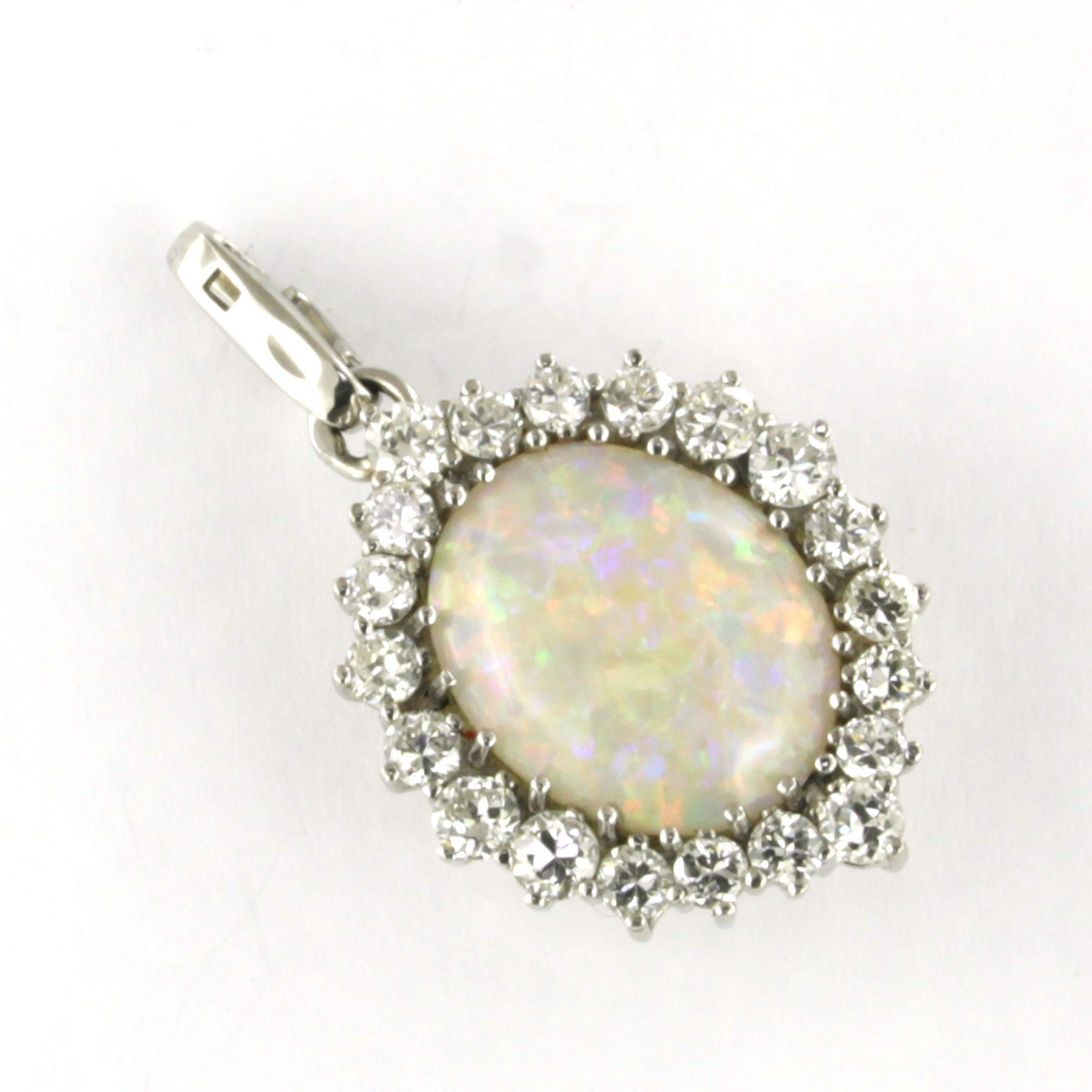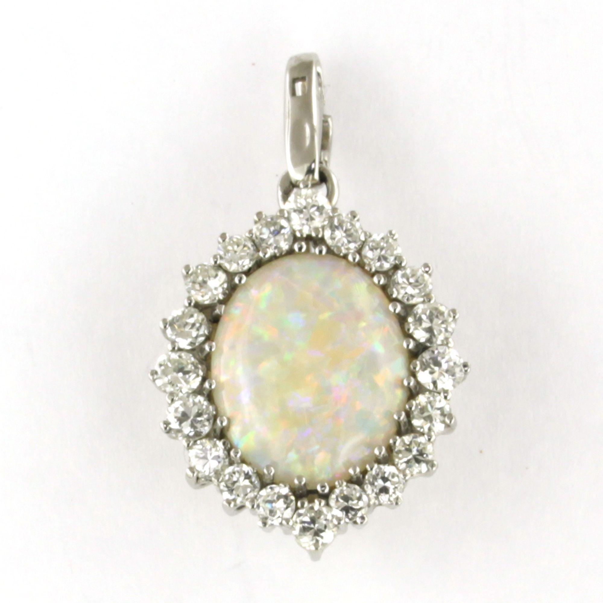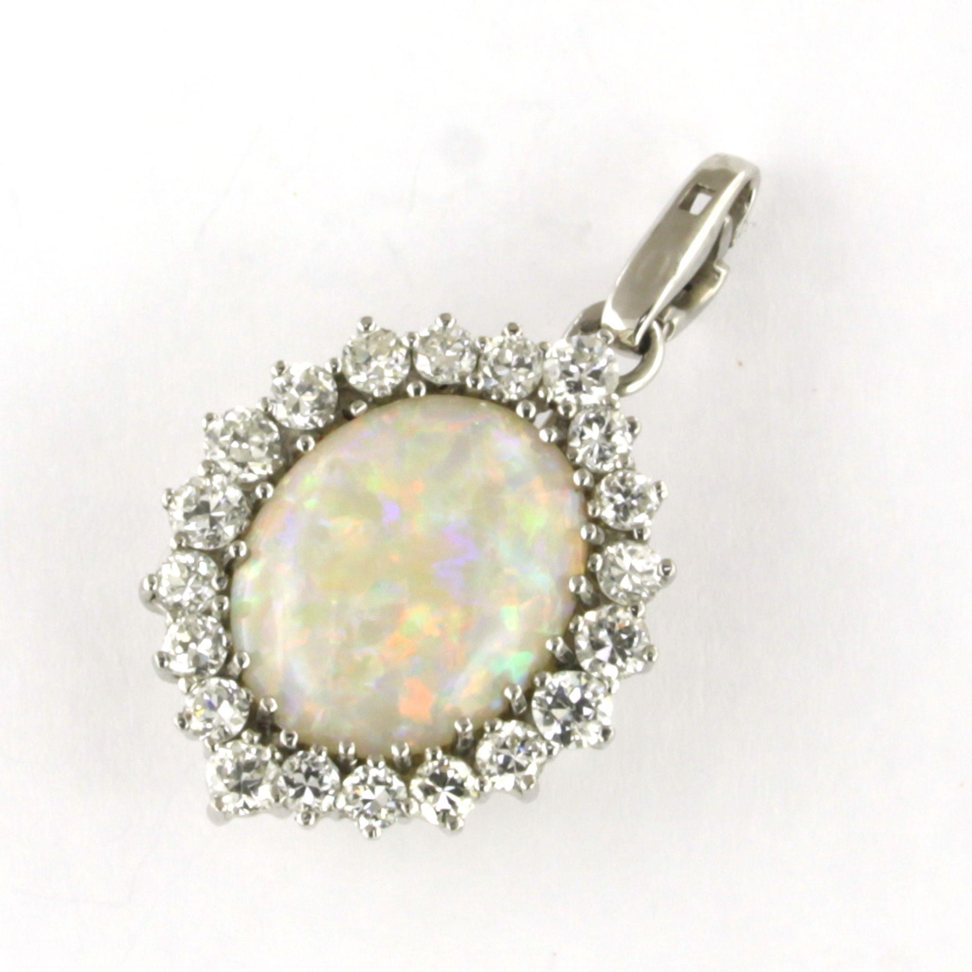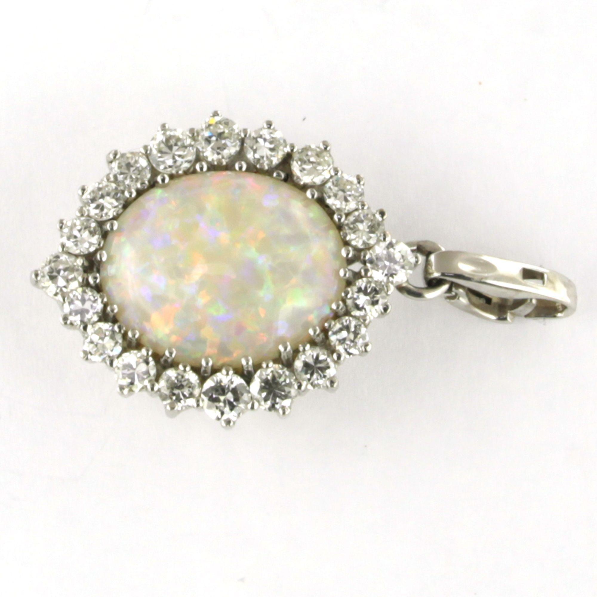 18 Kt. witgouden hanger bezet met opaal en briljant geslepen diamanten tot. 1.50 ct.