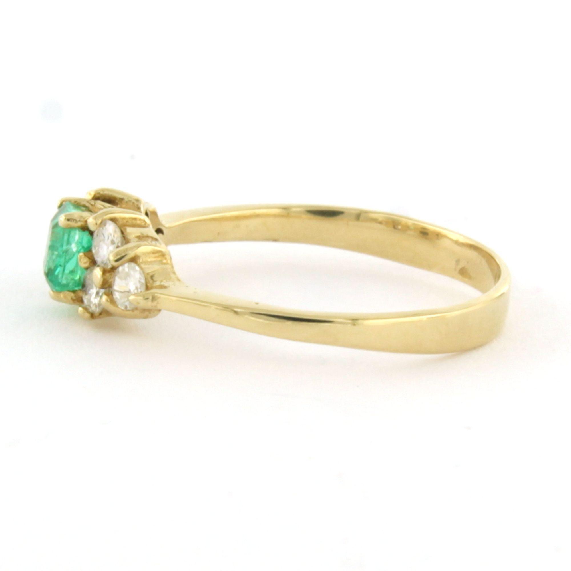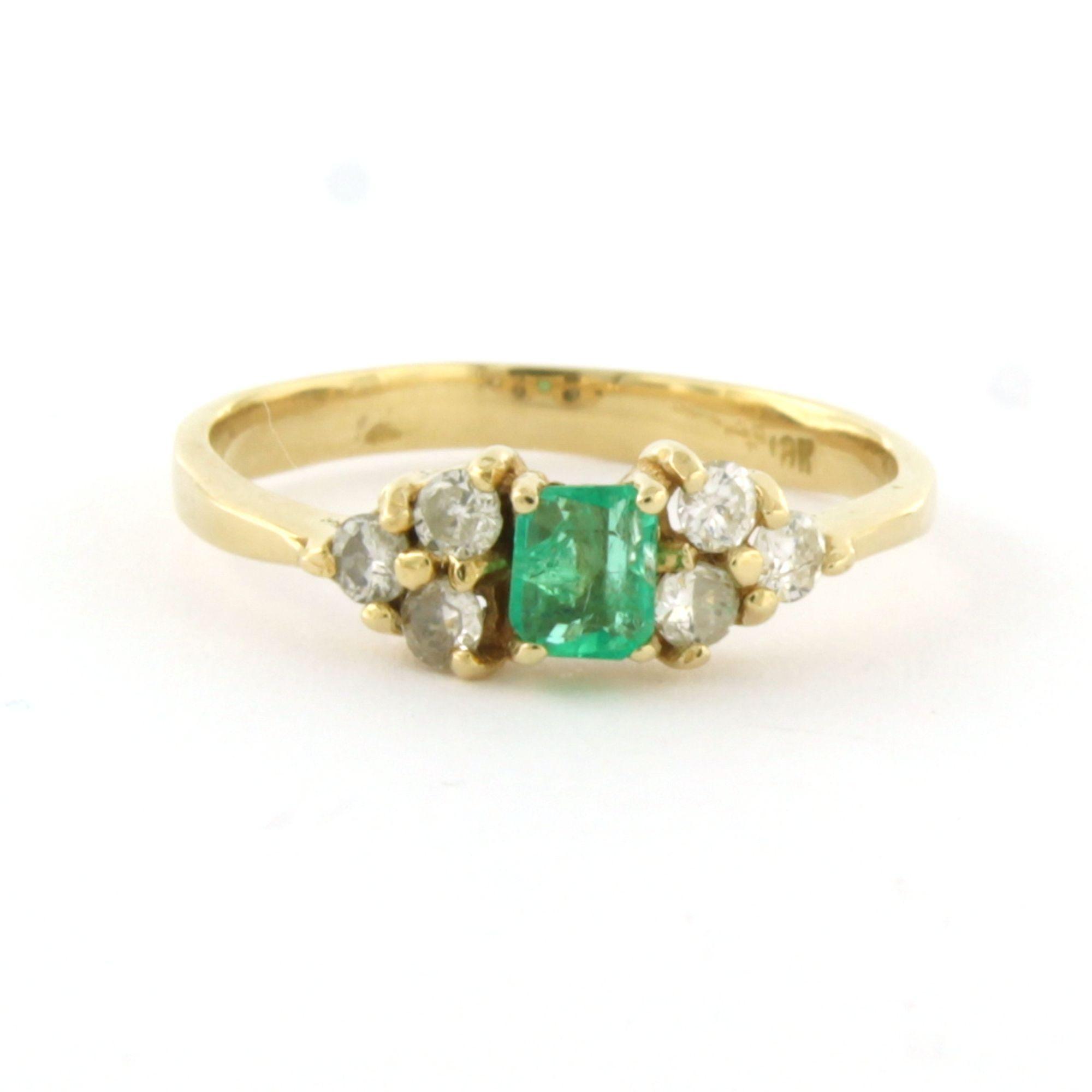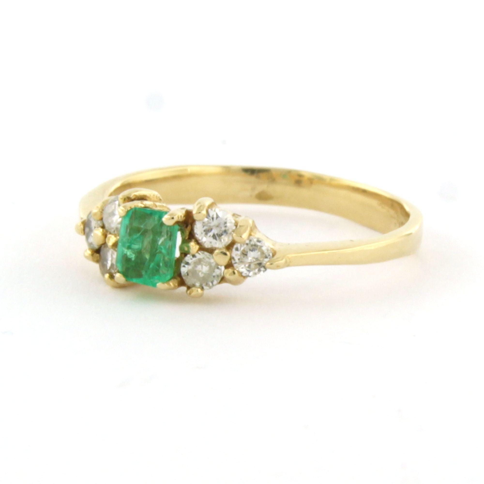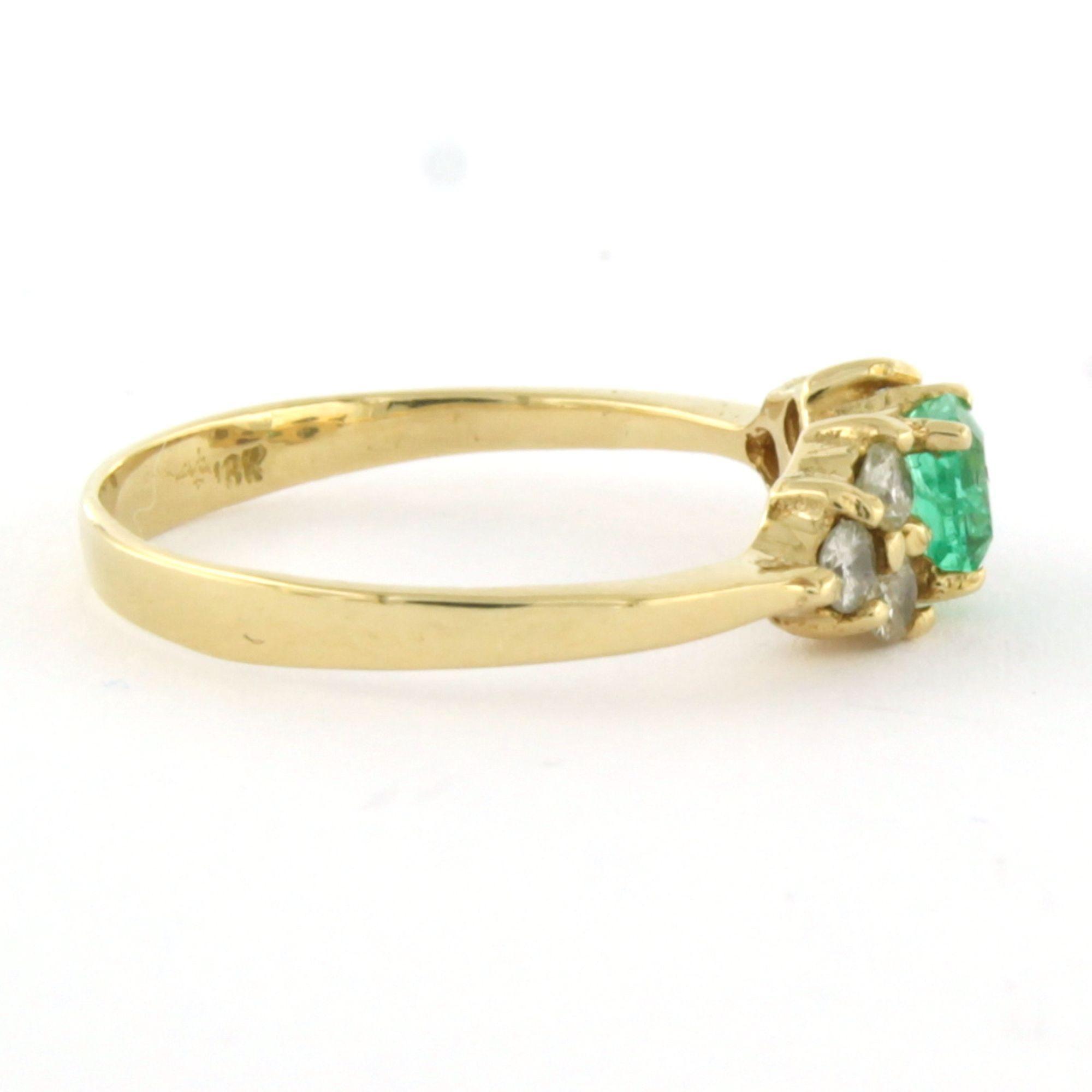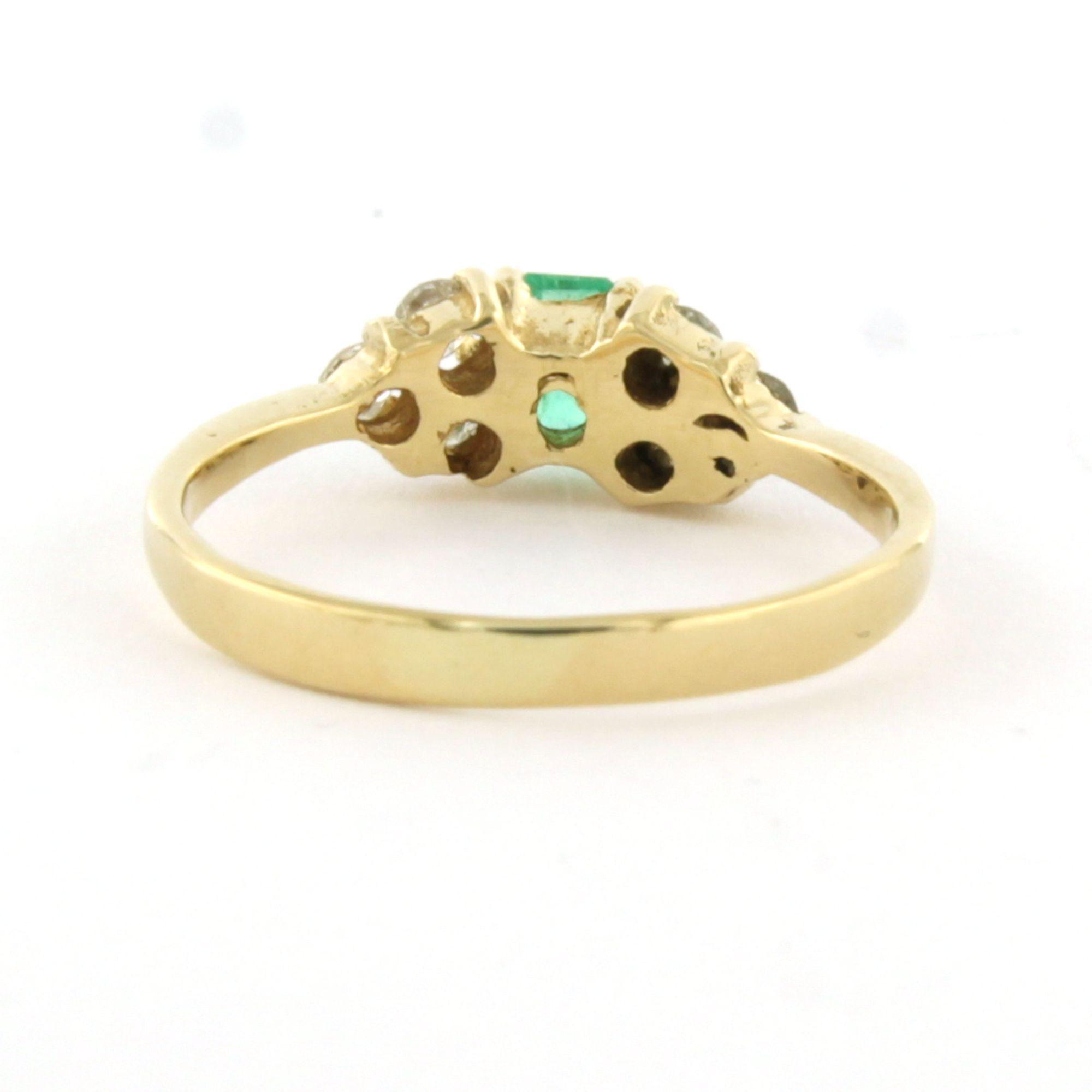 18 Kt. geelgouden ring bezet met smaragd en briljant geslepen diamant tot. 0.20 ct. - ringmaat 15.25(48)