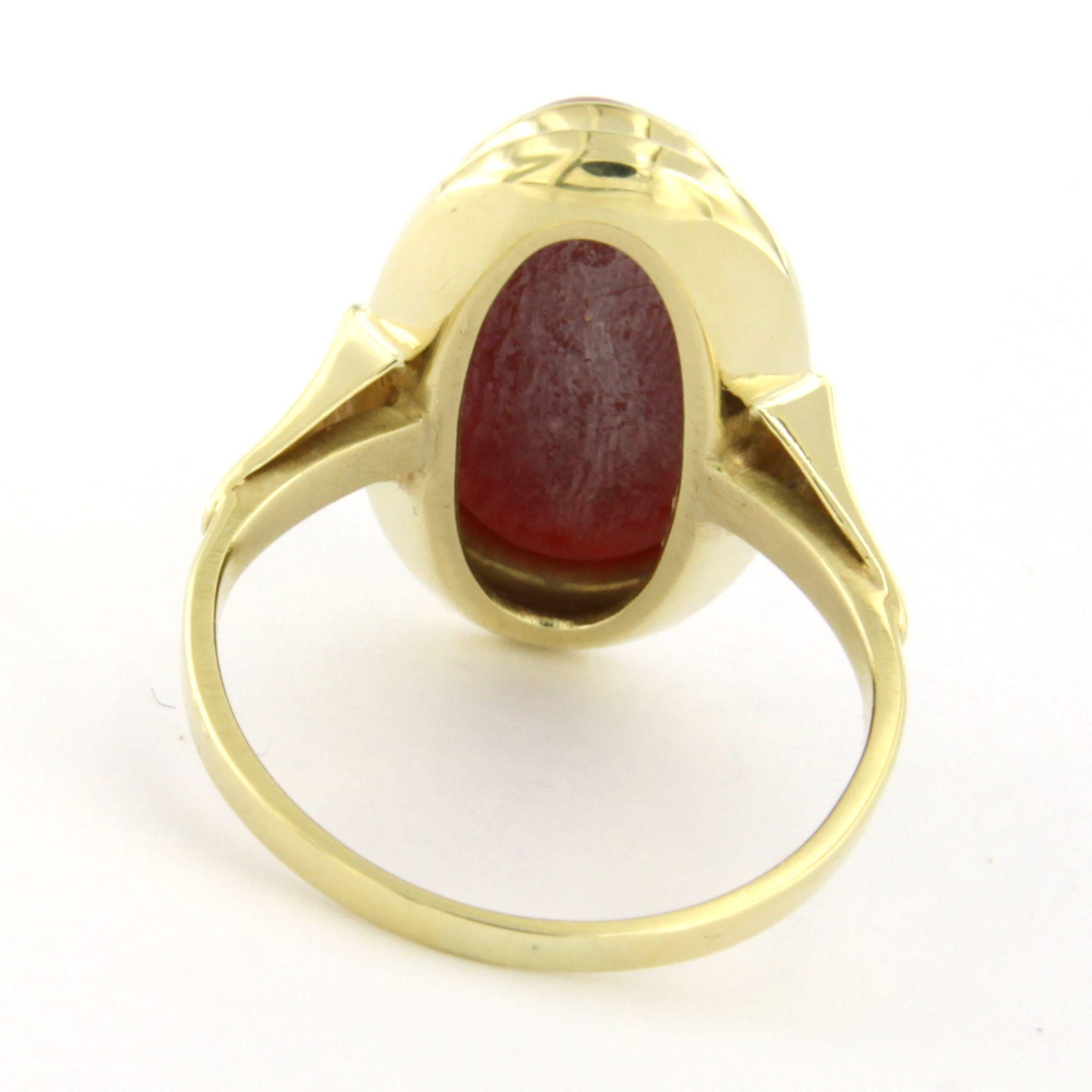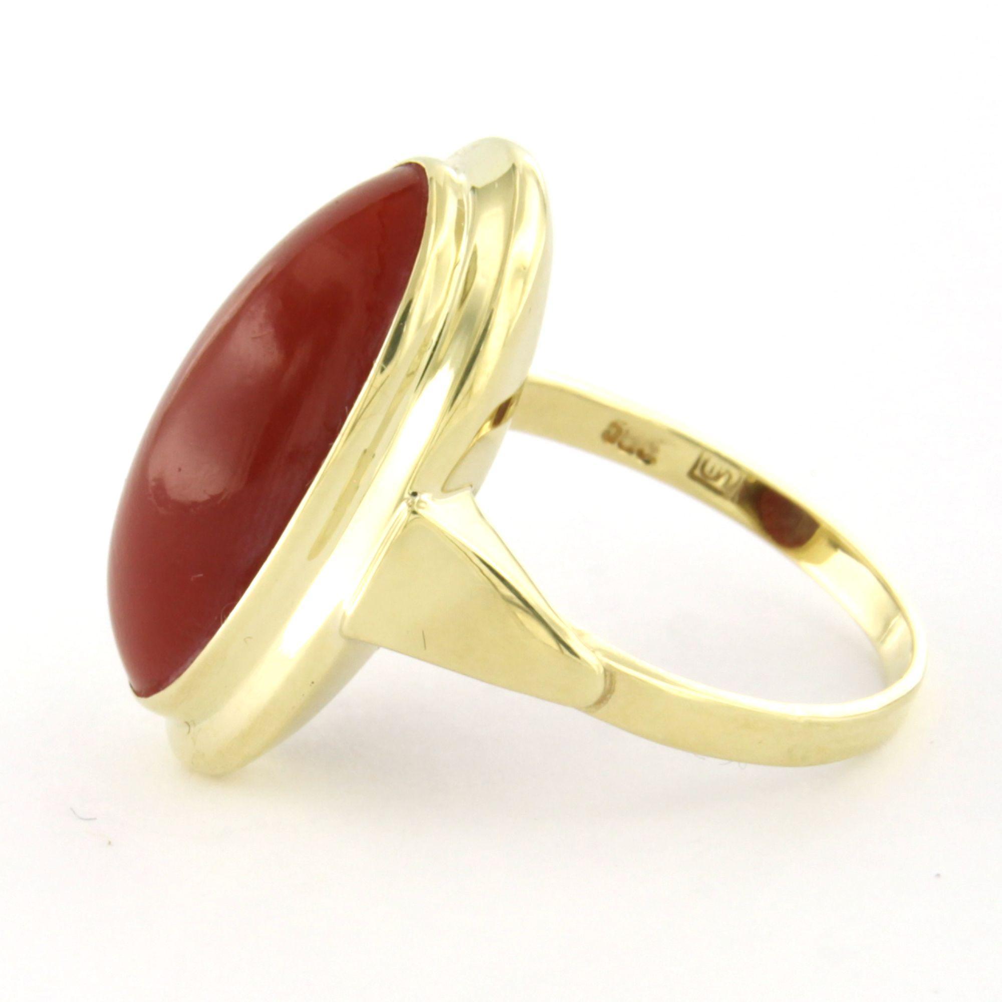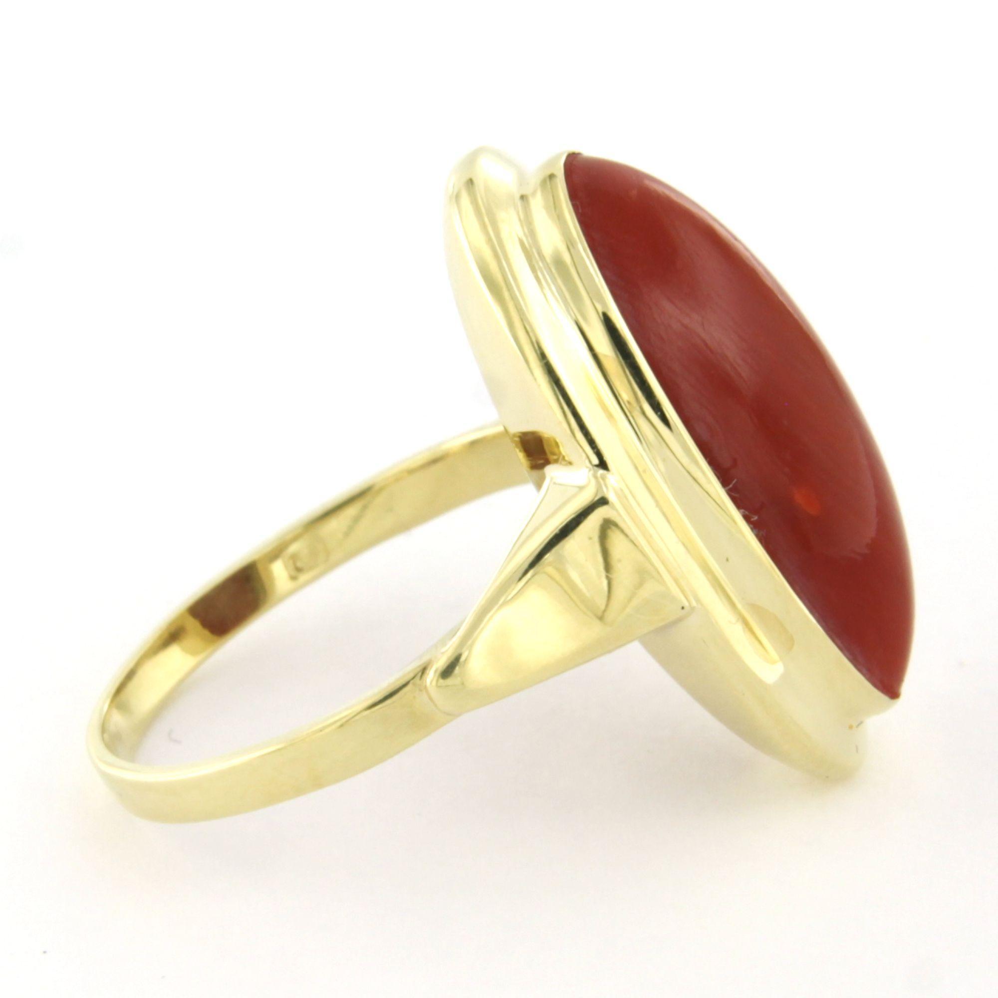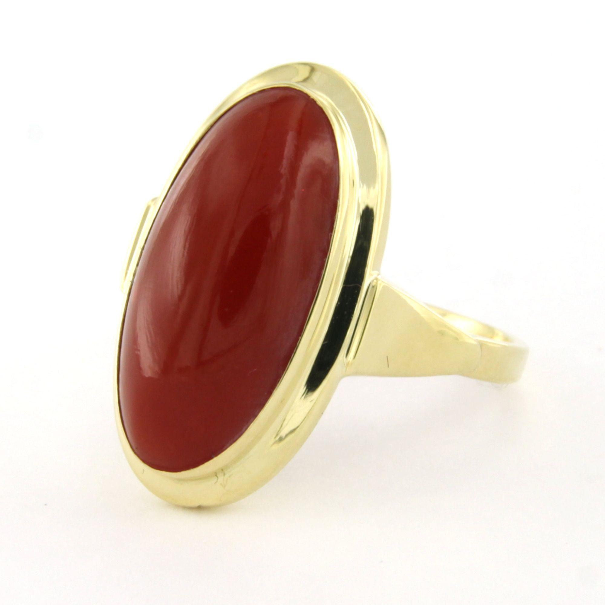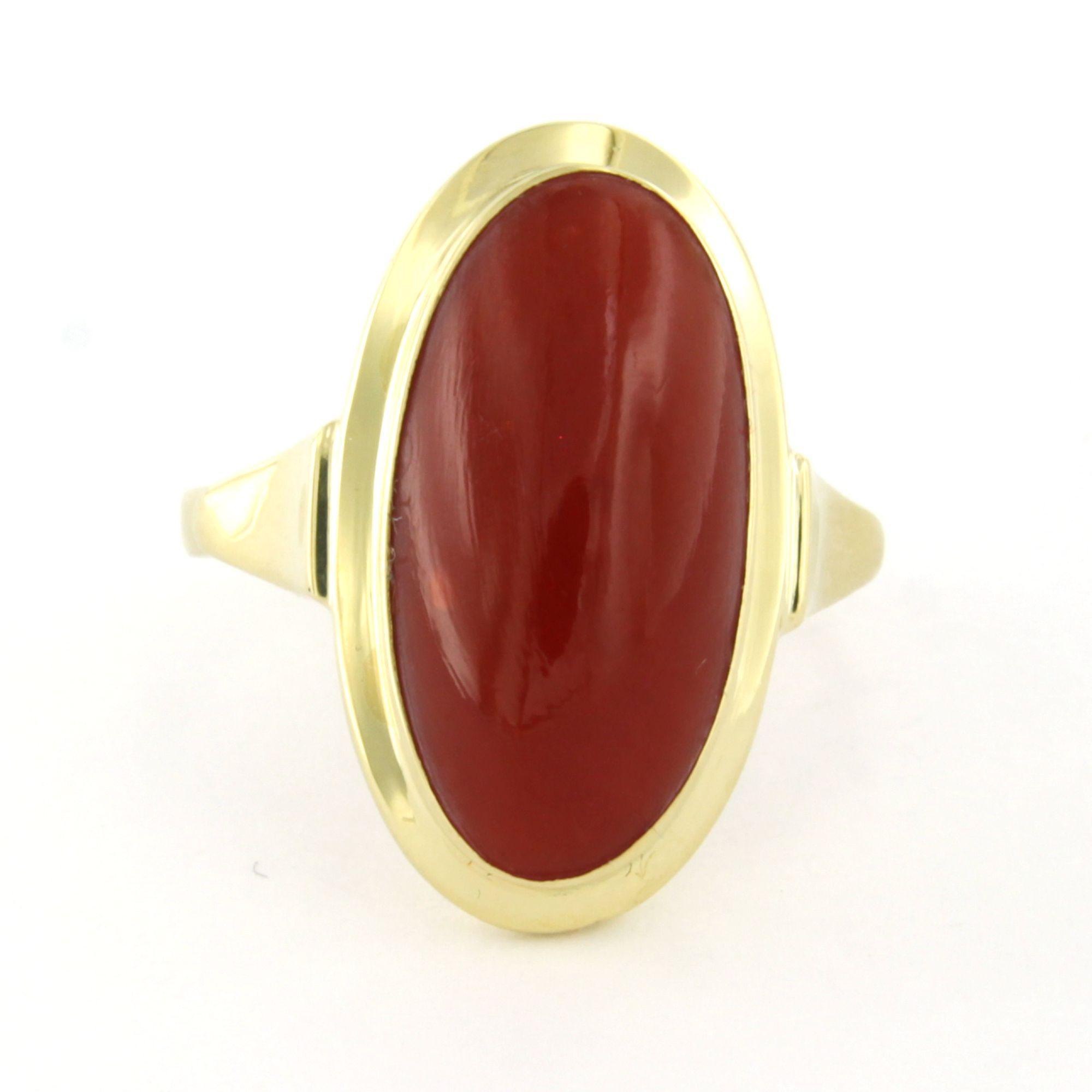 14 Kt. geelgouden ring bezet met koraal - 4.5 gram - ringmaat 17.25(54)