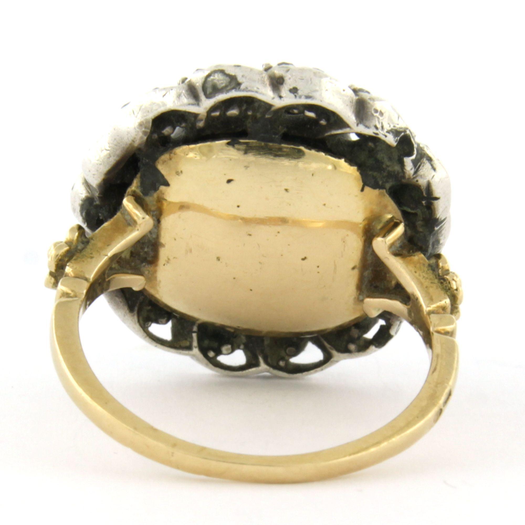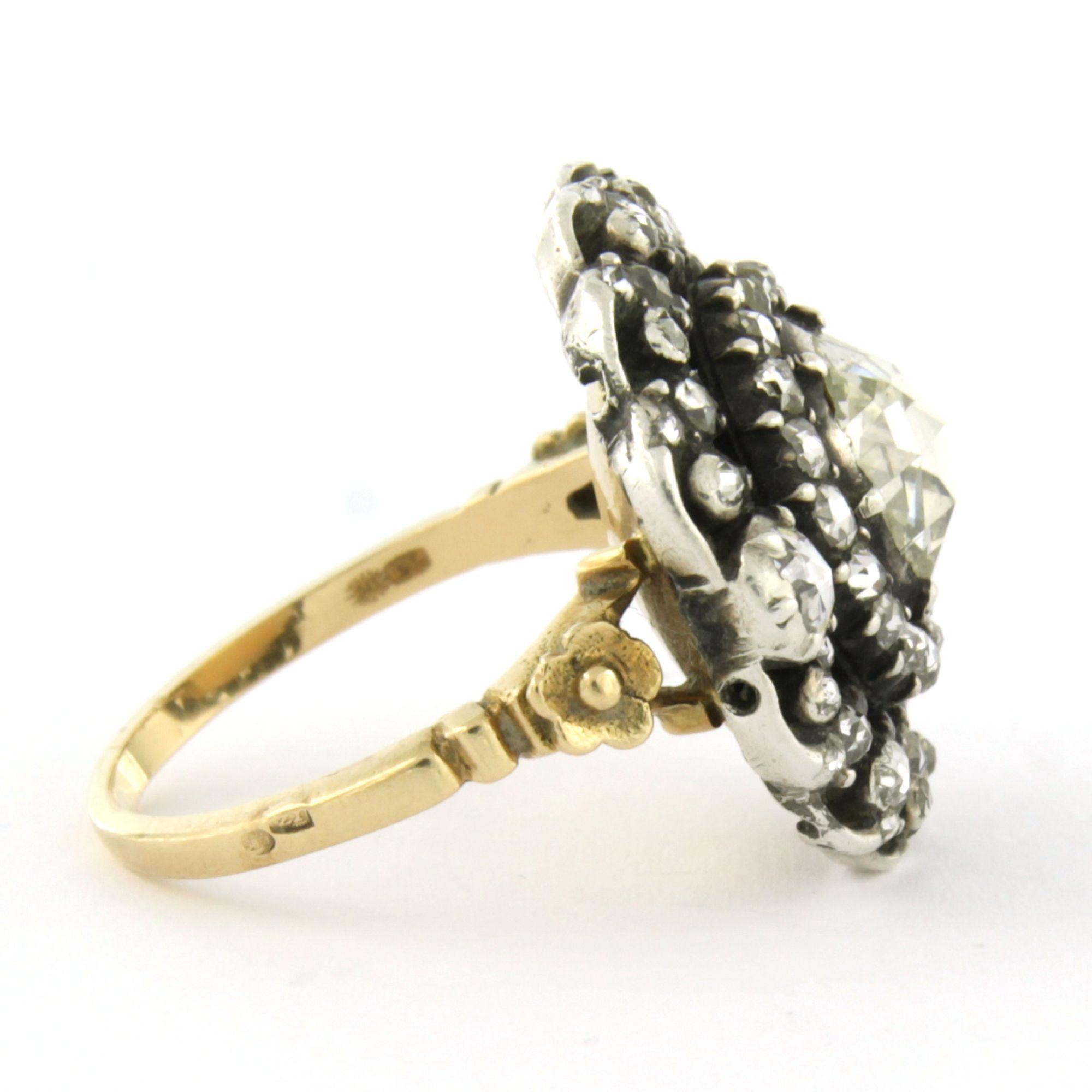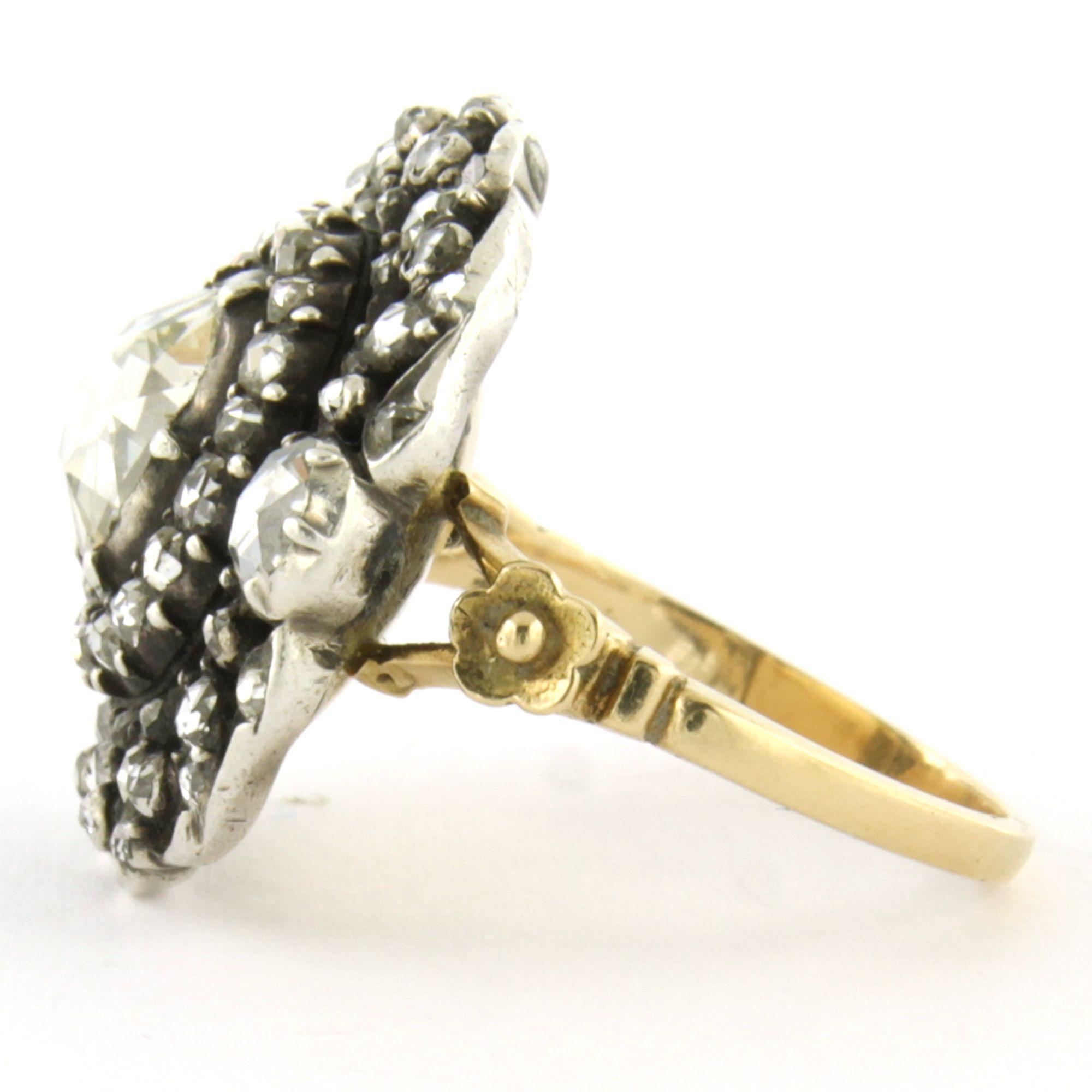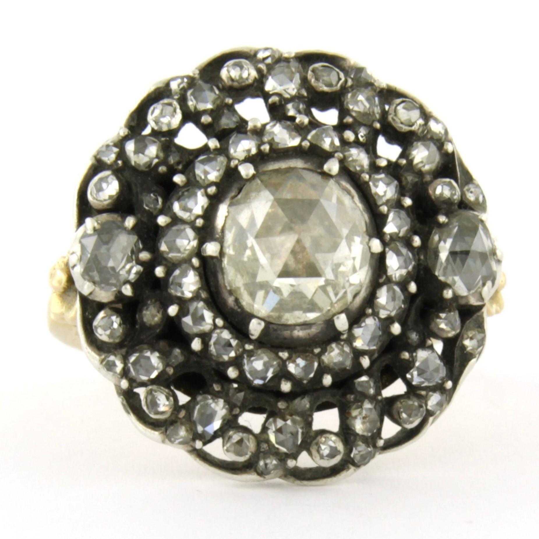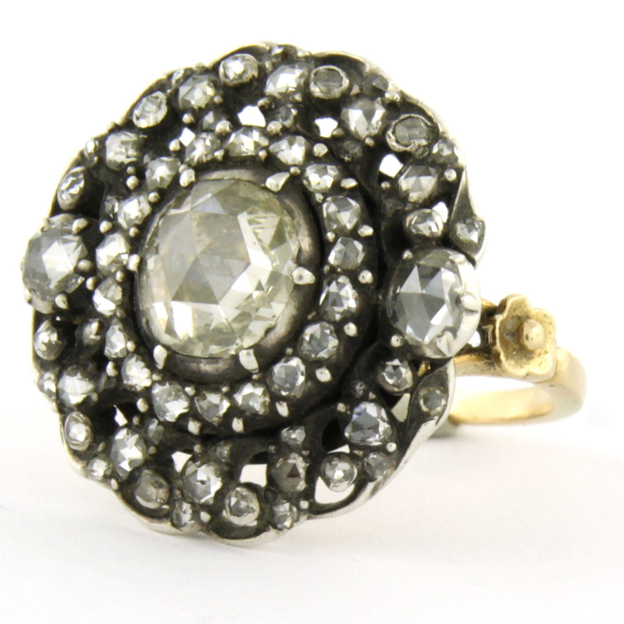 14 Kt. geelgouden met zilveren ring bezet met roosdiamanten tot. 1.80 ct. - ringmaat 17.5(55)