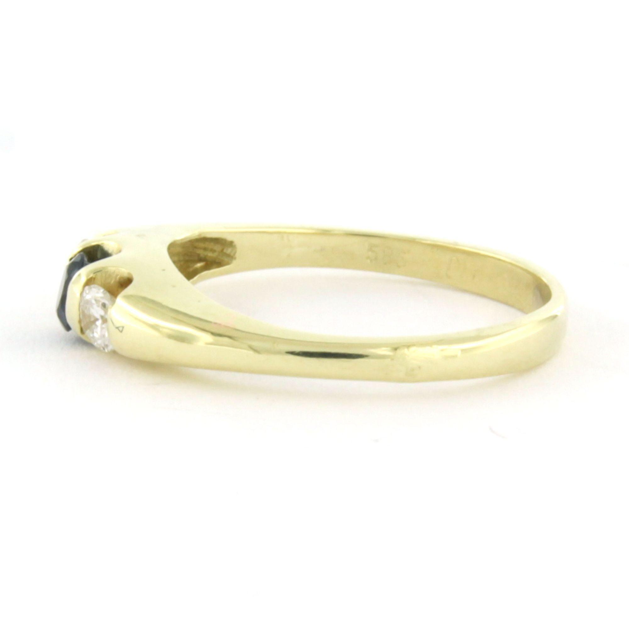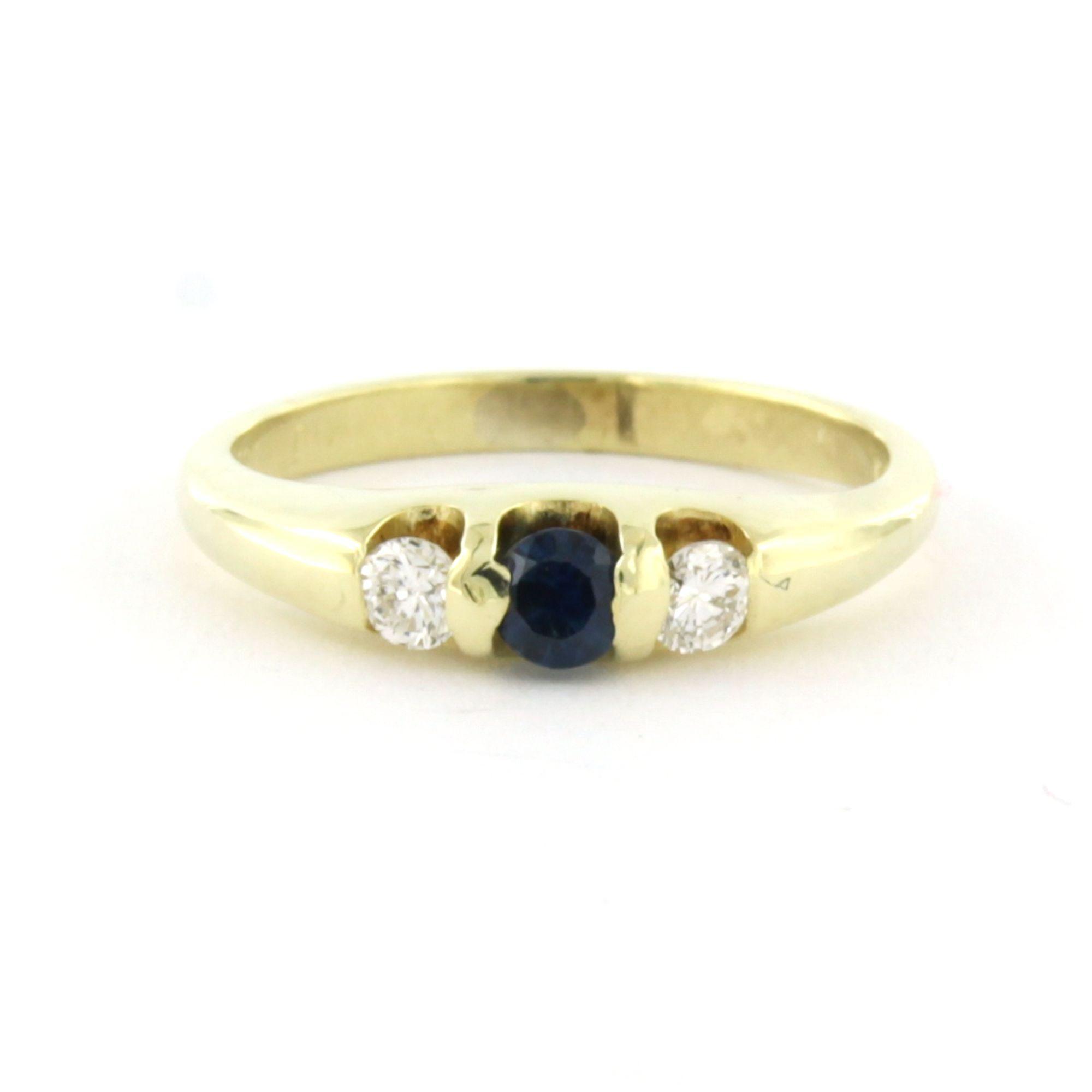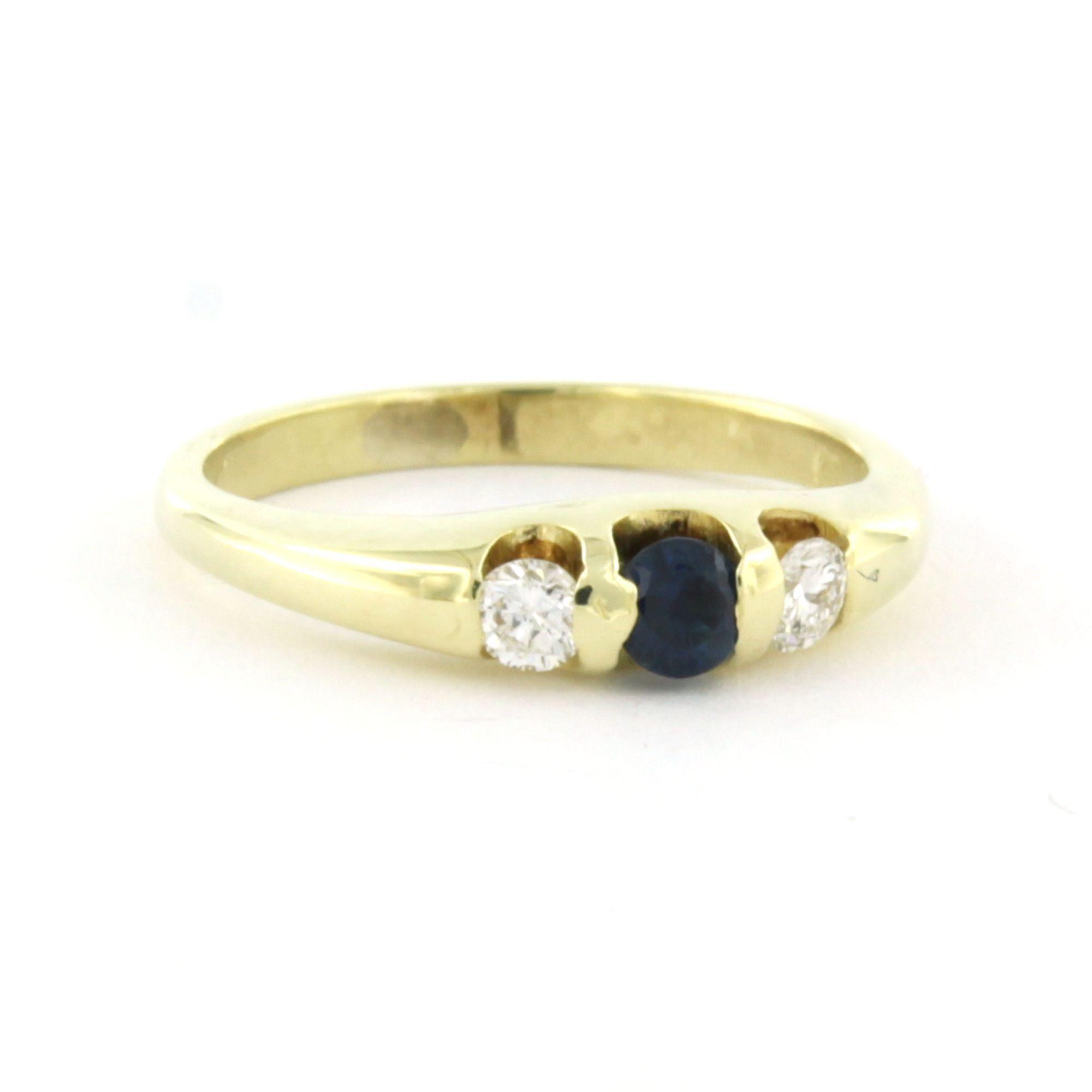 14 Kt. geelgouden ring bezet met saffier en briljant geslepen diamant tot. 0.16 ct. - ringmaat 15(47)