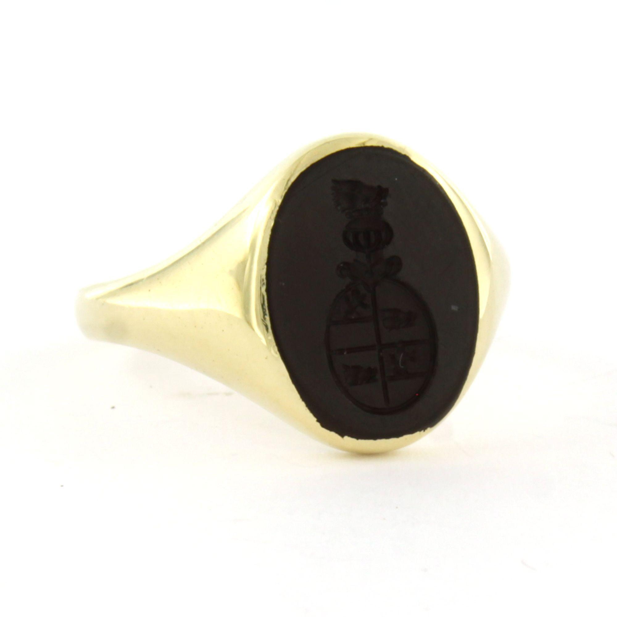14 Kt. geelgouden ring bezet met carneool - 5.7 gram - ringmaat 19(60)