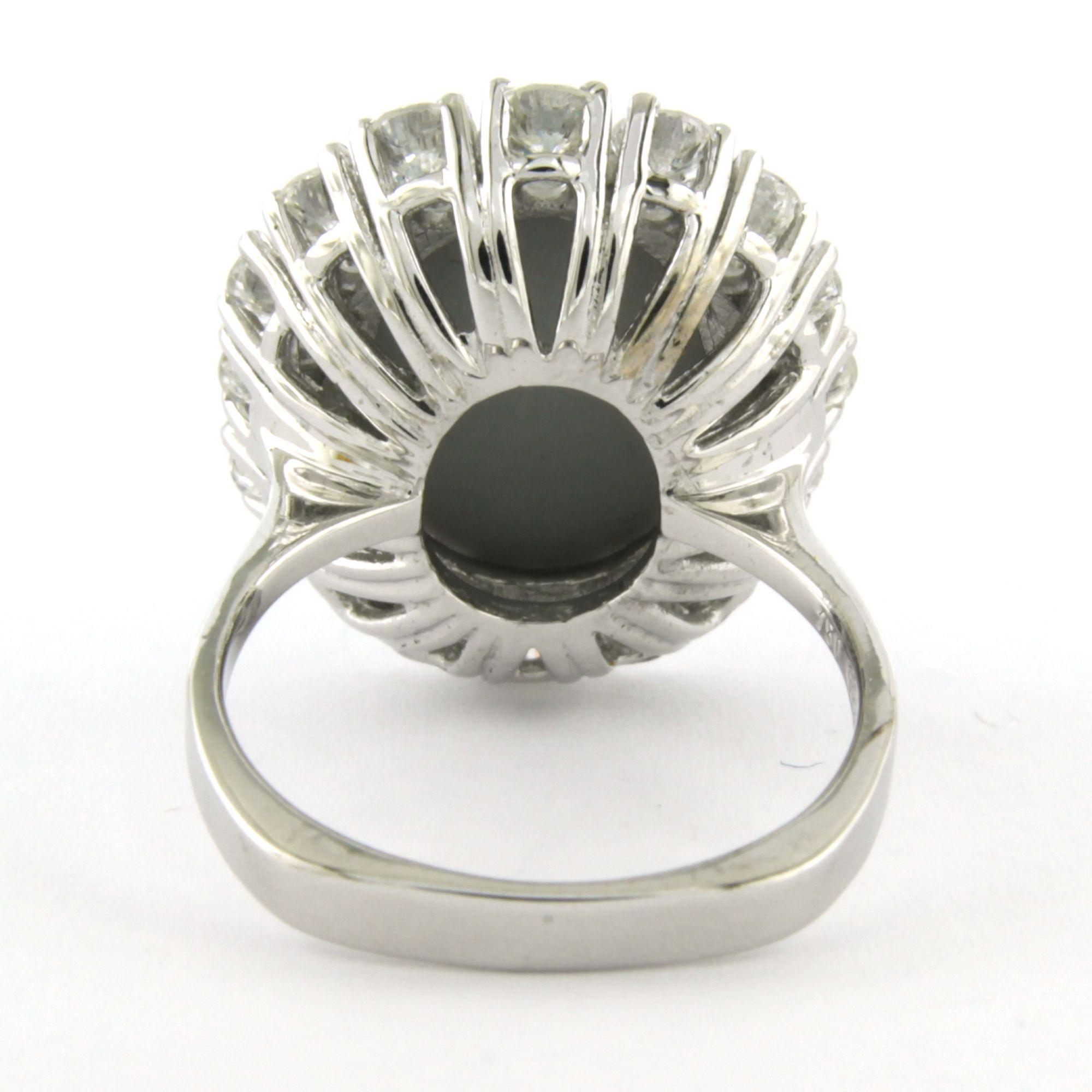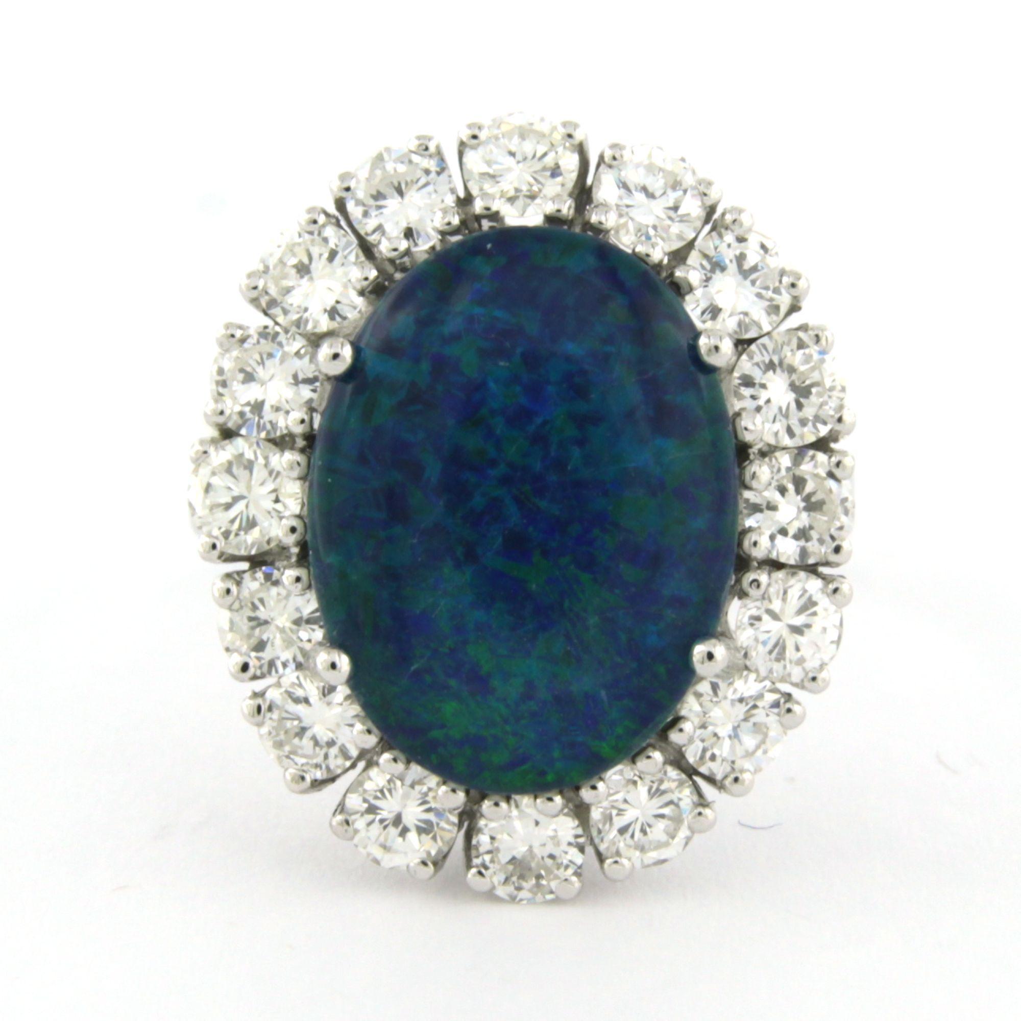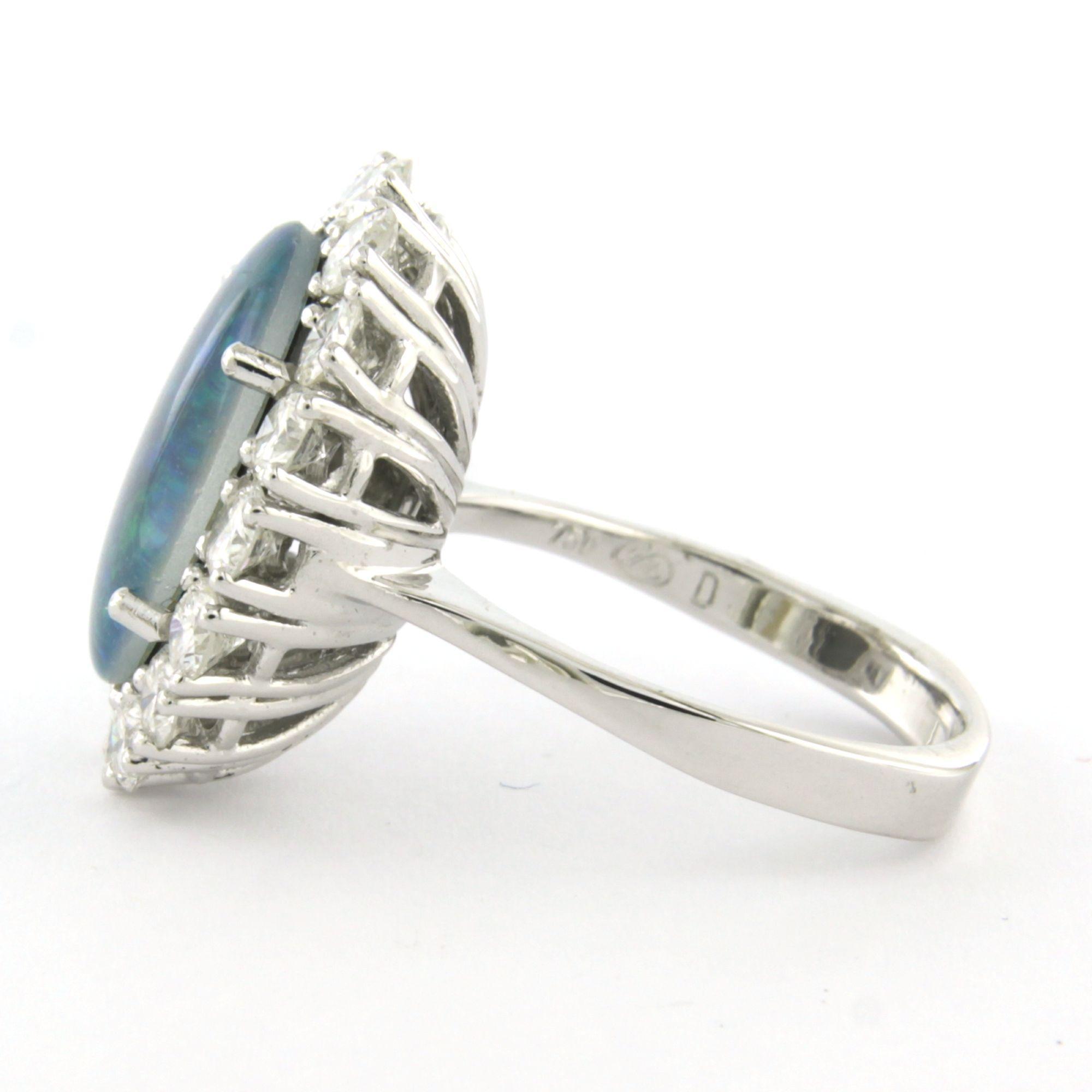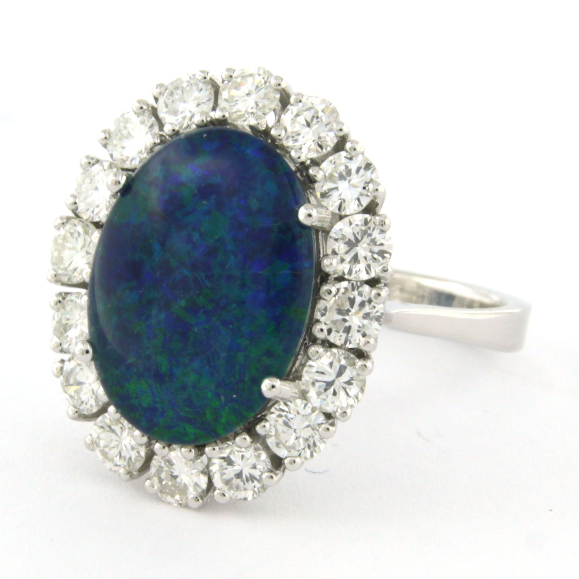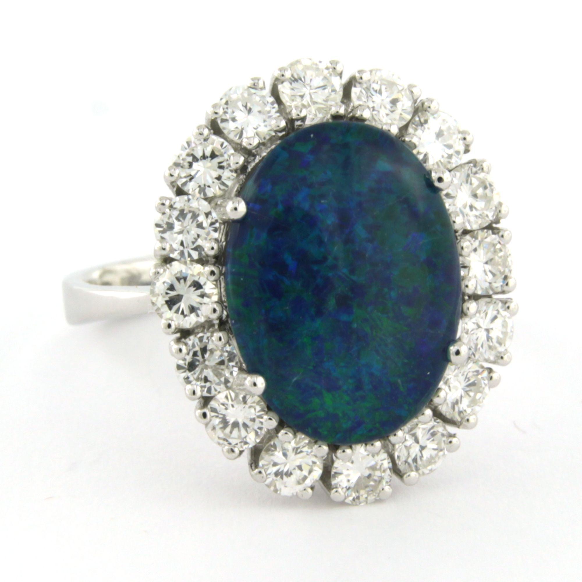 18 Kt. witgouden ring met opaal en briljant geslepen diamant tot. 2.00 ct. - ringmaat 17.5(55)