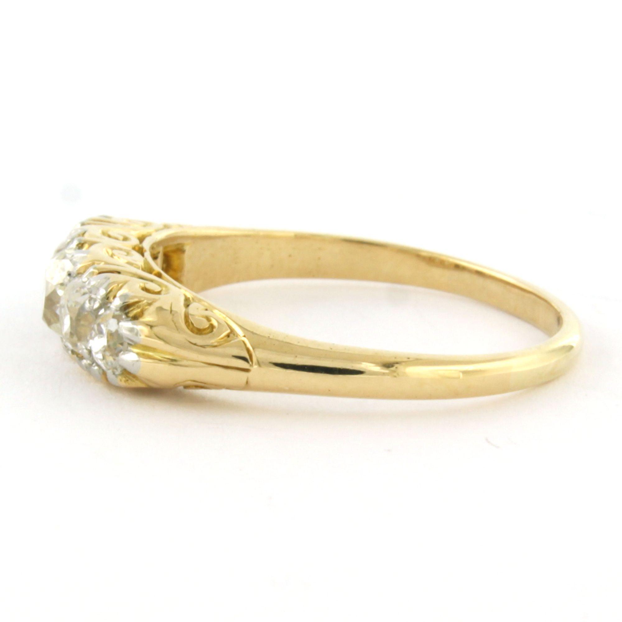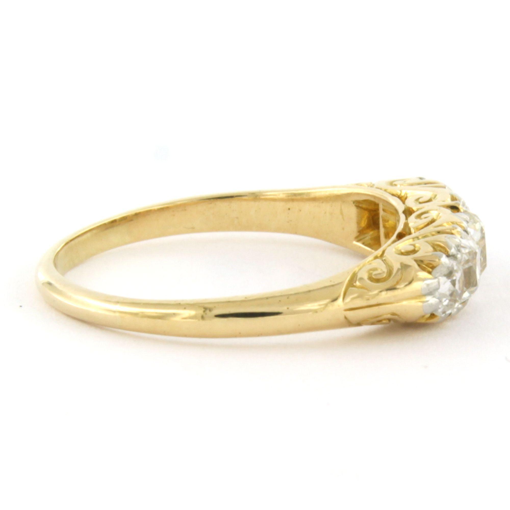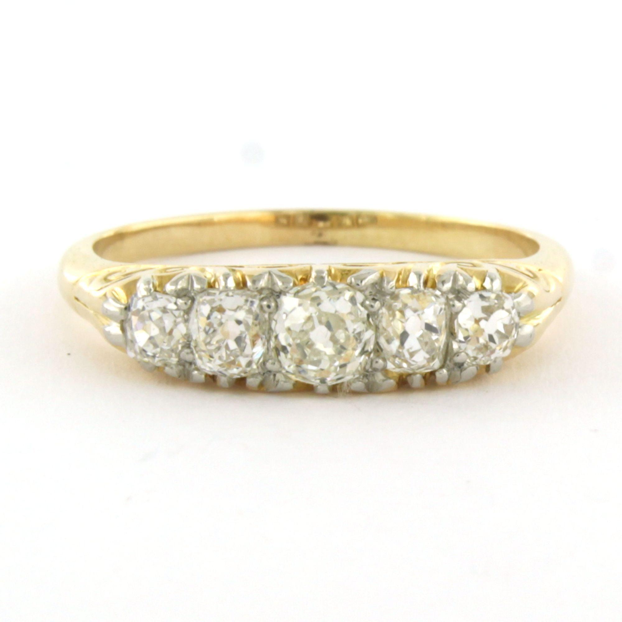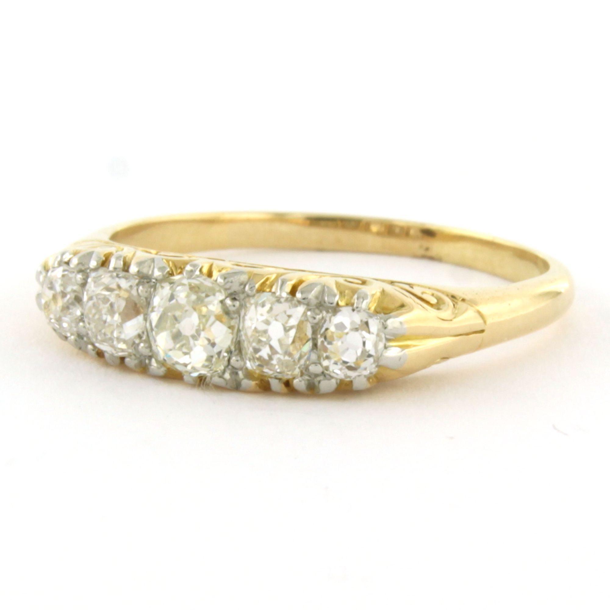18 Kt. geelgouden met platina ring bezet met Bolsjewiek geslepen diamanten tot. 1.00 ct. - ringmaat 19.25(61)