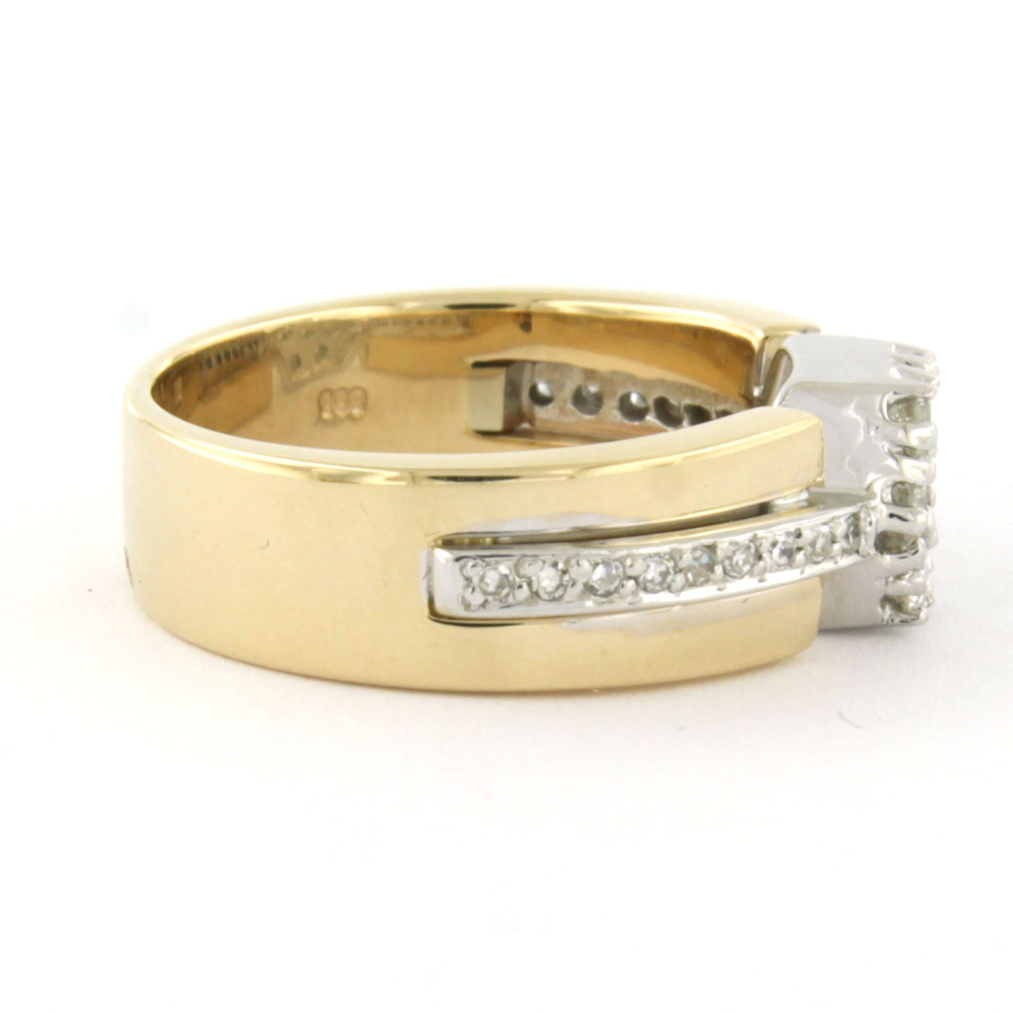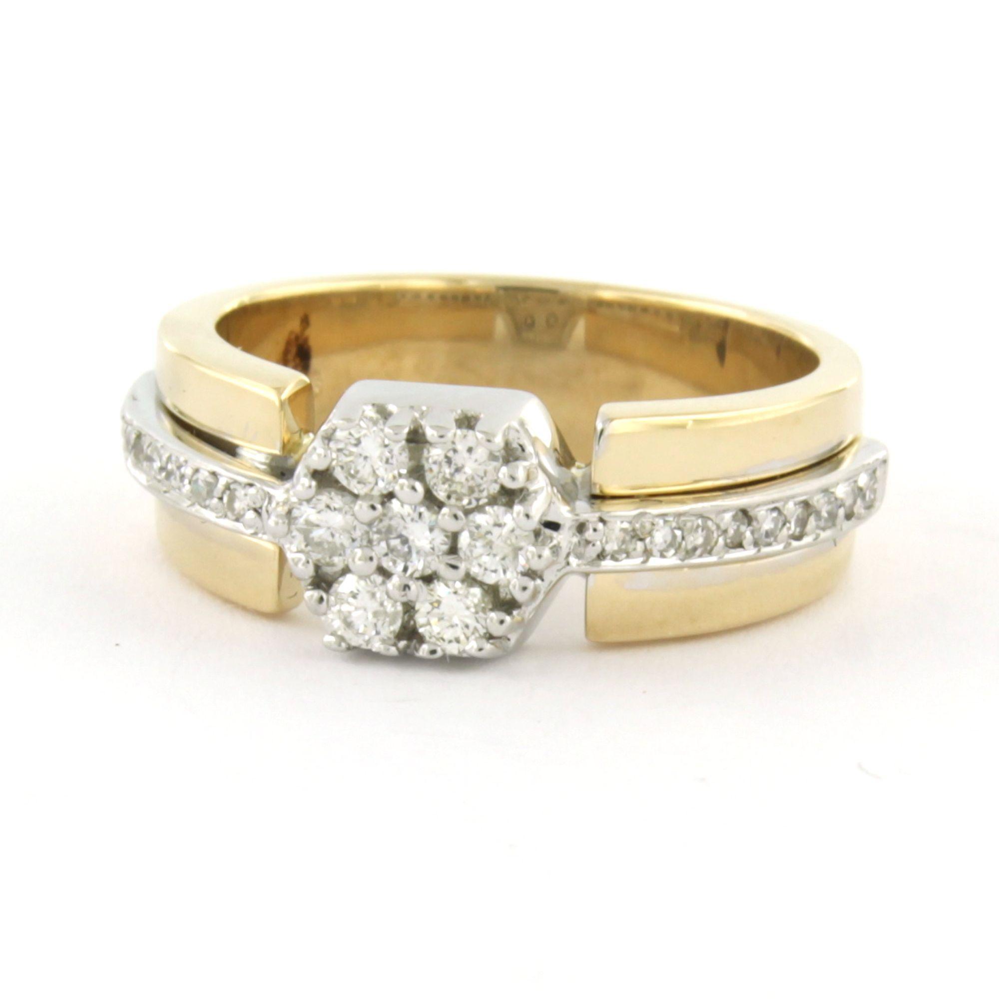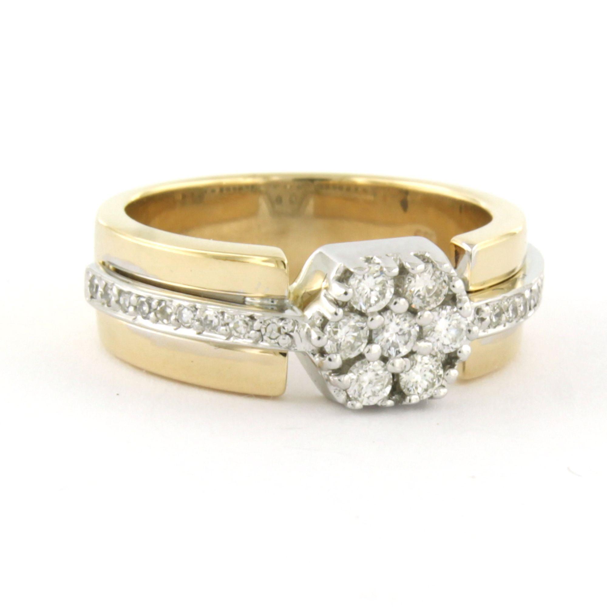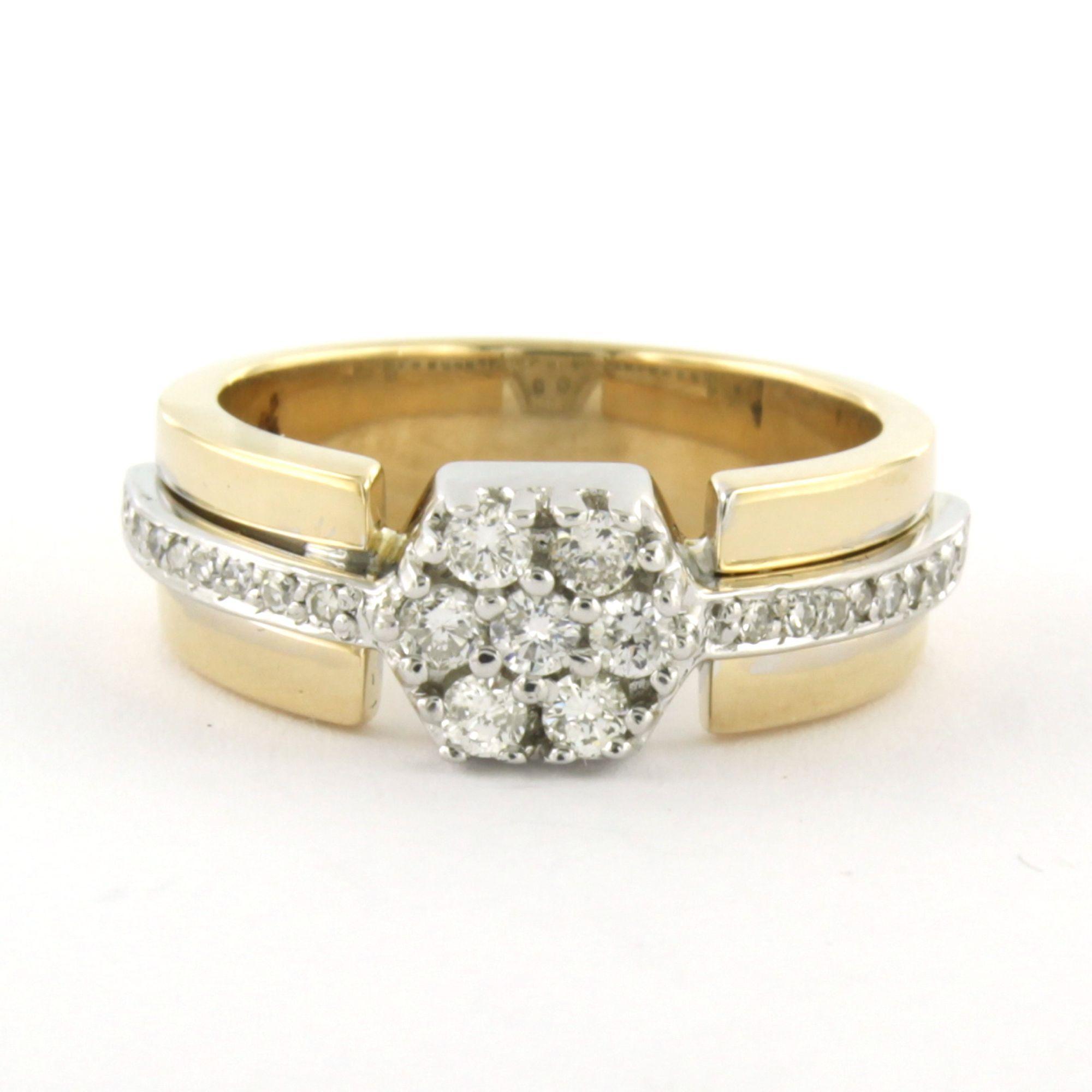 14 Kt. bicolor gouden ring bezet met briljant geslepen diamant tot. 0.50 ct. - ringmaat 17.25(54)