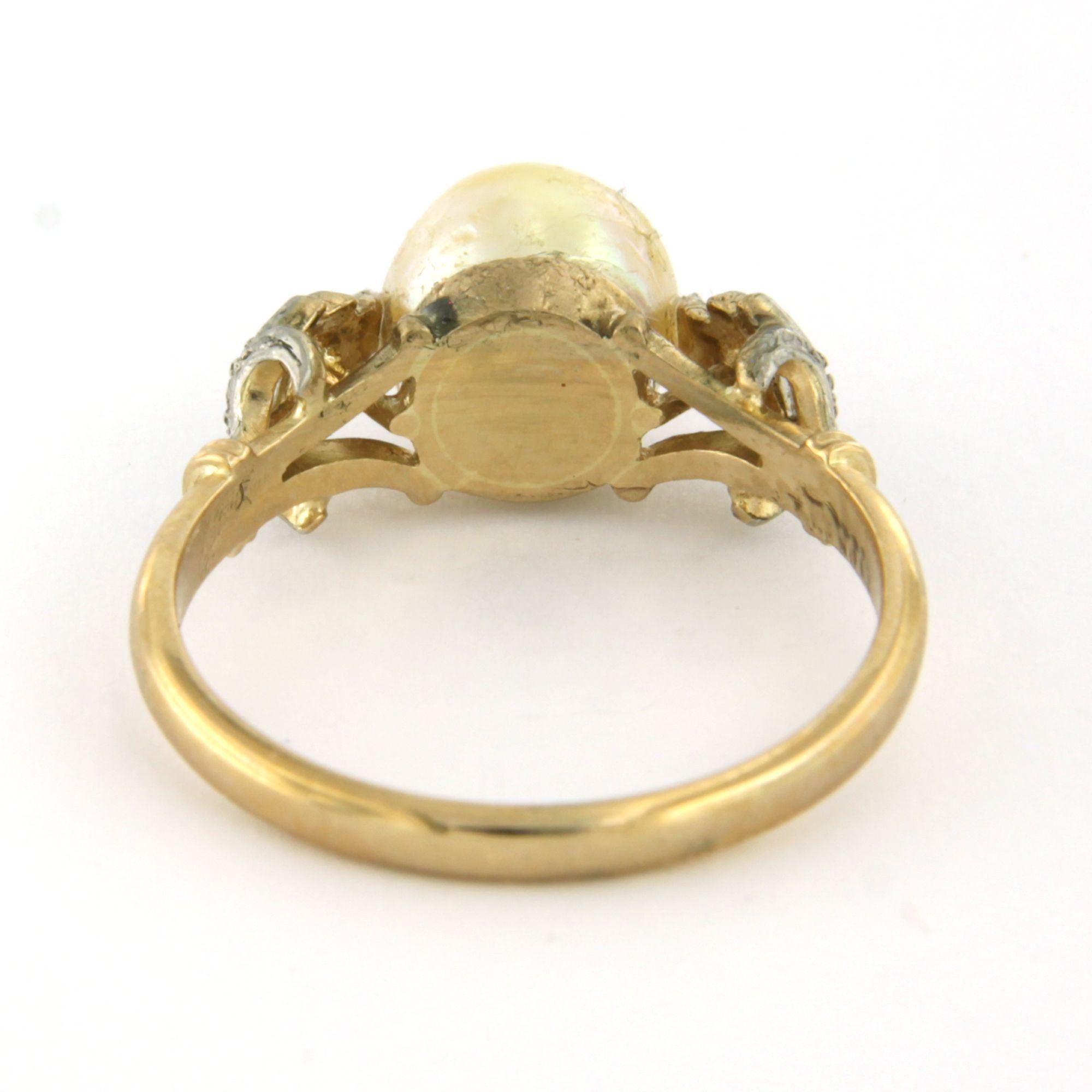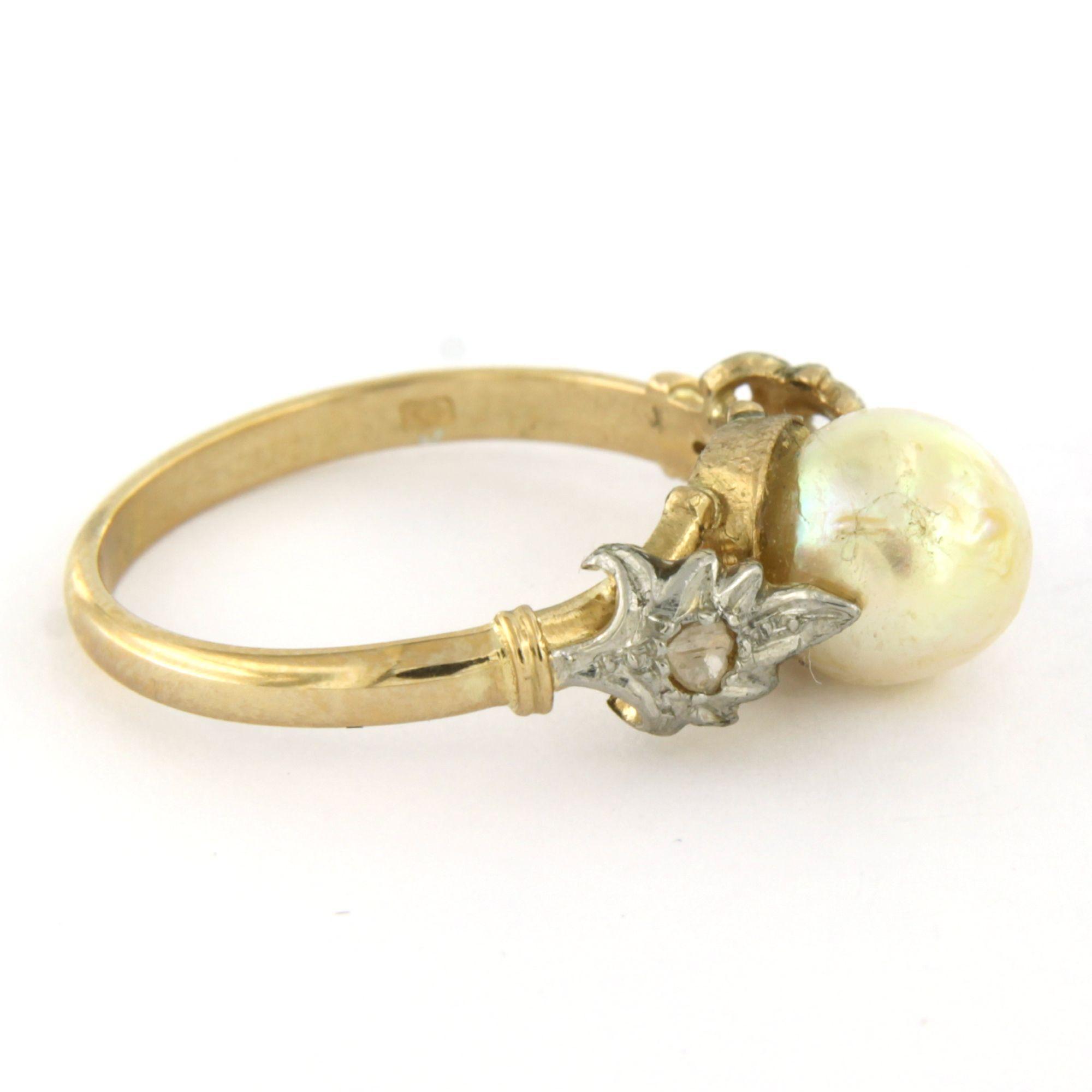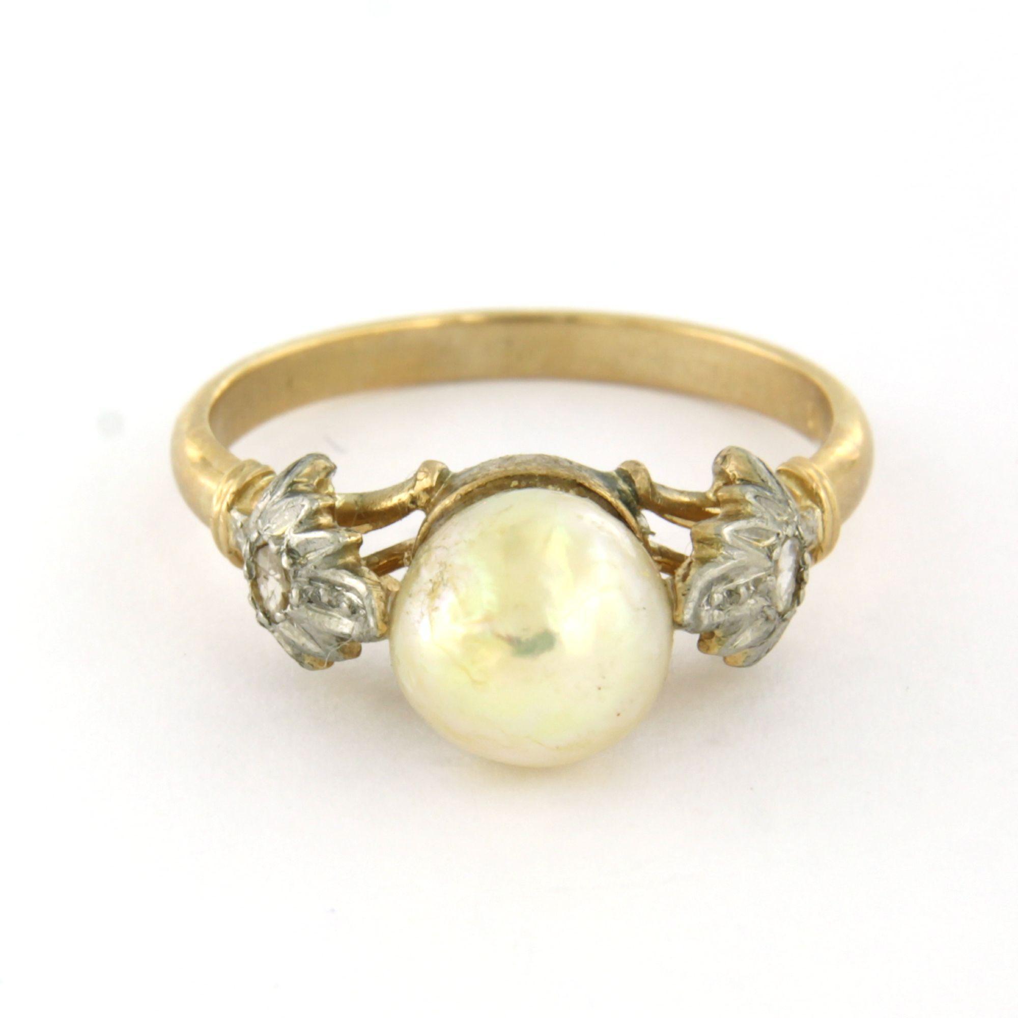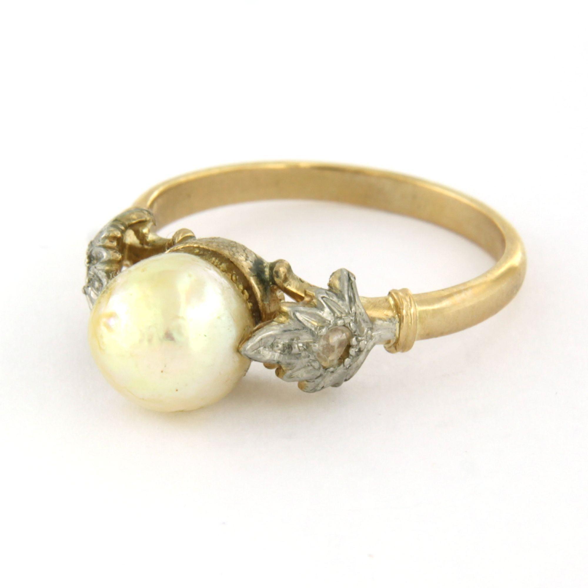 14 Kt. bicolor gouden ring bezet met parel en roosgeslepen diamant tot. 0.02 ct. – G/H - SI - ringmaat 17(53)