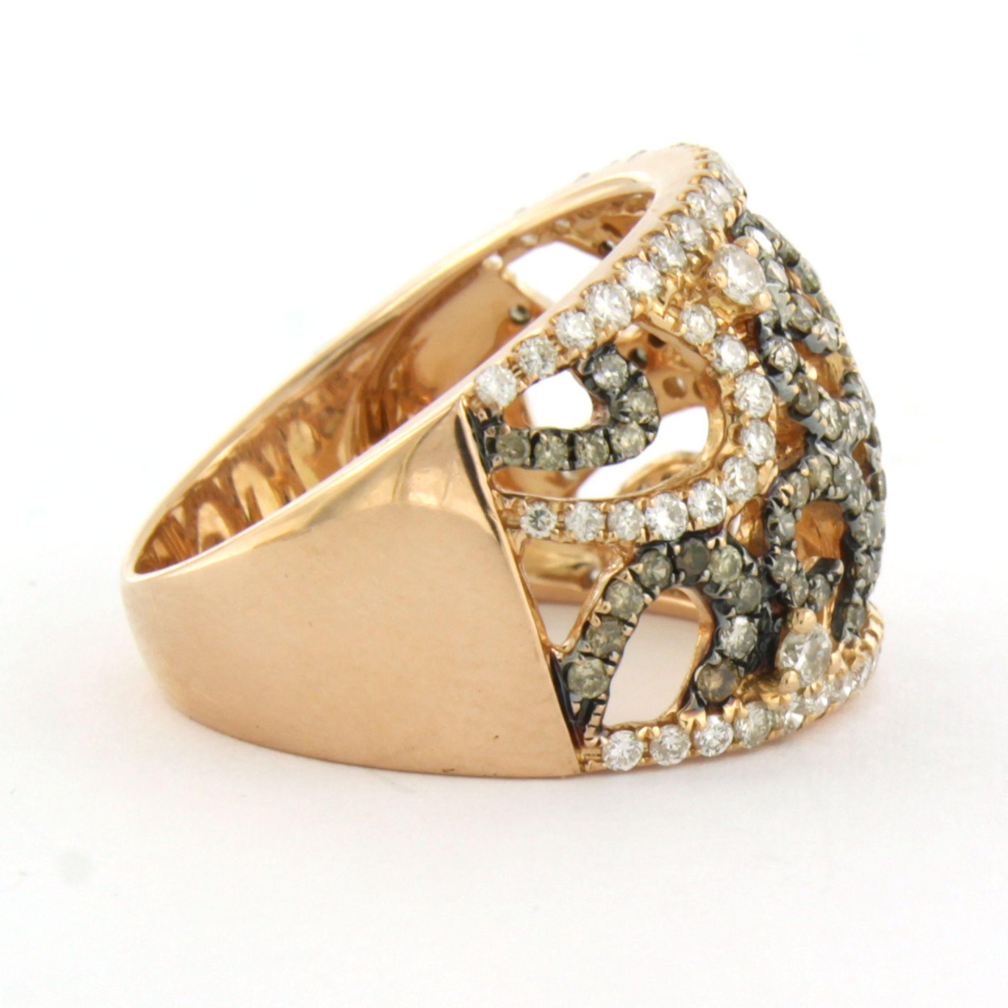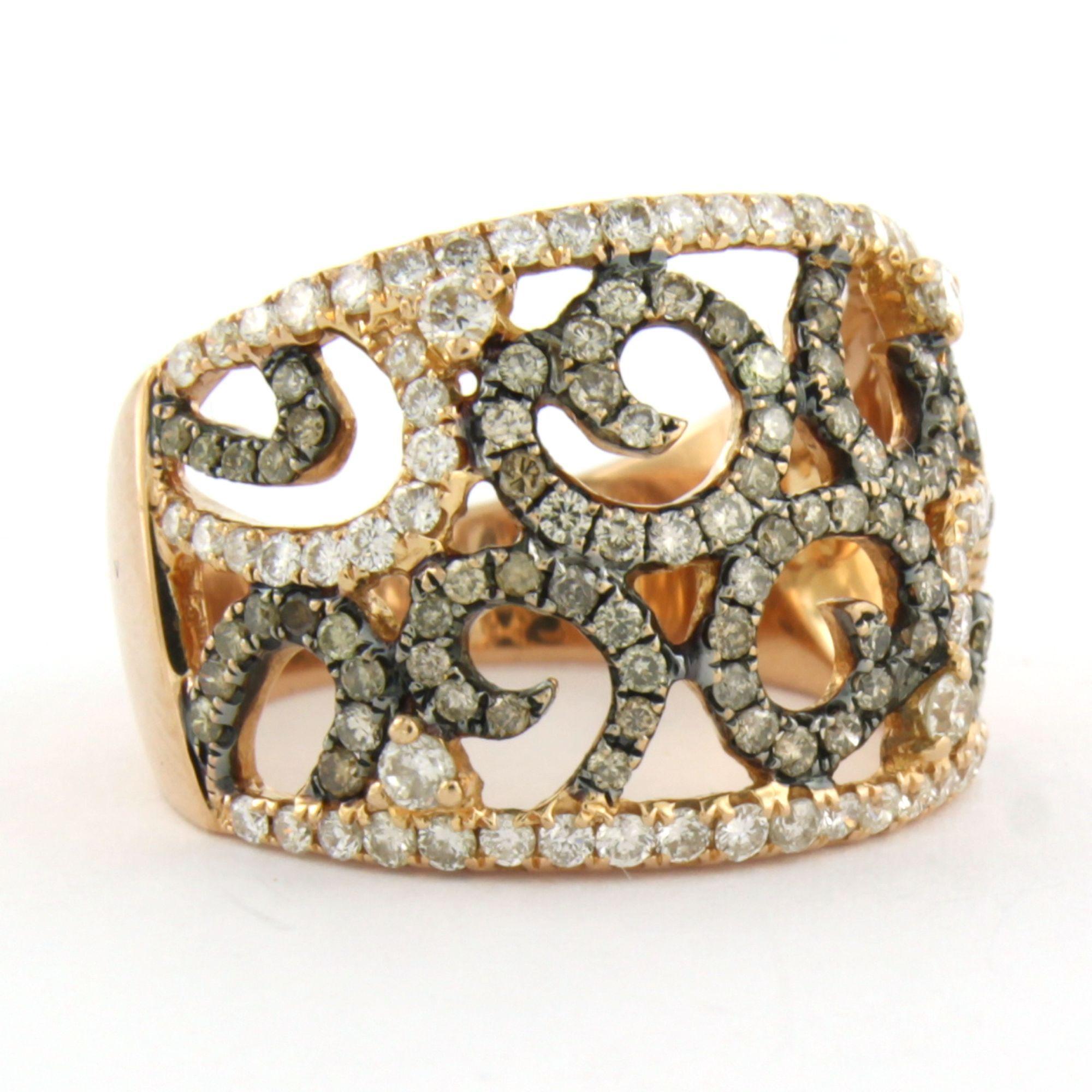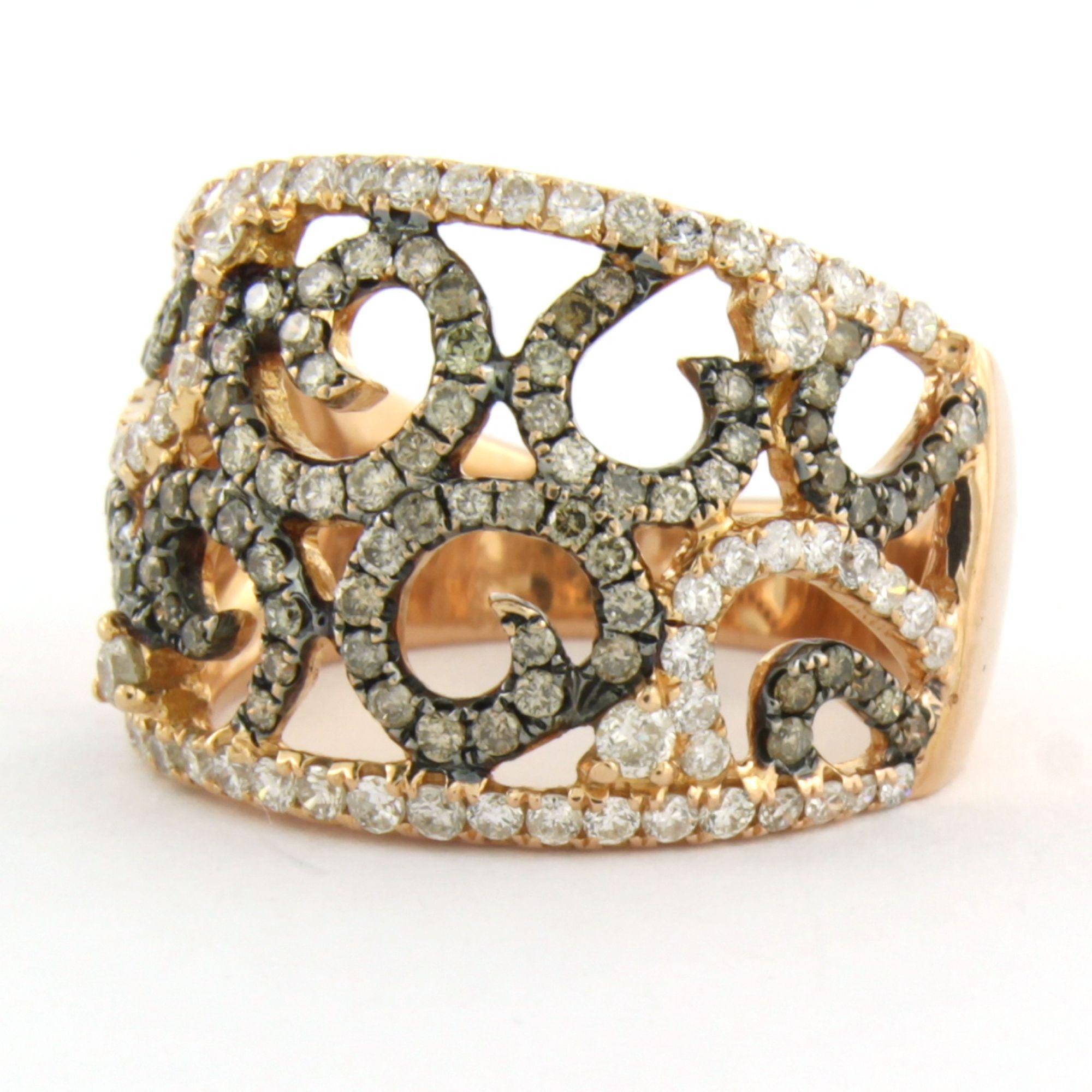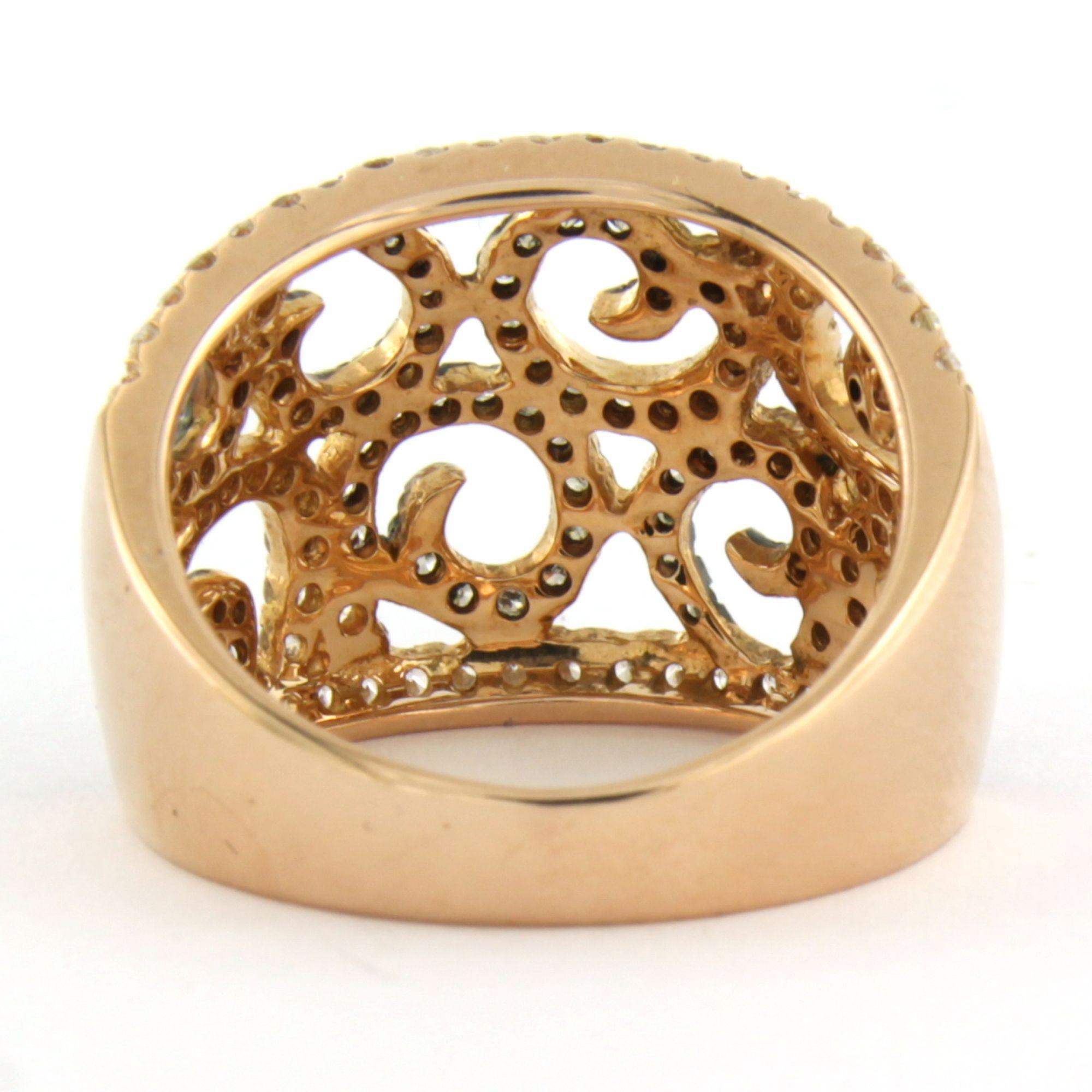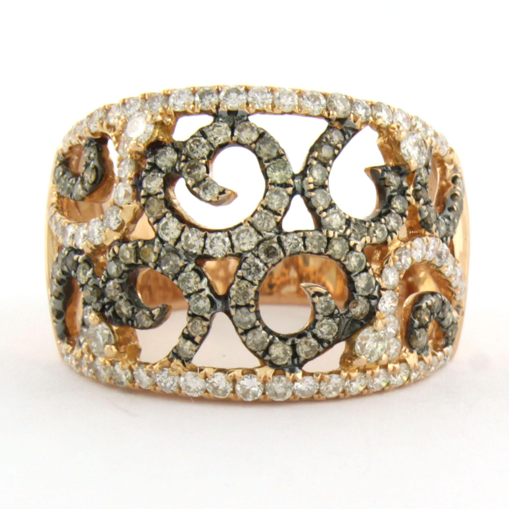 18 Kt. roségouden ring met briljant geslepen diamant tot. 1.41 ct. – F/G, N/O - VS/SI - ringmaat 17.5(55)