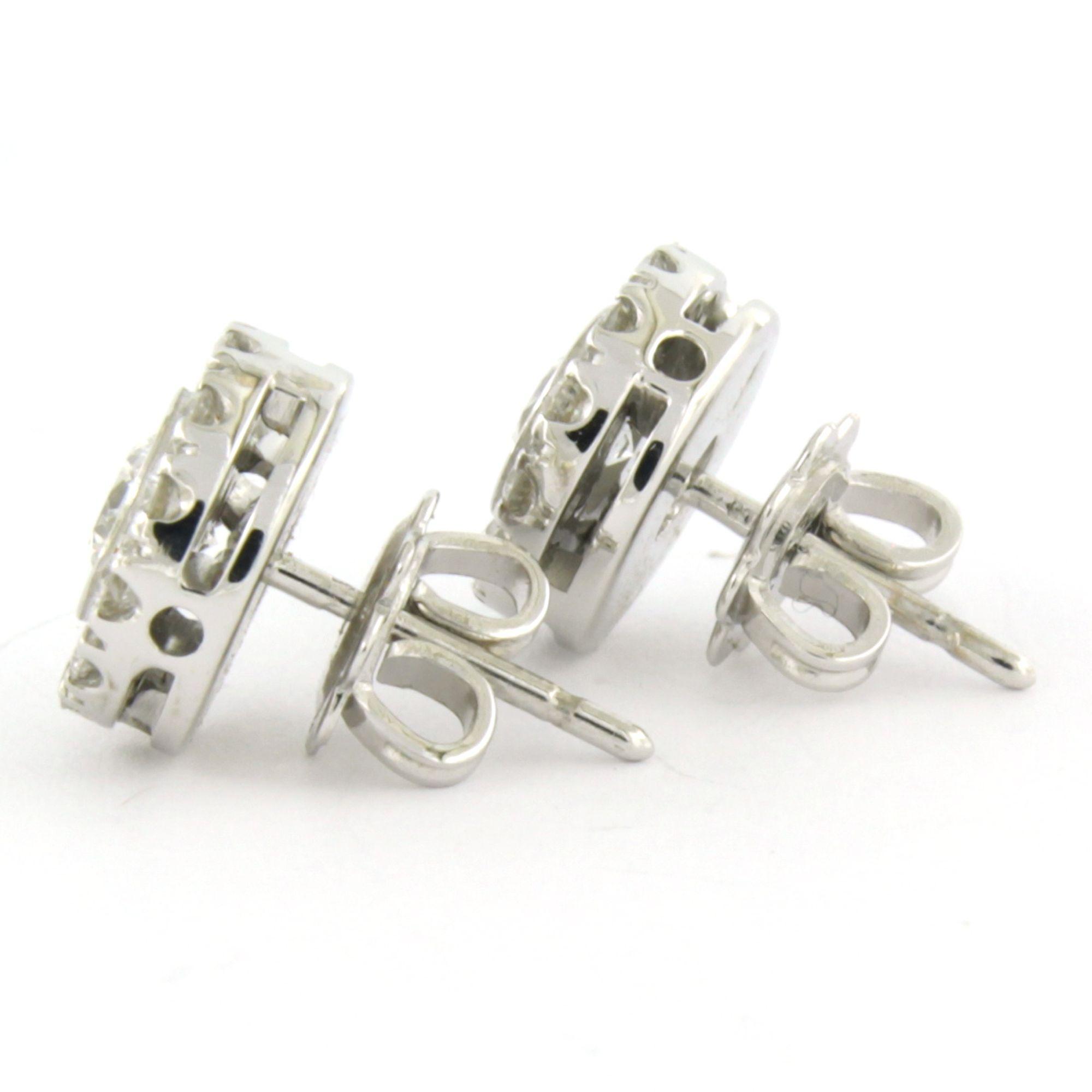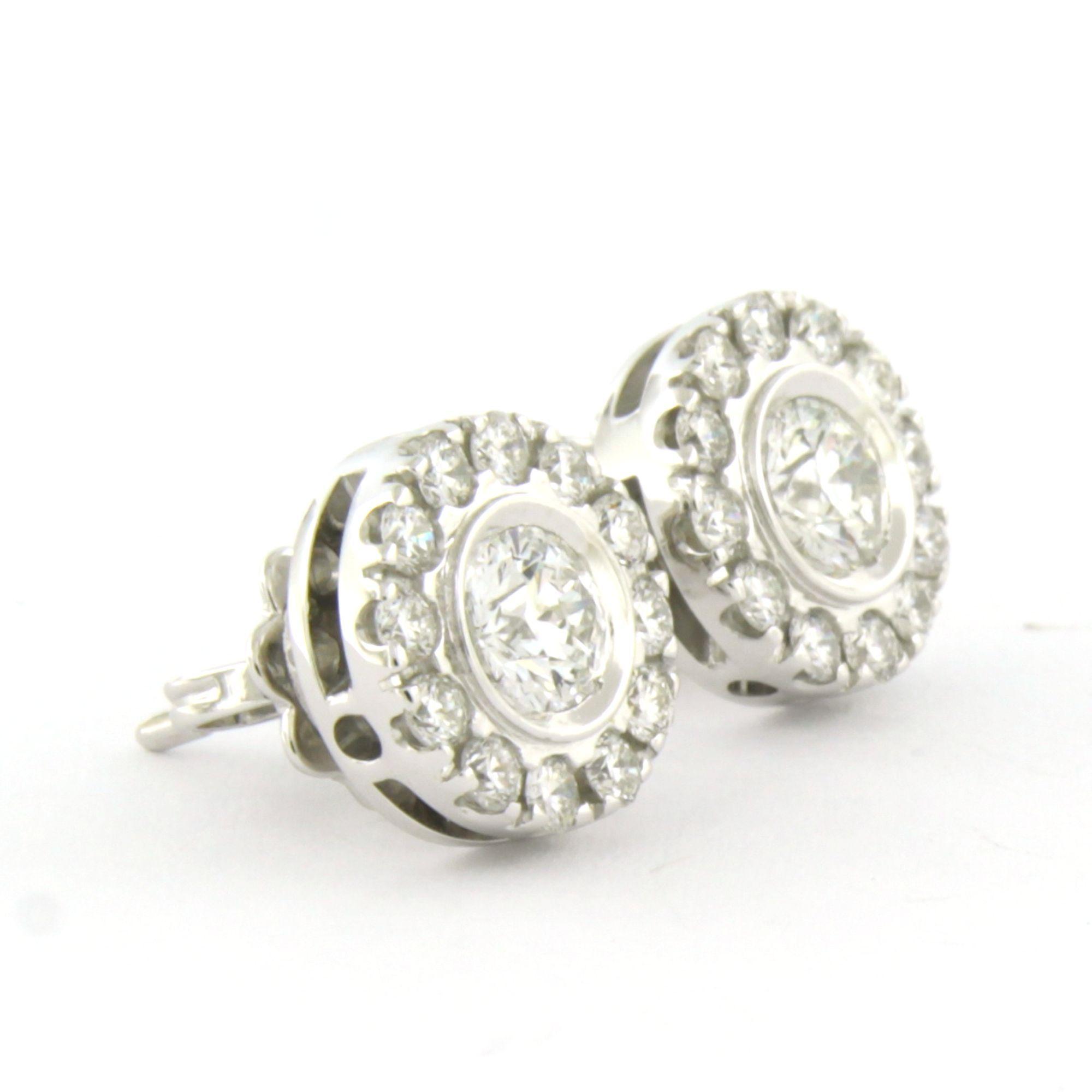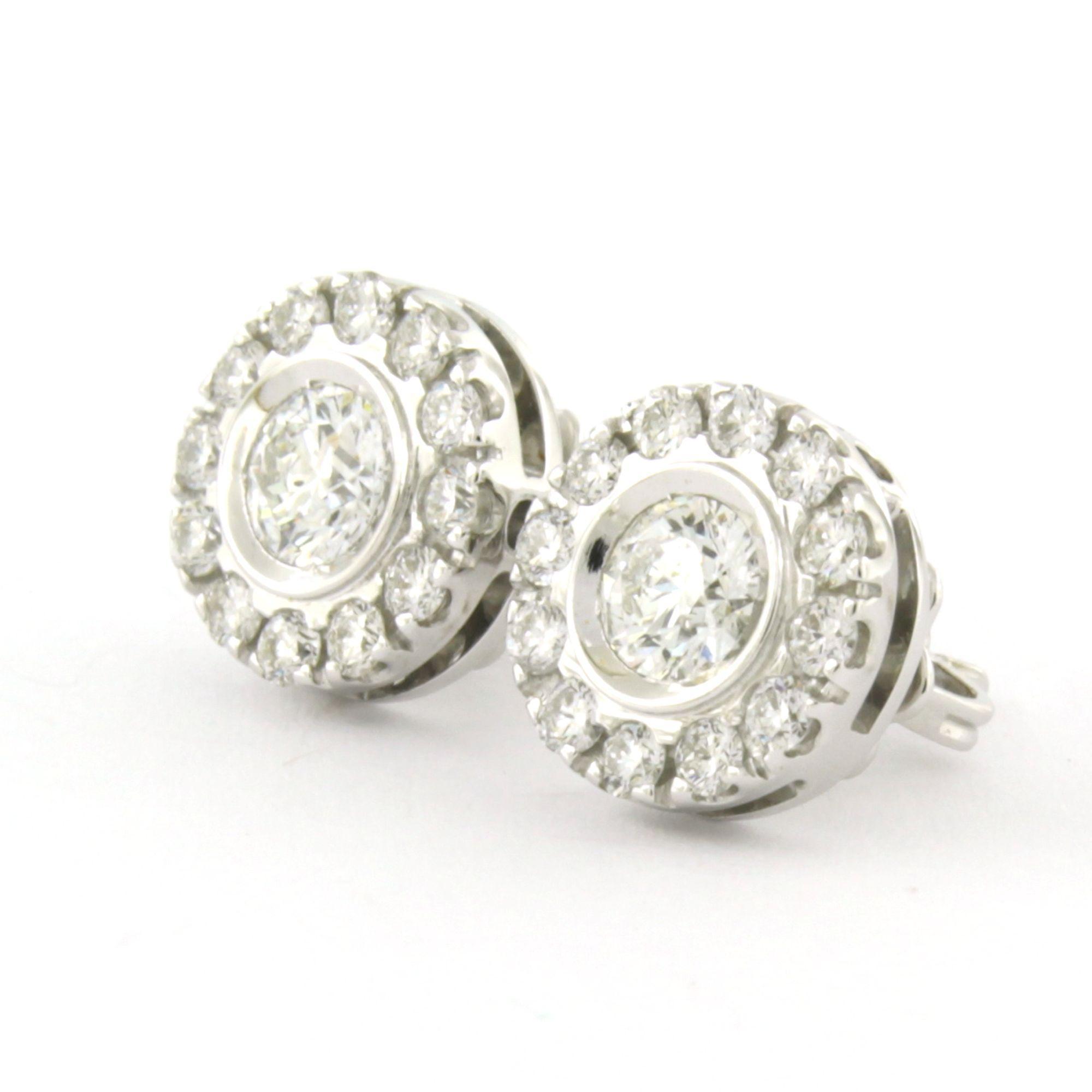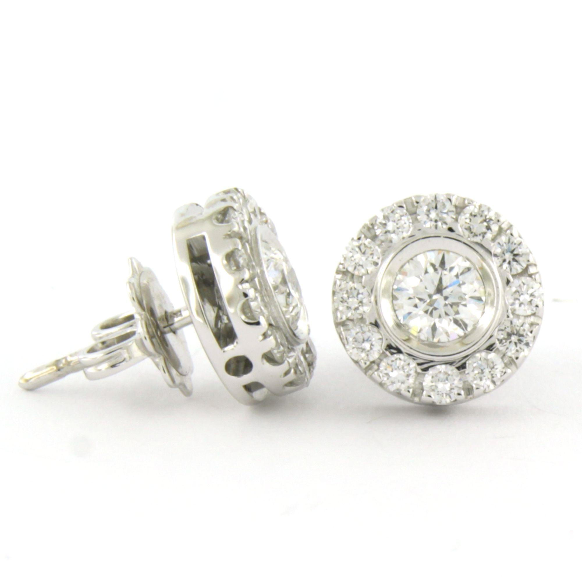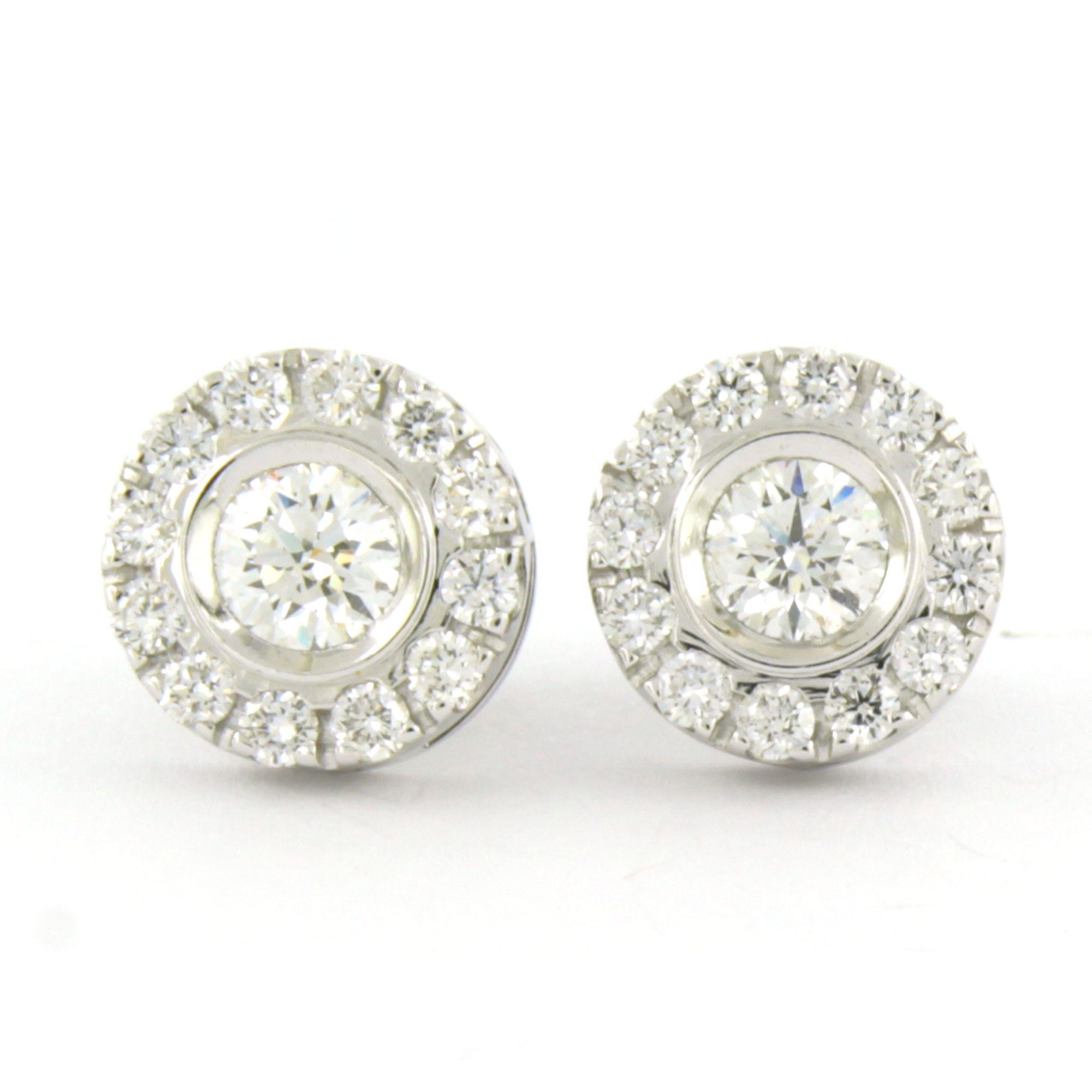 18 Kt. witgouden oorknoppen bezet met briljant geslepen diamanten tot. 1.20 ct.