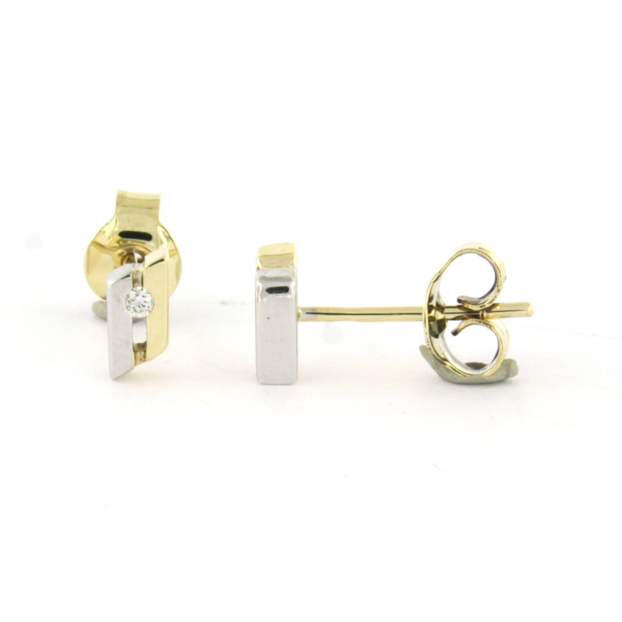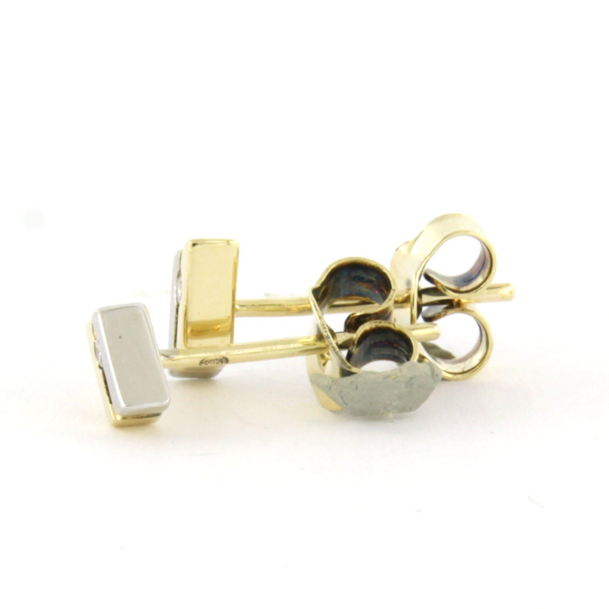 14 Kt. bicolor gouden oorknoppen bezet met briljant geslepen diamant tot. 0.02 ct.