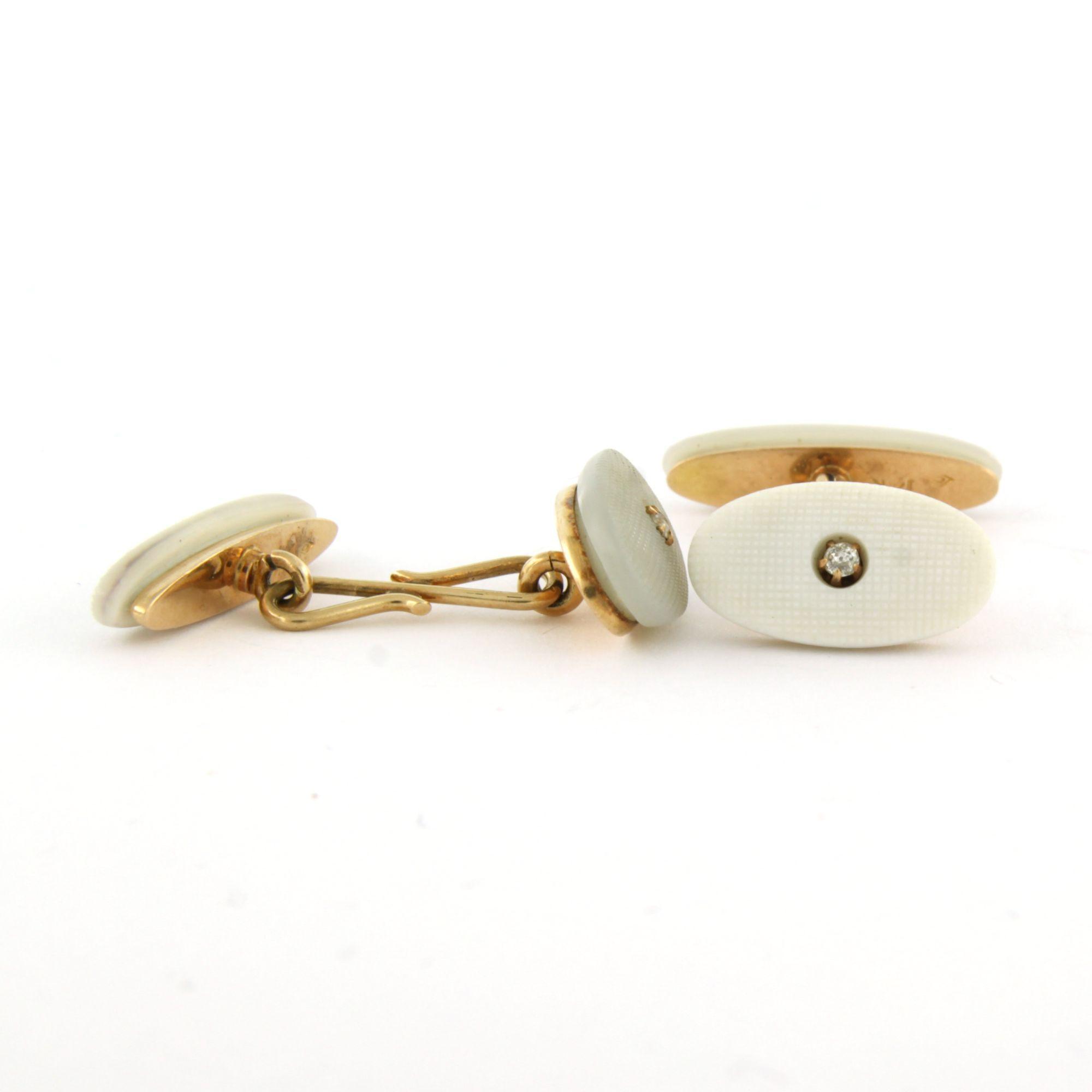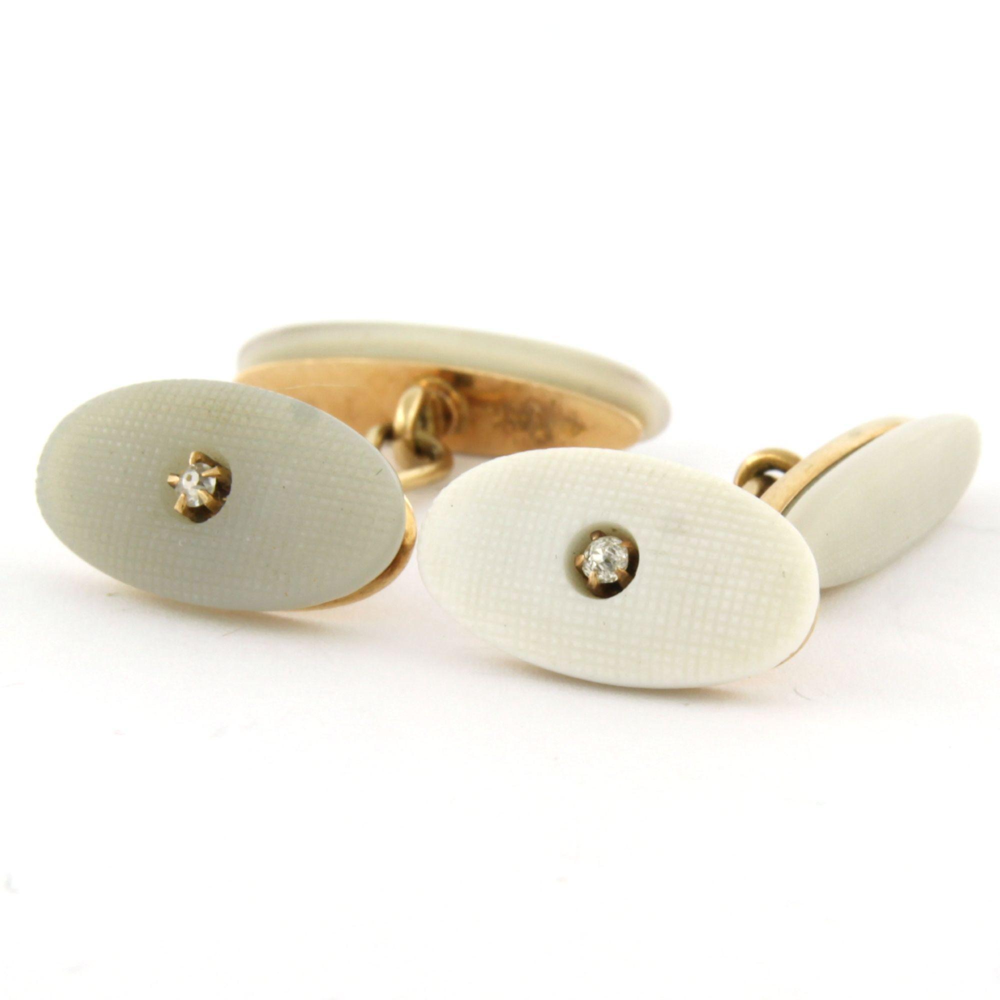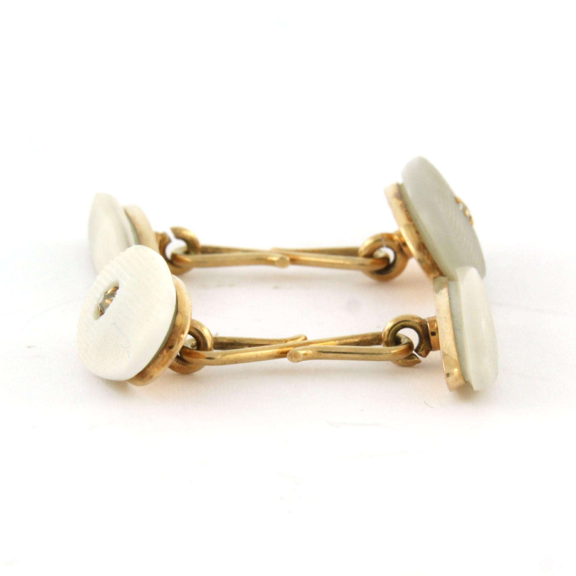 14 Kt. geelgouden manchetknopen bezet met witte koraal en Bolsjewiek geslepen diamant