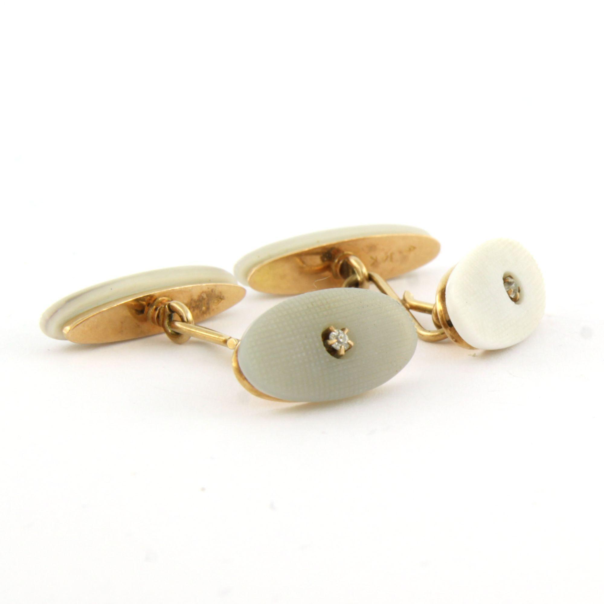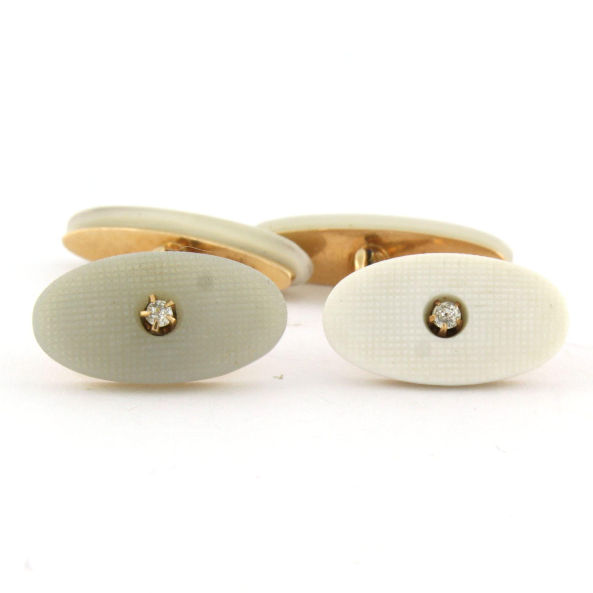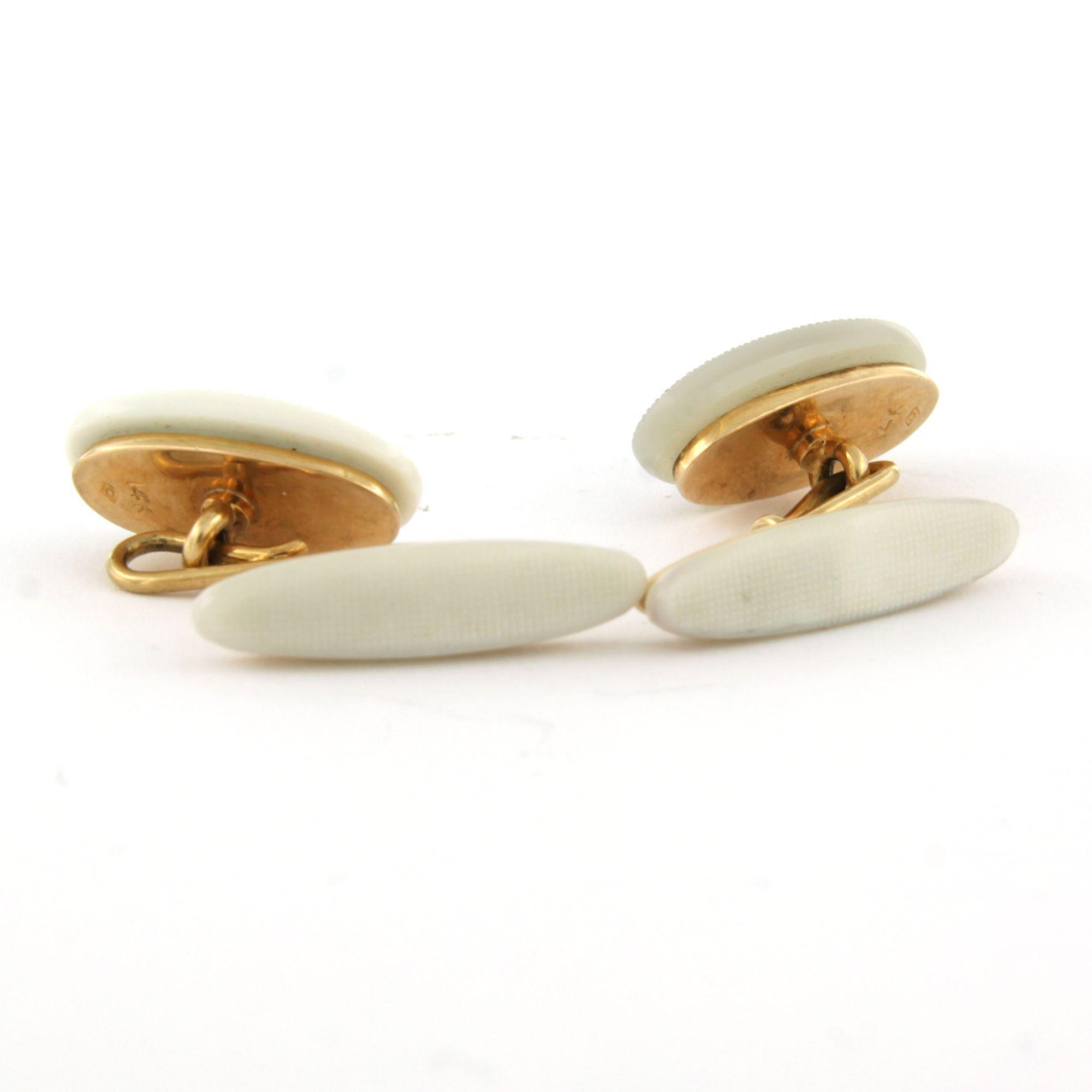 14 Kt. geelgouden manchetknopen bezet met witte koraal en Bolsjewiek geslepen diamant