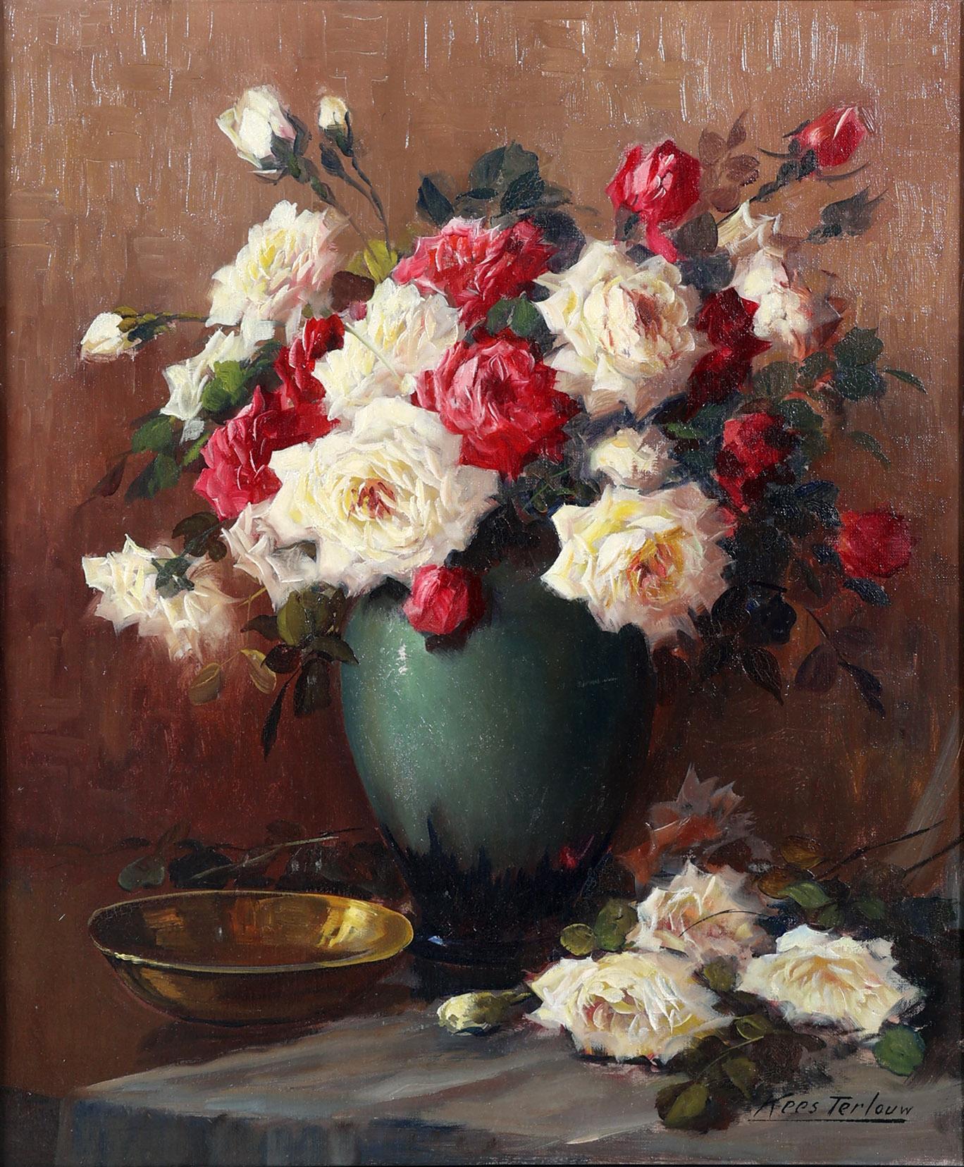 Cornelis (Kees) Terlouw (1890-1948), Bloemstilleven, olieverf op doek, 65 x 54 cm.