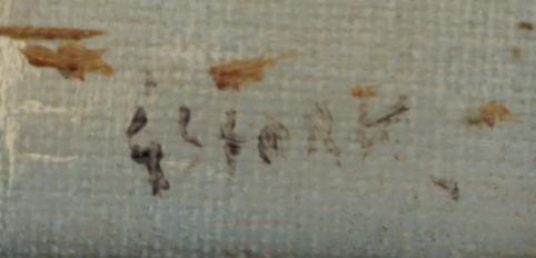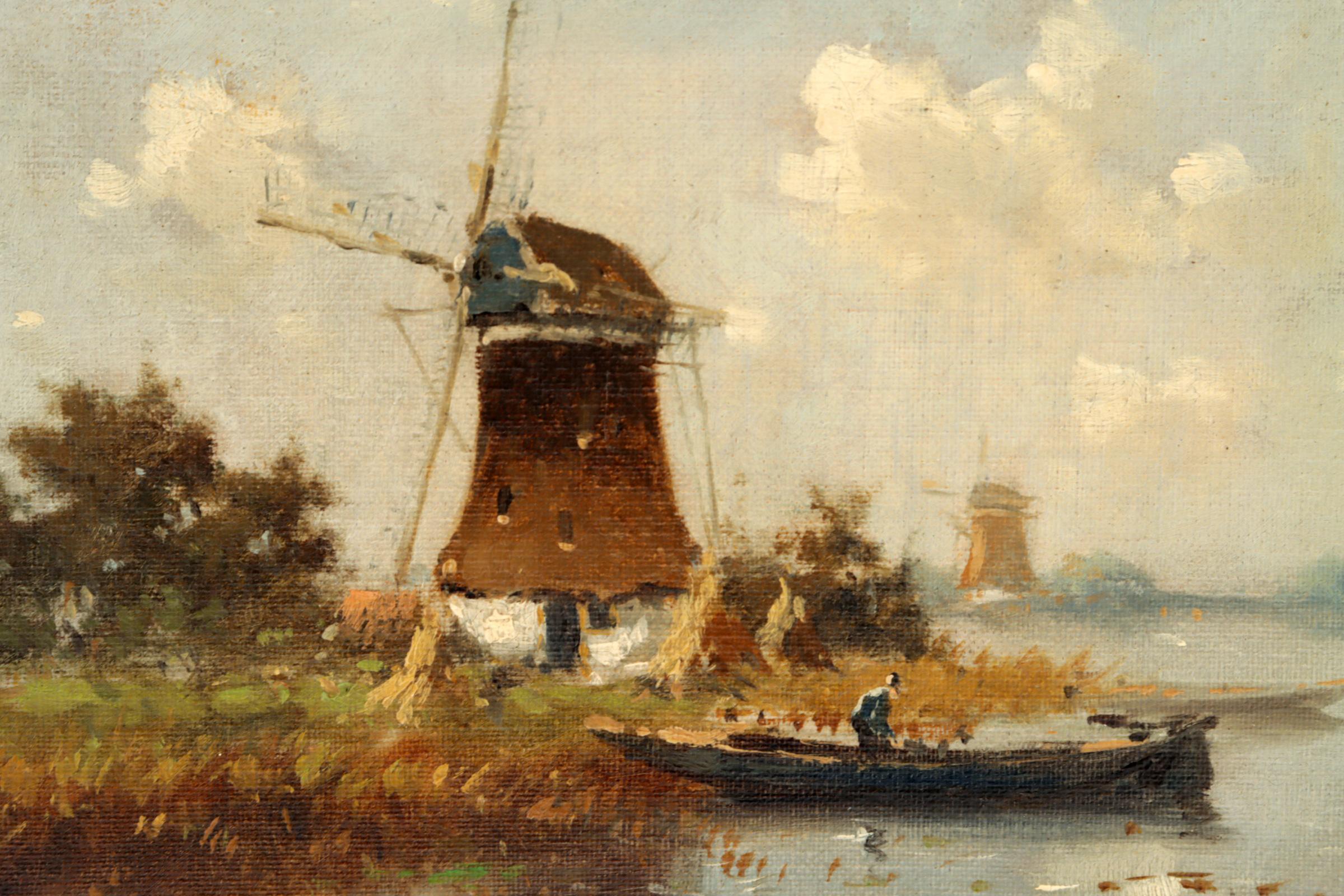 G. Stork, Visser met molens in waterrijk landschap, olieverf op doek, 24 x 18 cm.