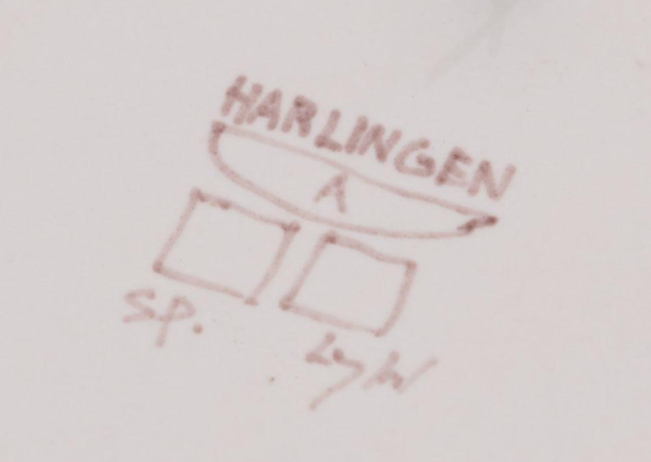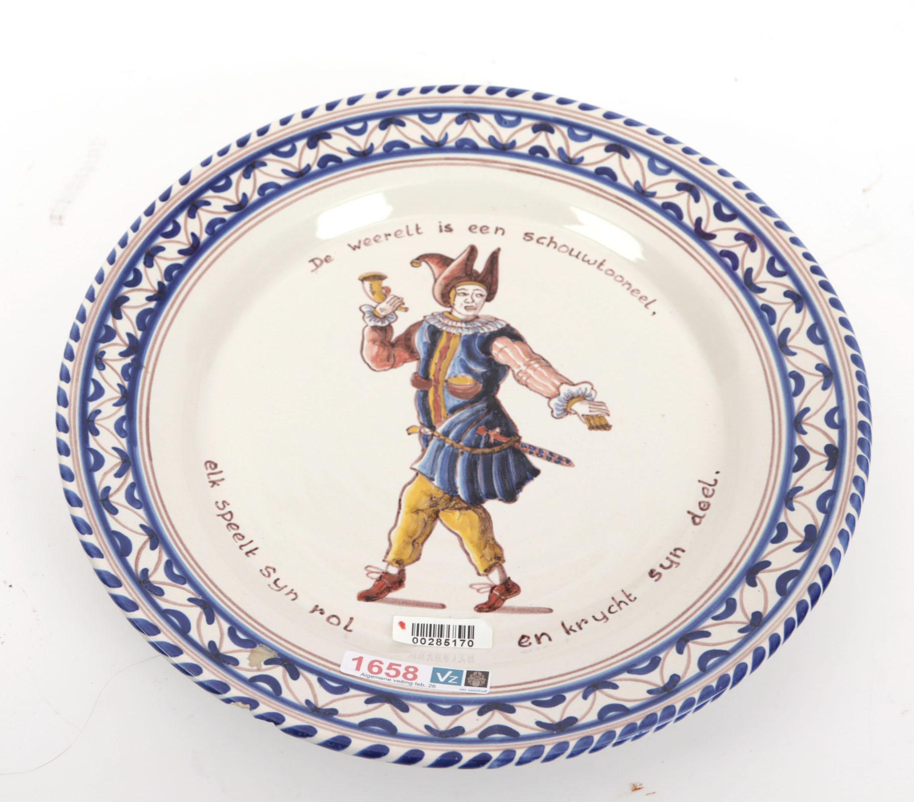 Harlingen aardewerken wandbord met afbeelding en tekst, diam.27,5 cm.