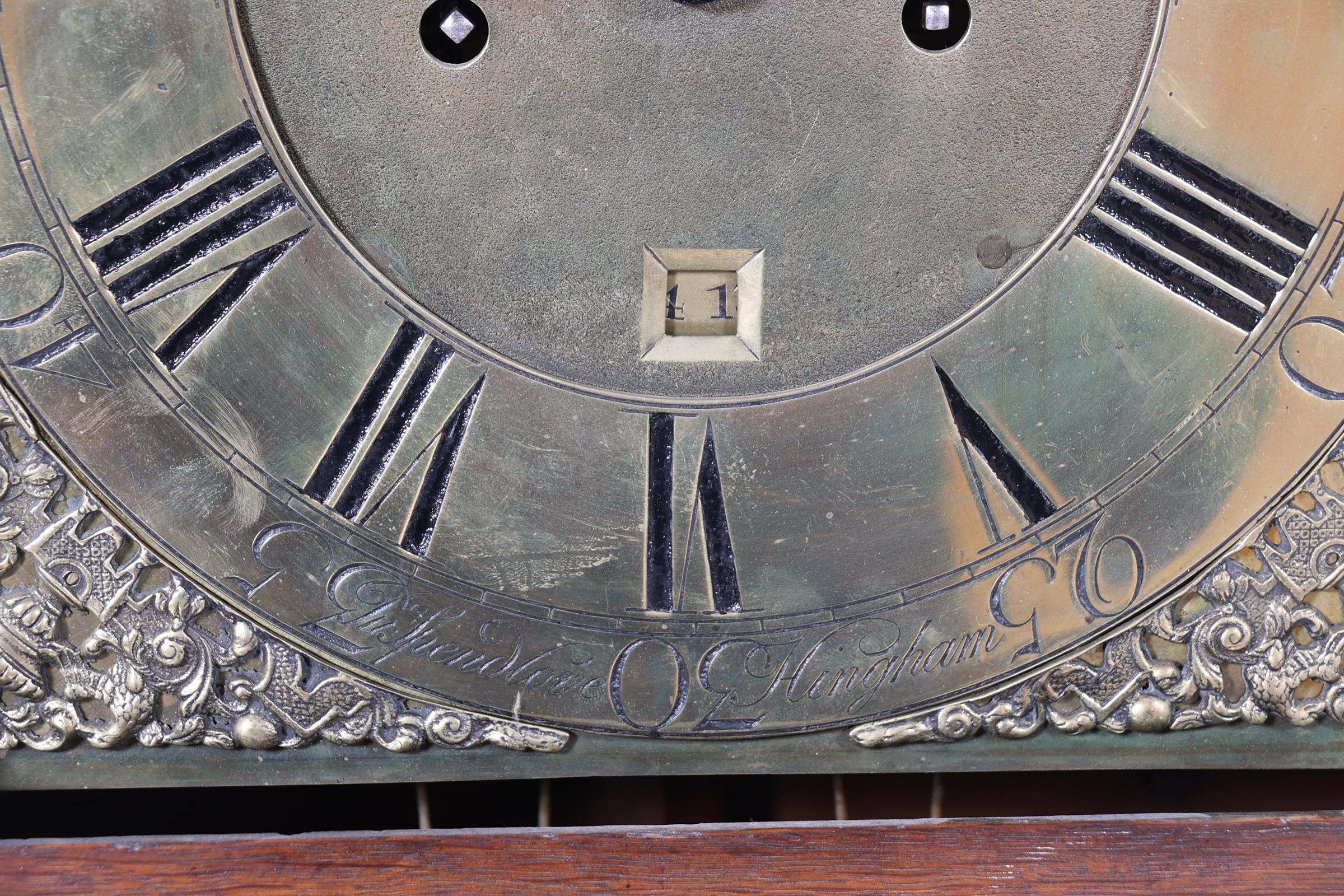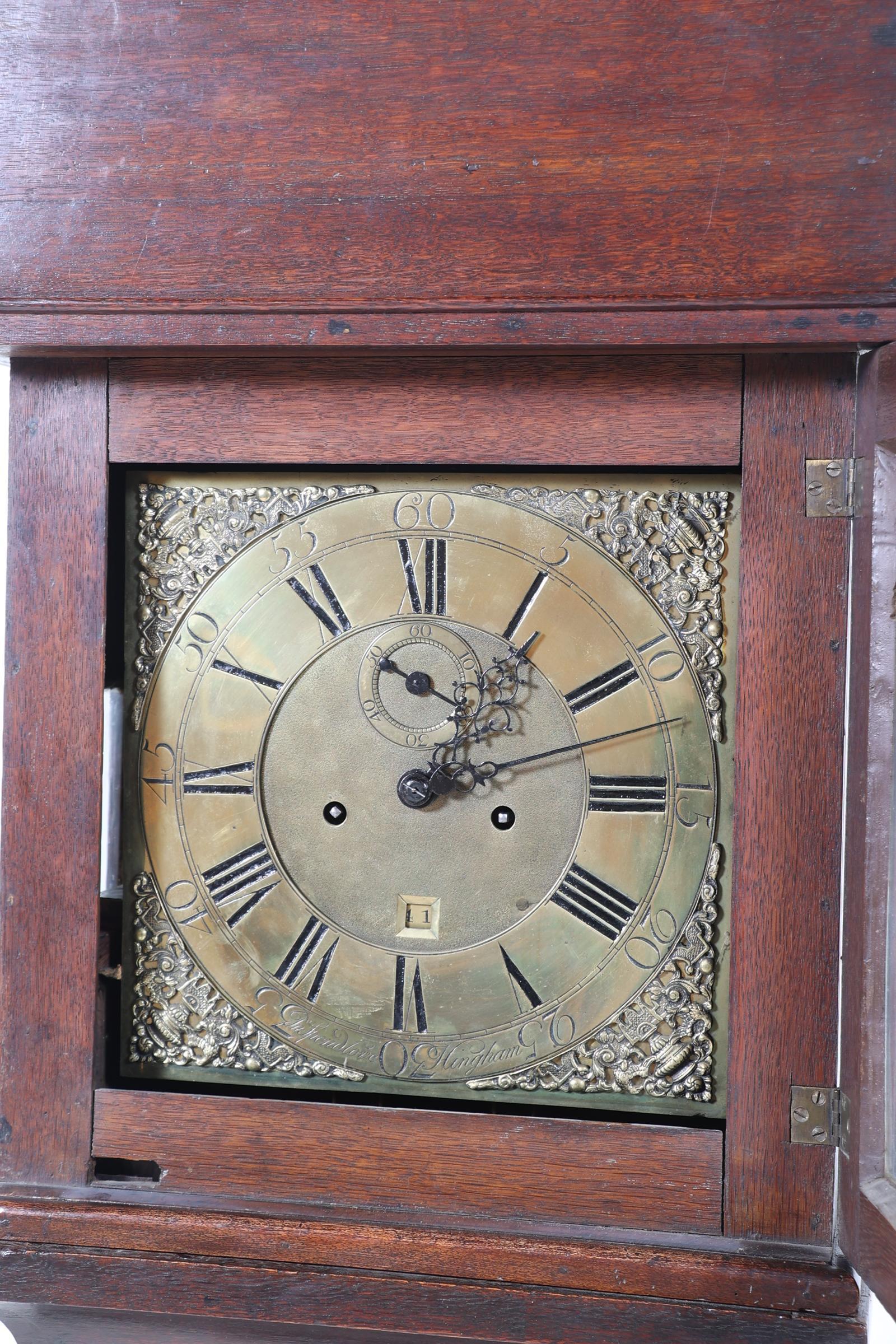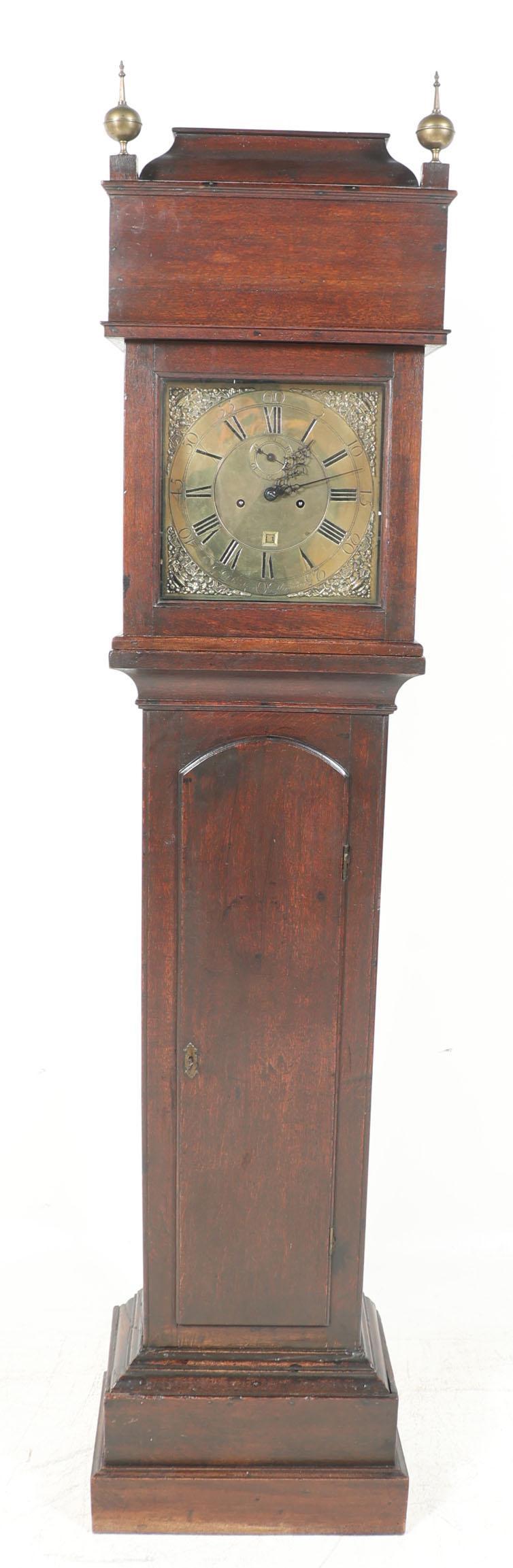 Antiek Engels staand horloge in eikenhouten kast, h.220 cm.